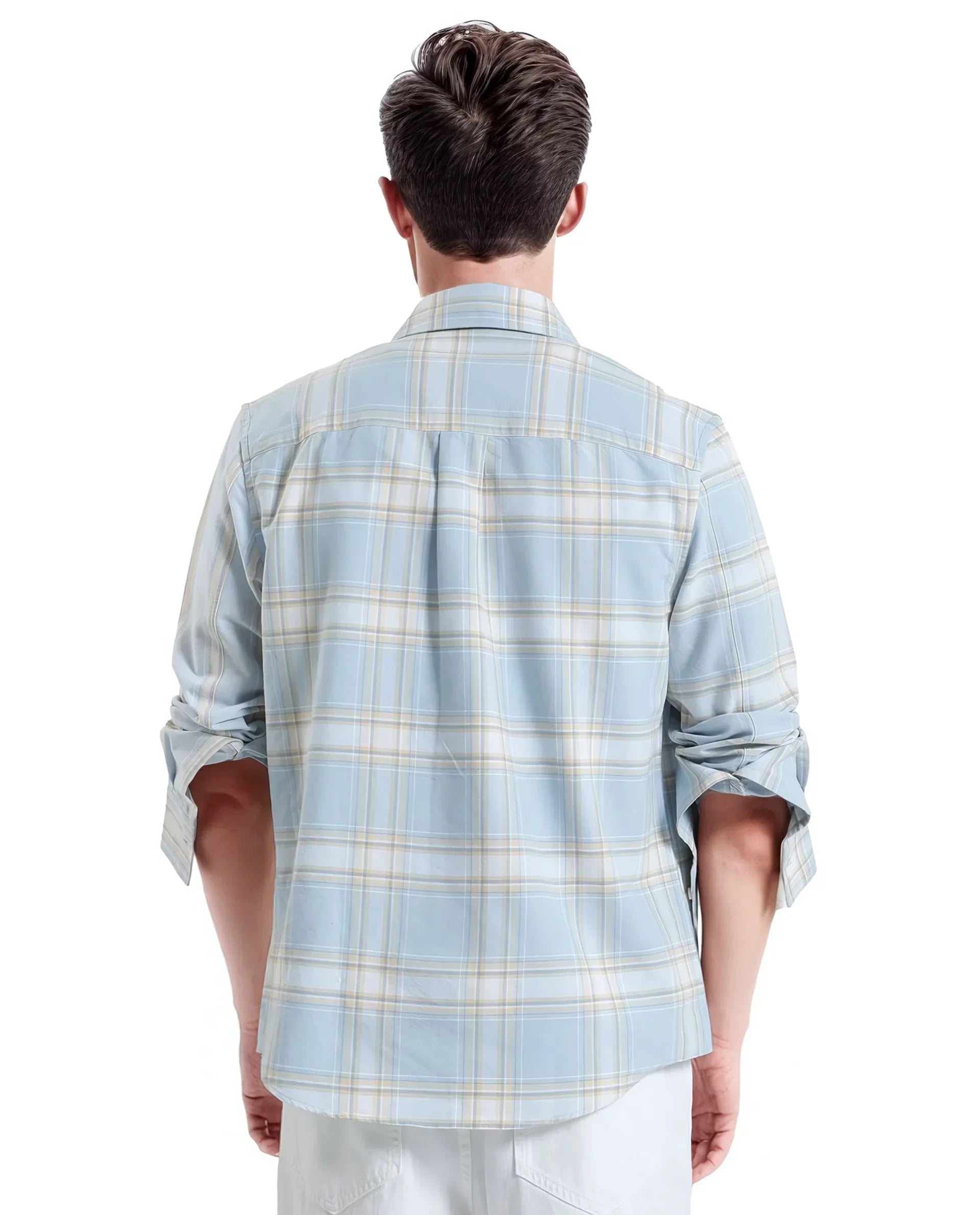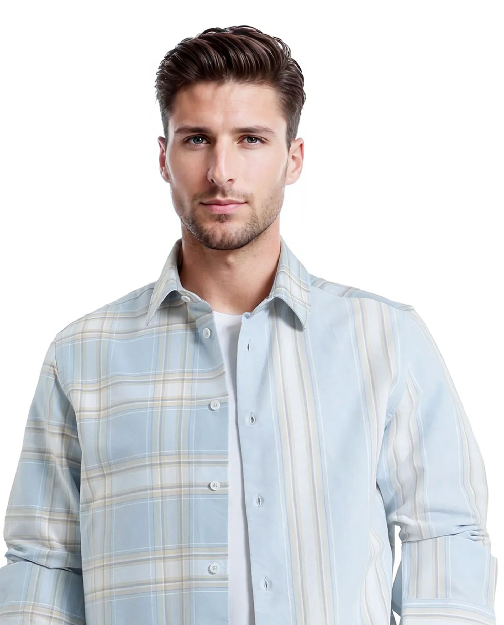 Rare Rabbit Men's Volgos Pastel Blue Cotton Fabric Full Sleeve Regular Fit Check Printed Shirt