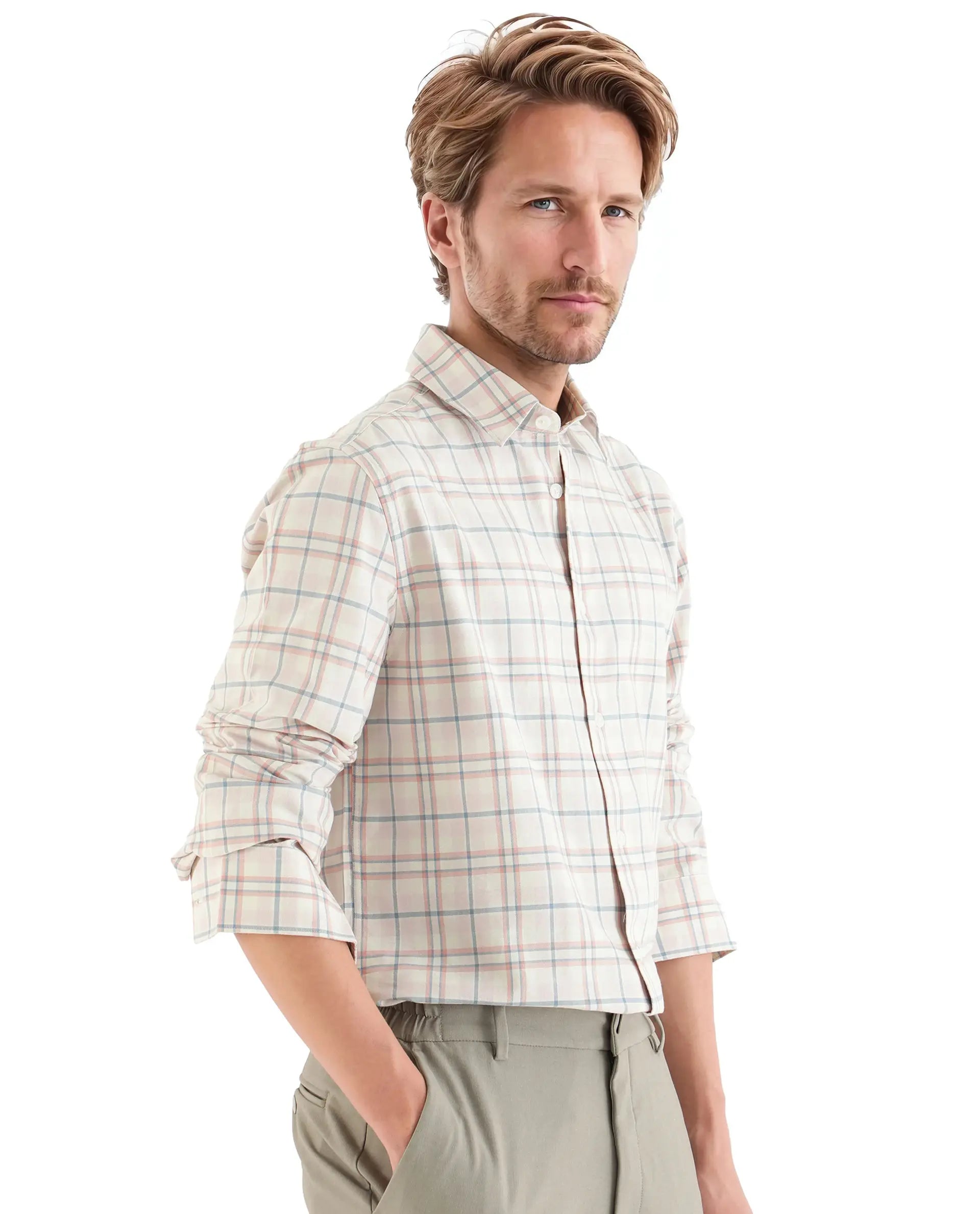 Introducing our Pastel Pink Checked Shirt, a perfect blend of style and comfort for your casual wardrobe. Crafted from premium cotton, this regular fit shirt ensures breathability and ease of movement. Featuring a classic spread collar and full sleeves, it offers a timeless look suitable for any occasion. The button closure adds a touch of sophistication, making it an ideal choice for both work and leisure. Elevate your fashion game with this versatile checked shirt, designed to keep you looking sharp and feeling comfortable all day long. Perfect for those who appreciate quality and style in their everyday attire.
