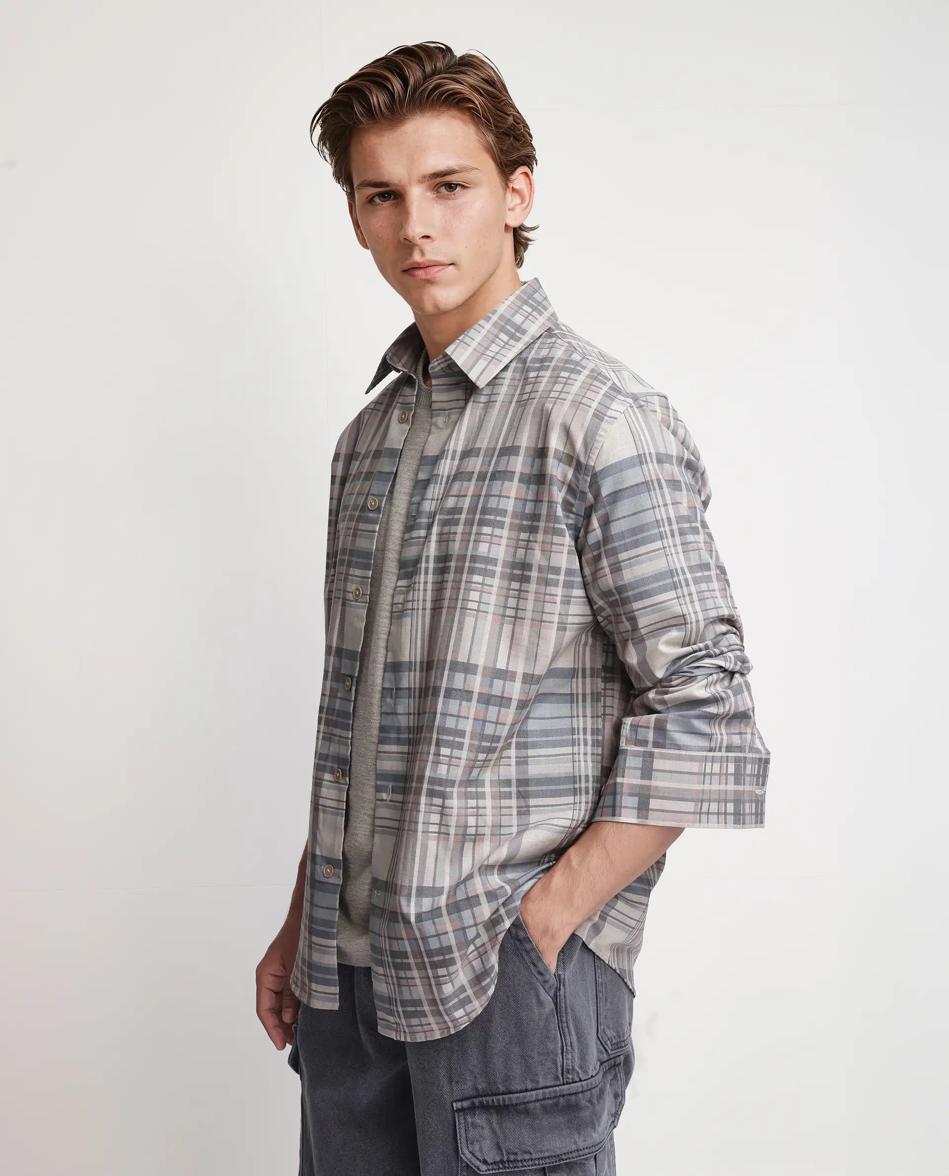 CHECKED WITH GRAPHIC BACK PRINT SHIRT