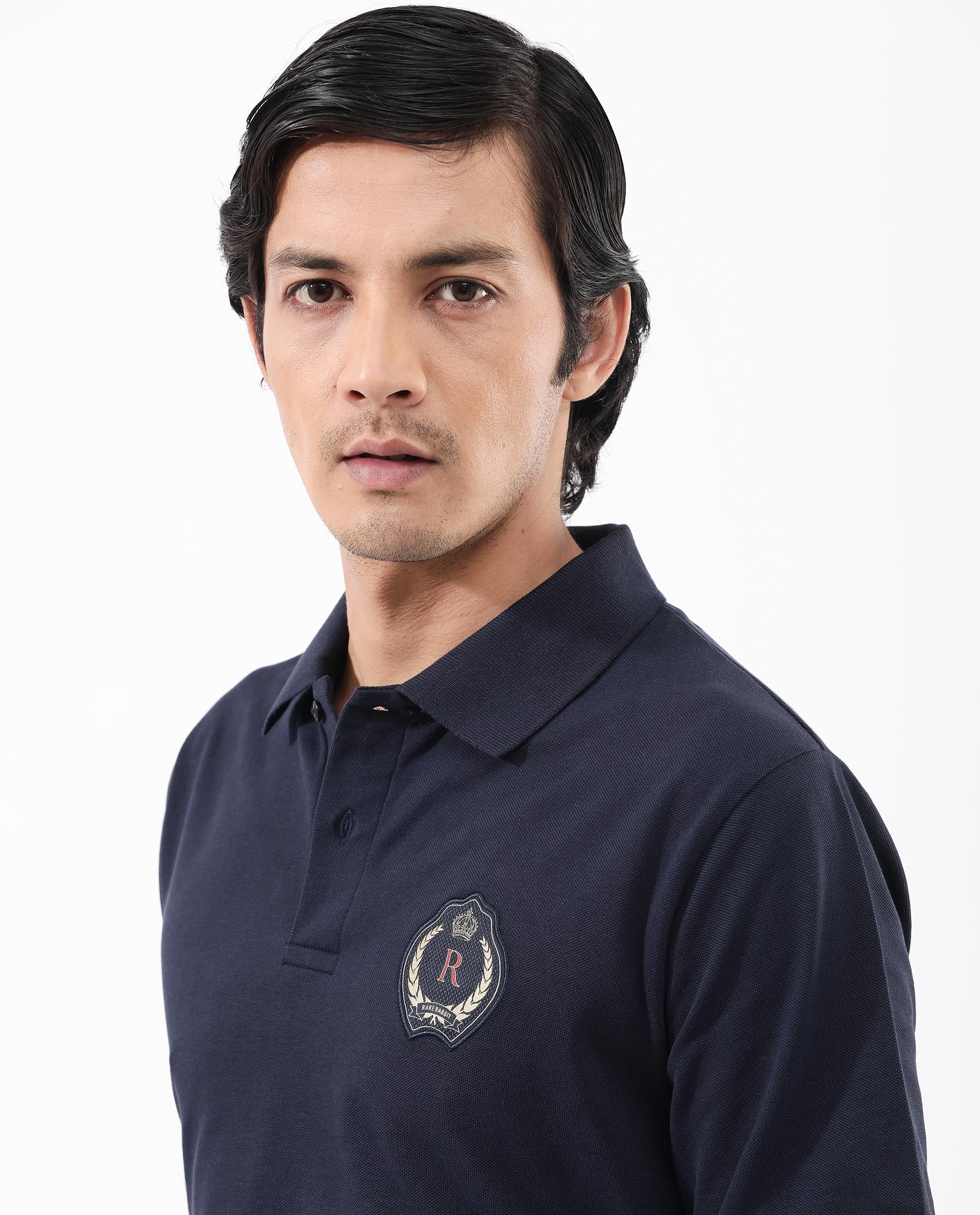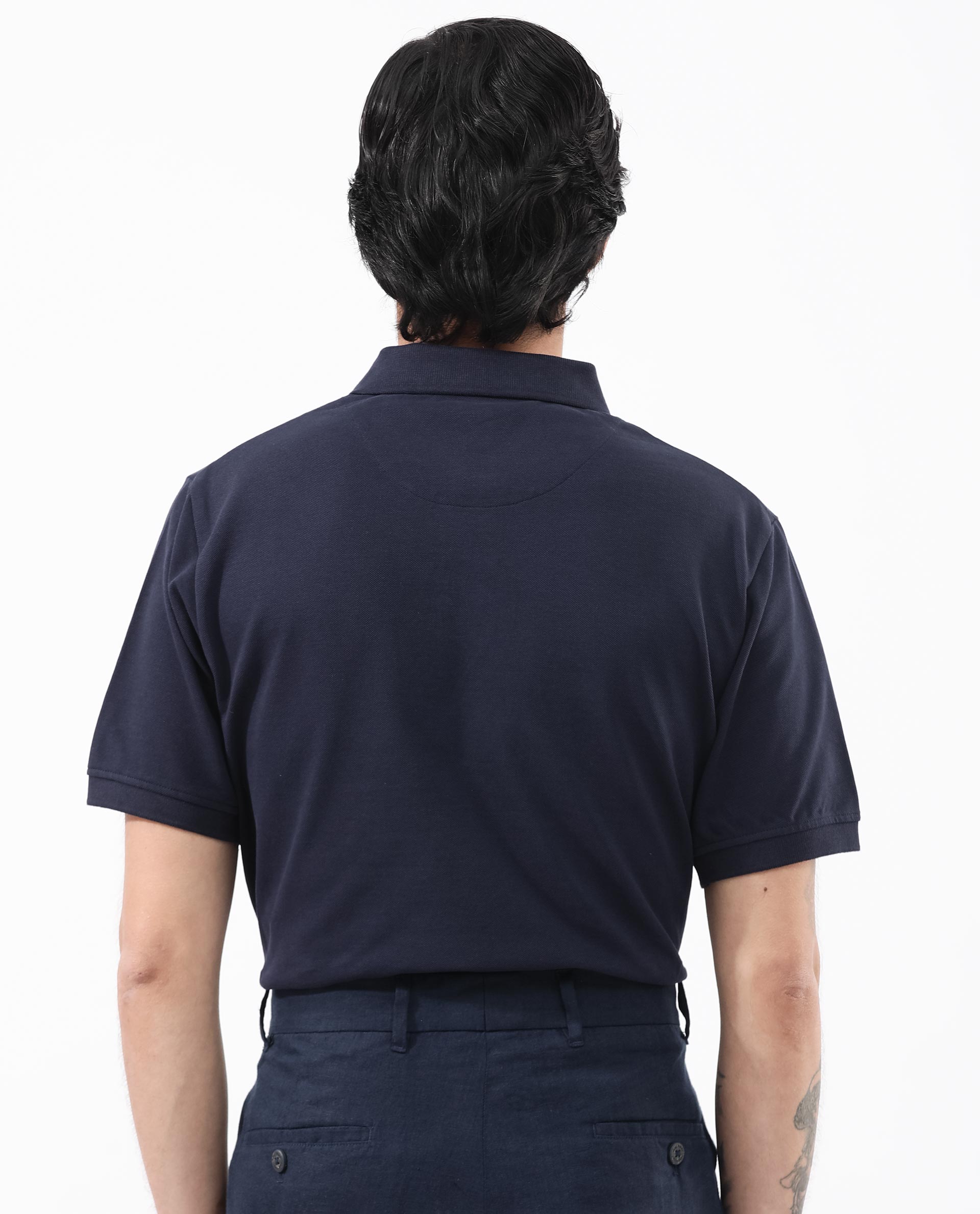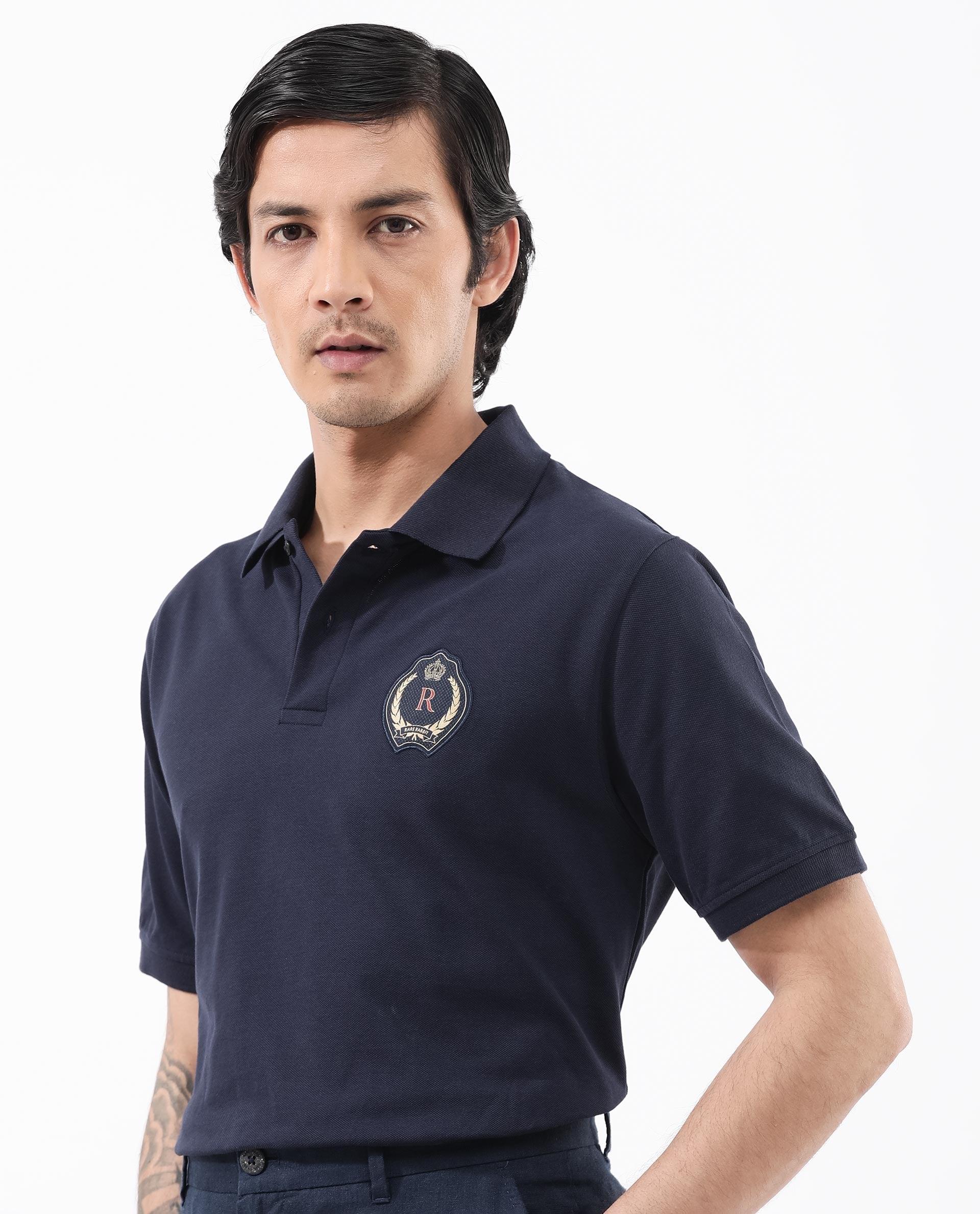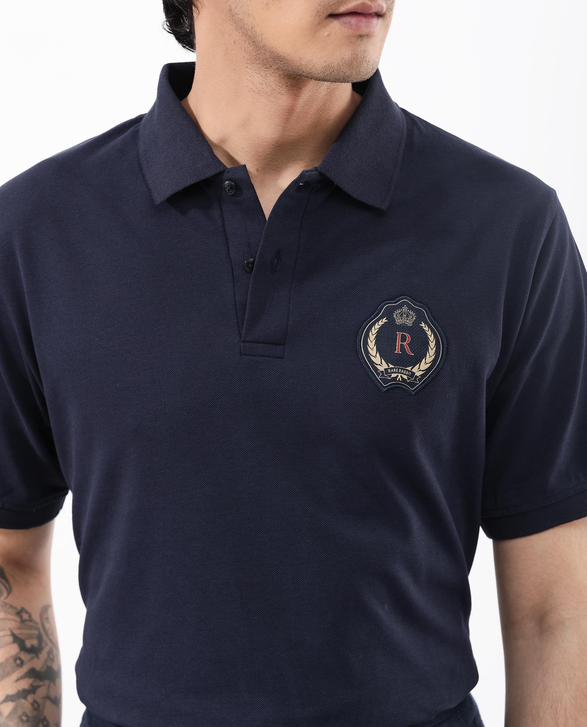 Rare Rabbit Mens Dariol Navy Cotton Fabric Short Sleeve Solid Knitted Polo T-Shirt