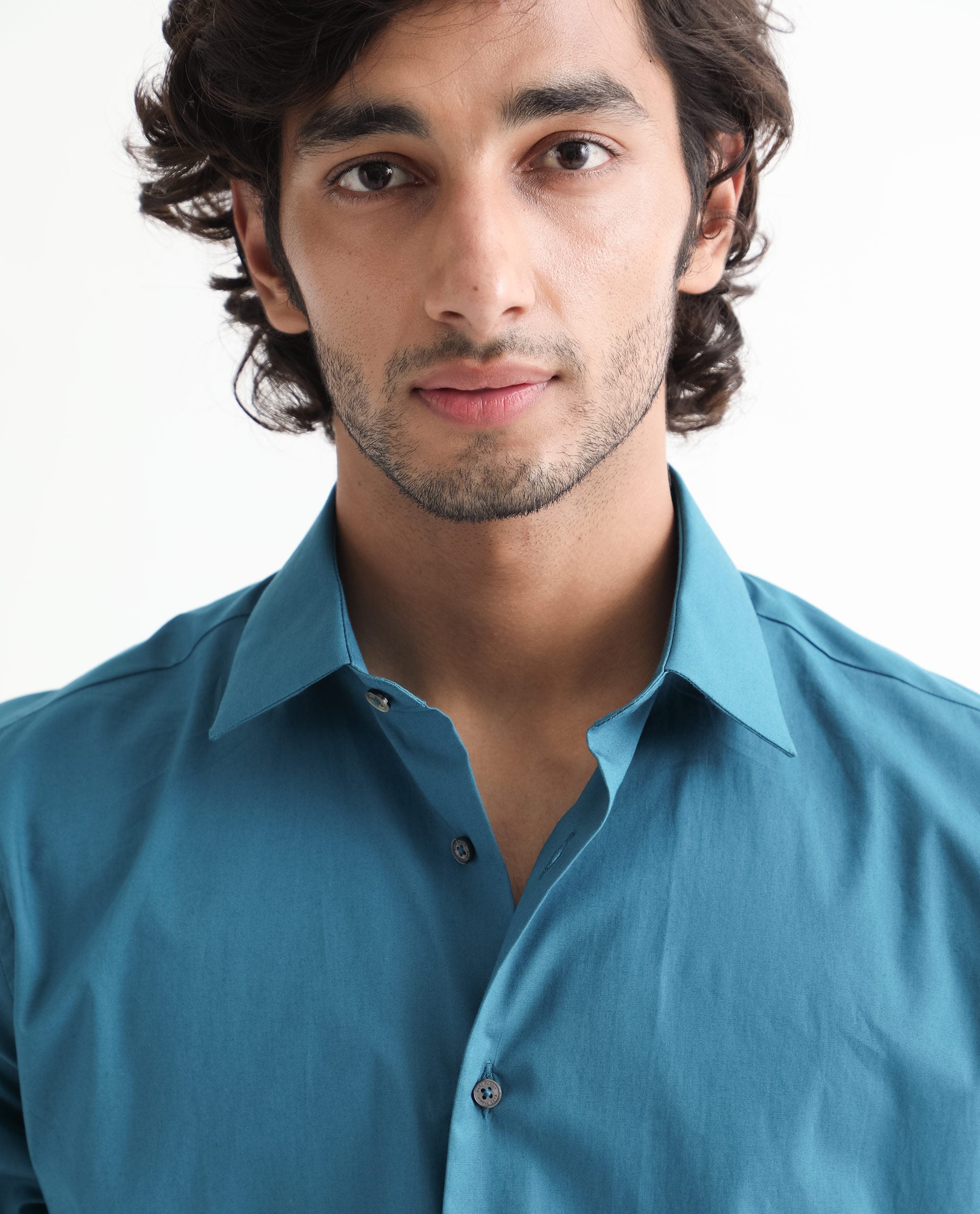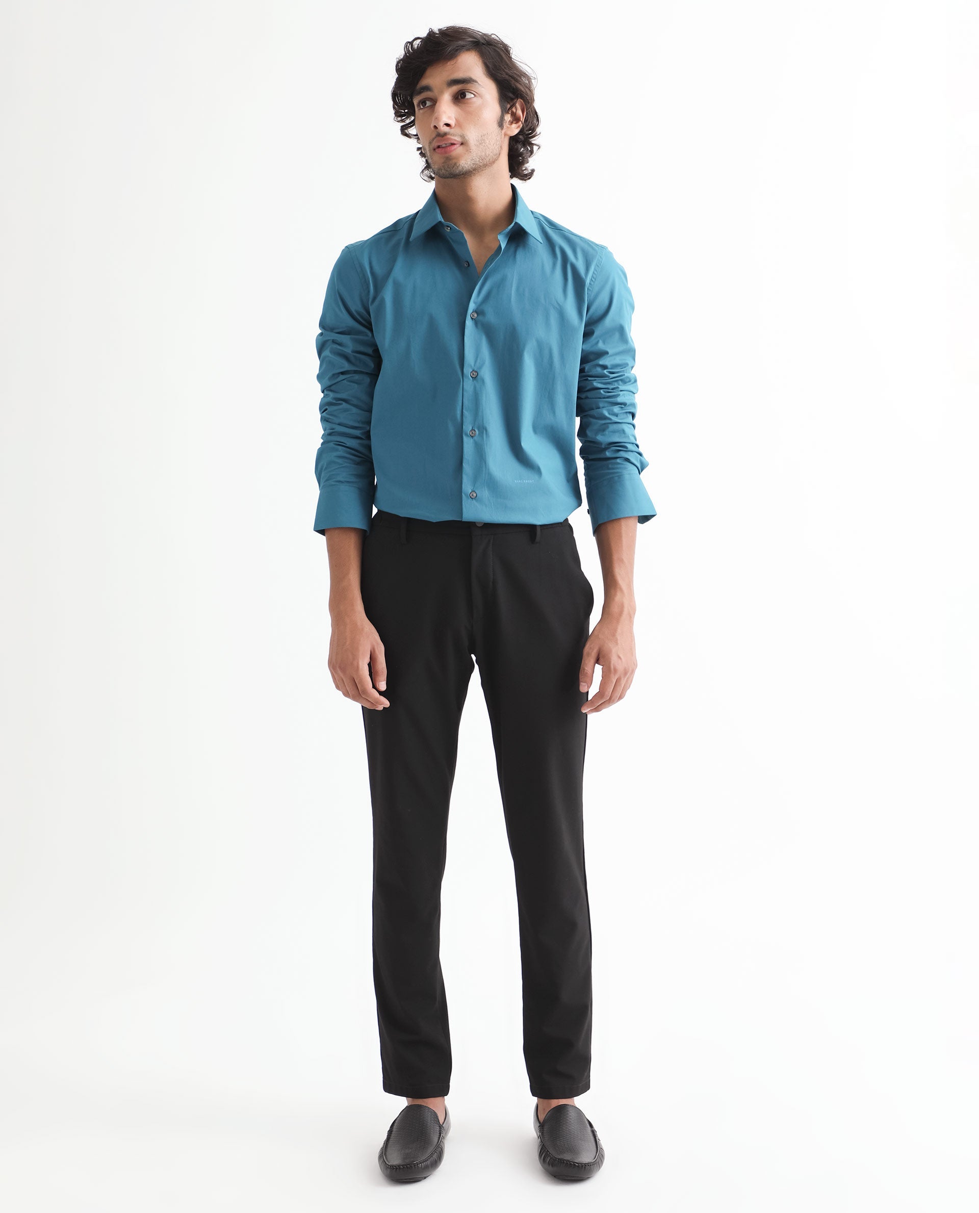 Rare Rabbit Men's Neutronss Petrol Cotton Polyester Fabric Full Sleeves Solid Shirt