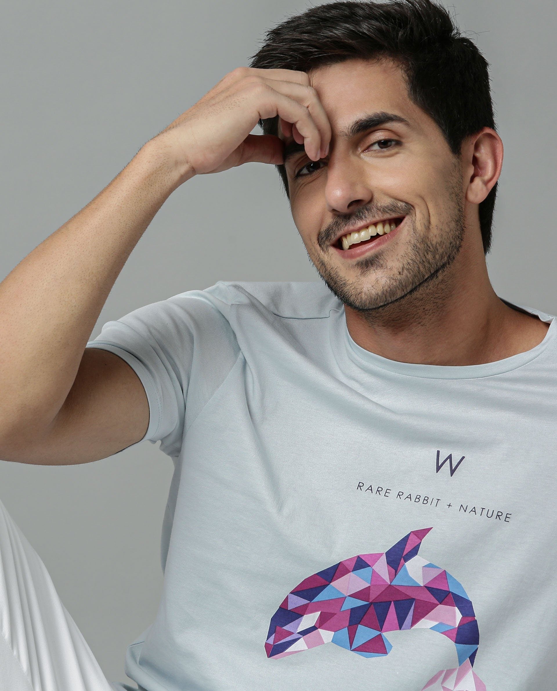 Rare Rabbit Men's Cause Blue Crew Neck Statement Graphic Print Half Sleeves Slim Fit T-Shirt