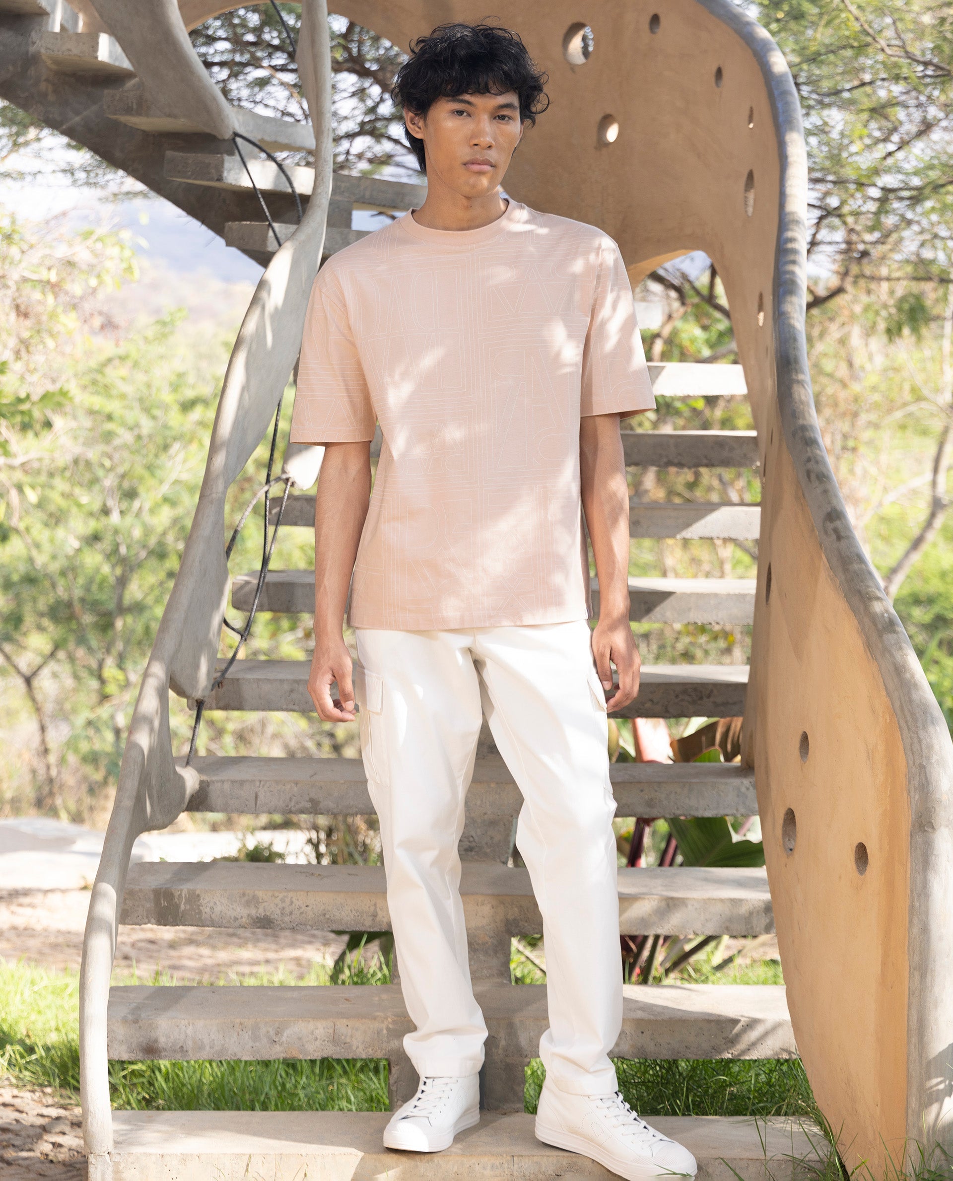 Rare Rabbit Articale Men's Hagrid Pastel Pink Cotton Polyester Fabric Crew Neck Oversized Fit Branded Graphic Print T-Shirt