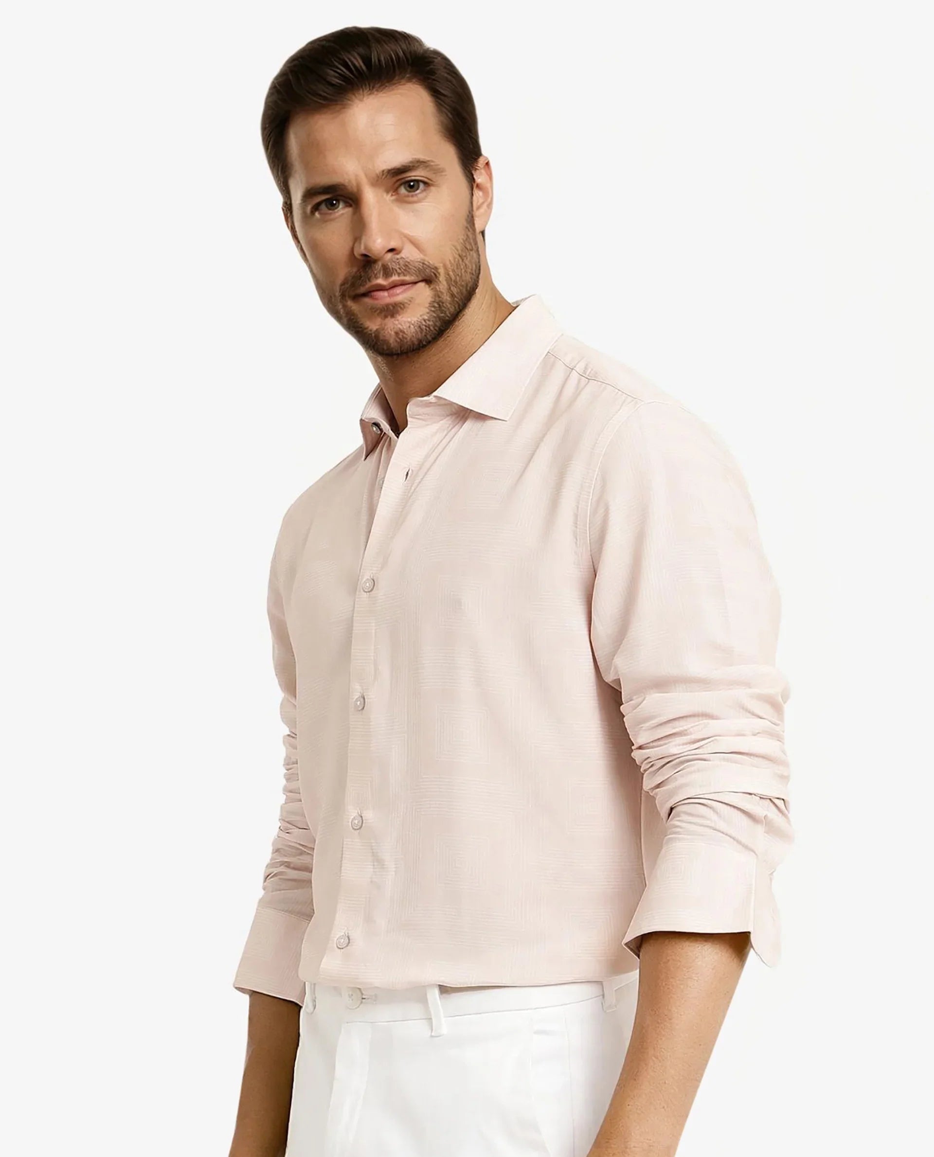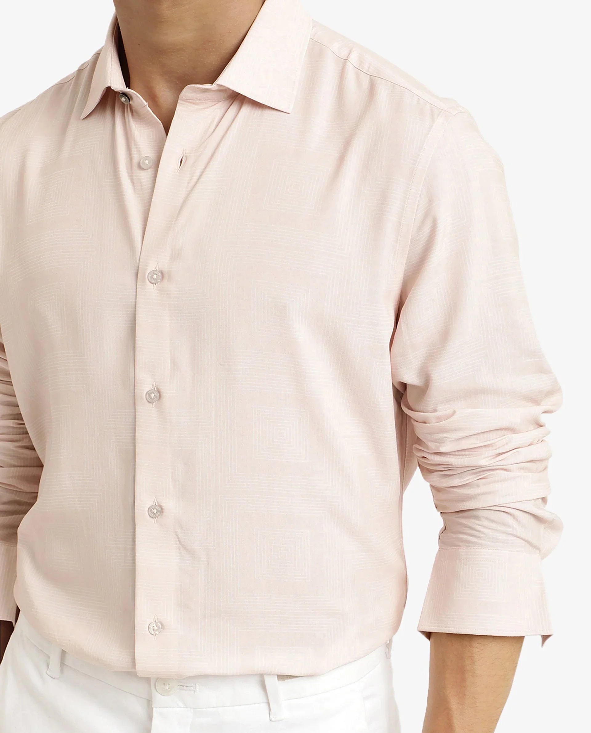 Rare Rabbit Men Swift Beige Viscose Fabric Full Sleeve Regular Fit Geometric Print Shirt