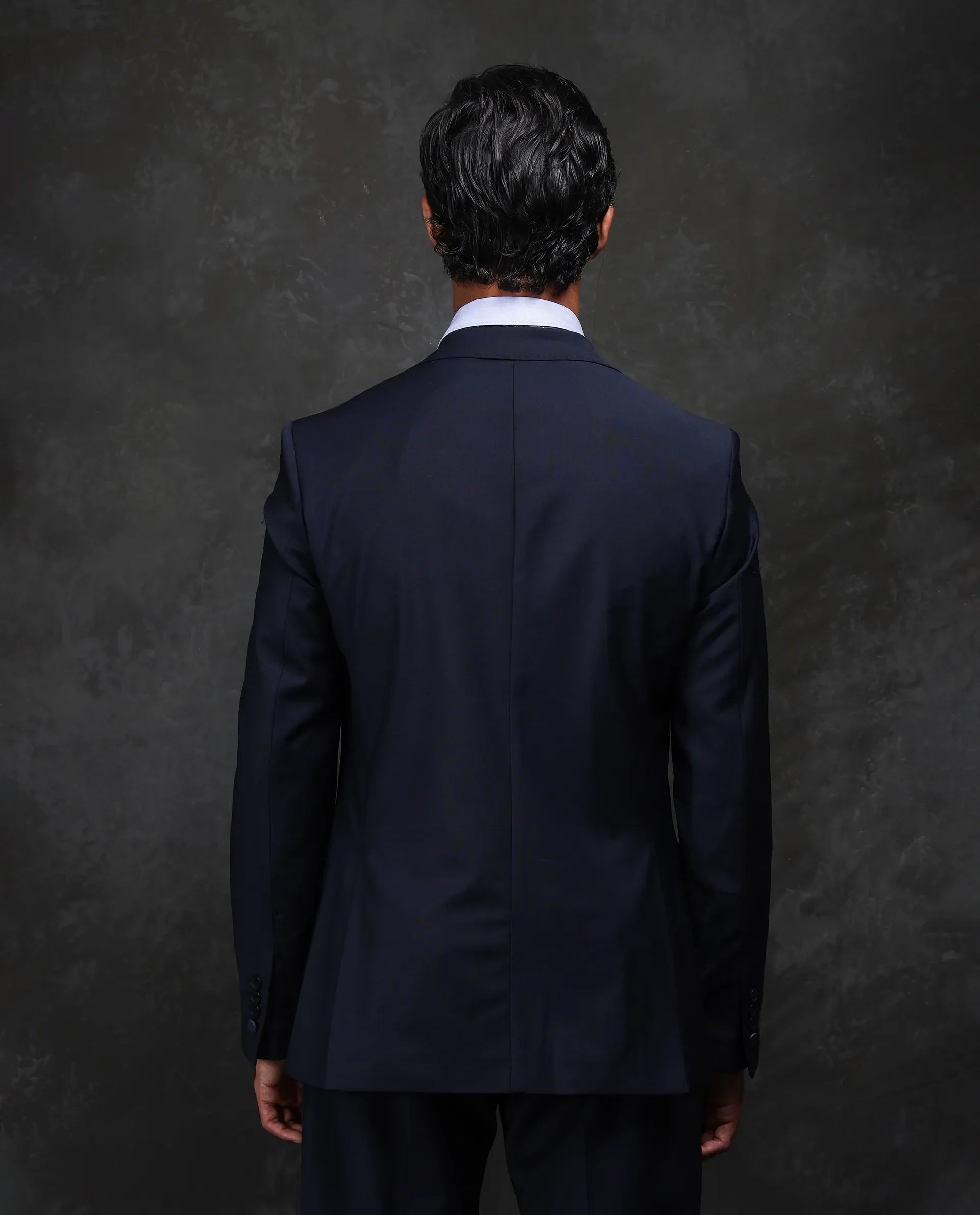 Rare Rabbit Men Arbo-B Navy Polyester Lapel Neck Button And Zip Closure Plain Suits