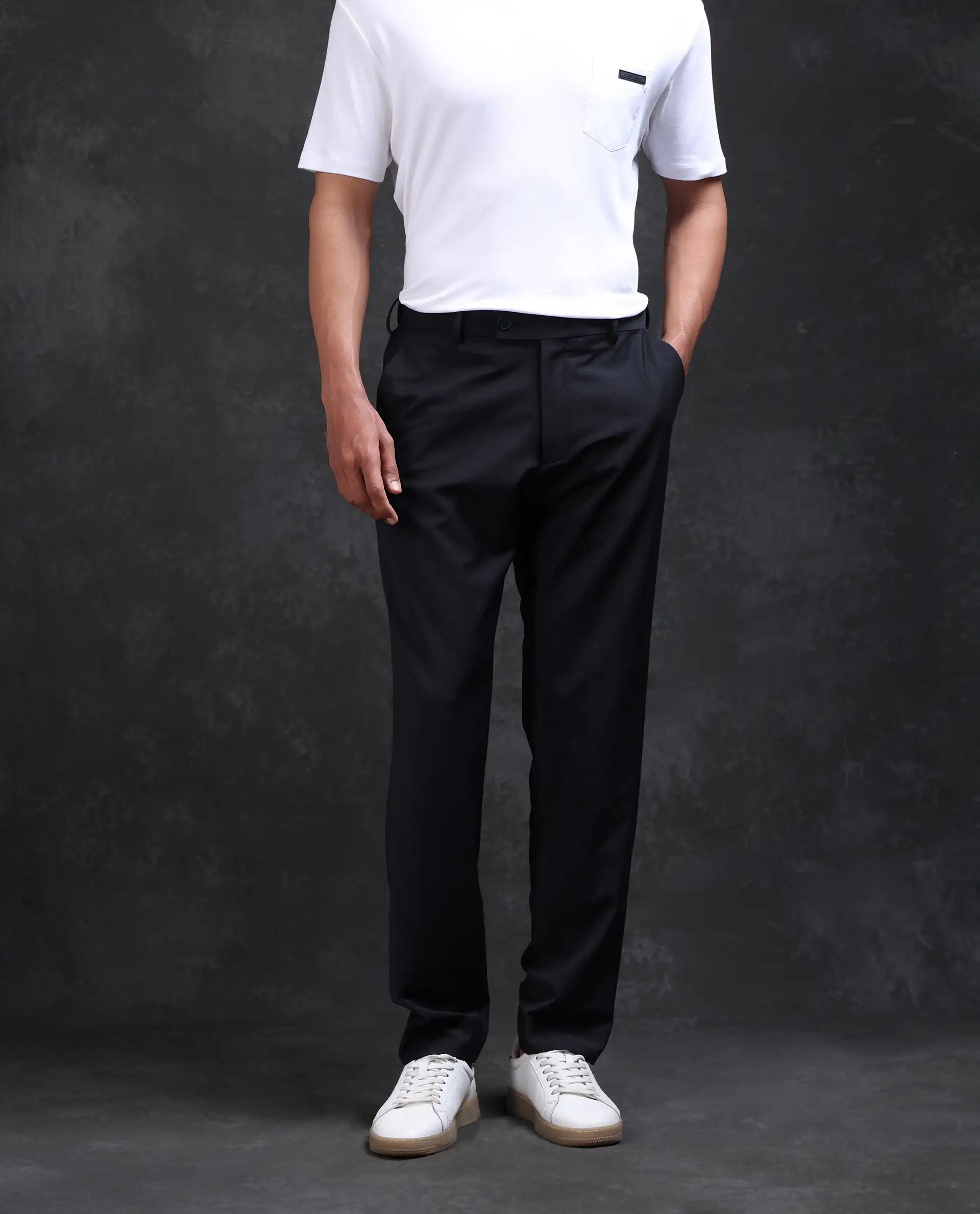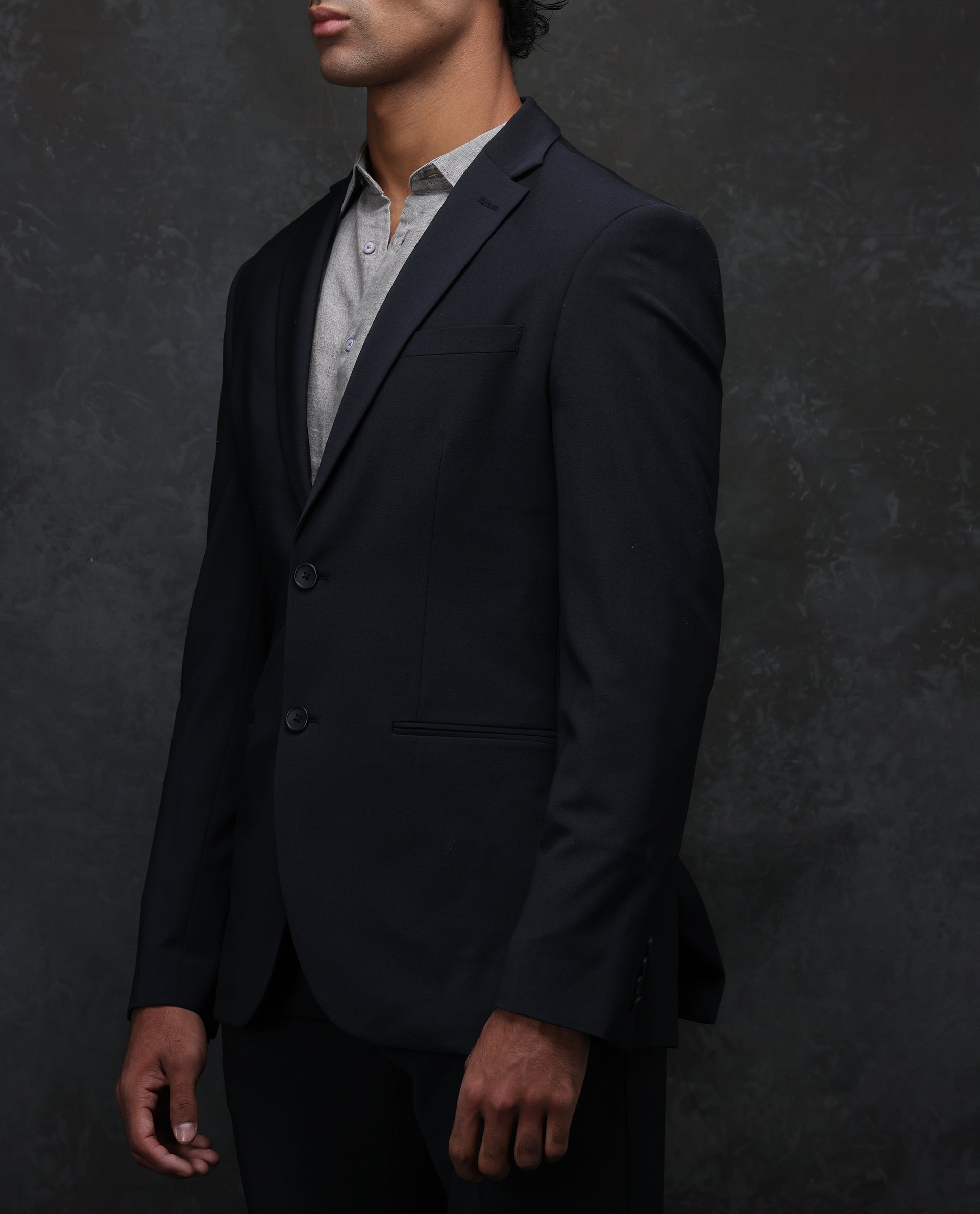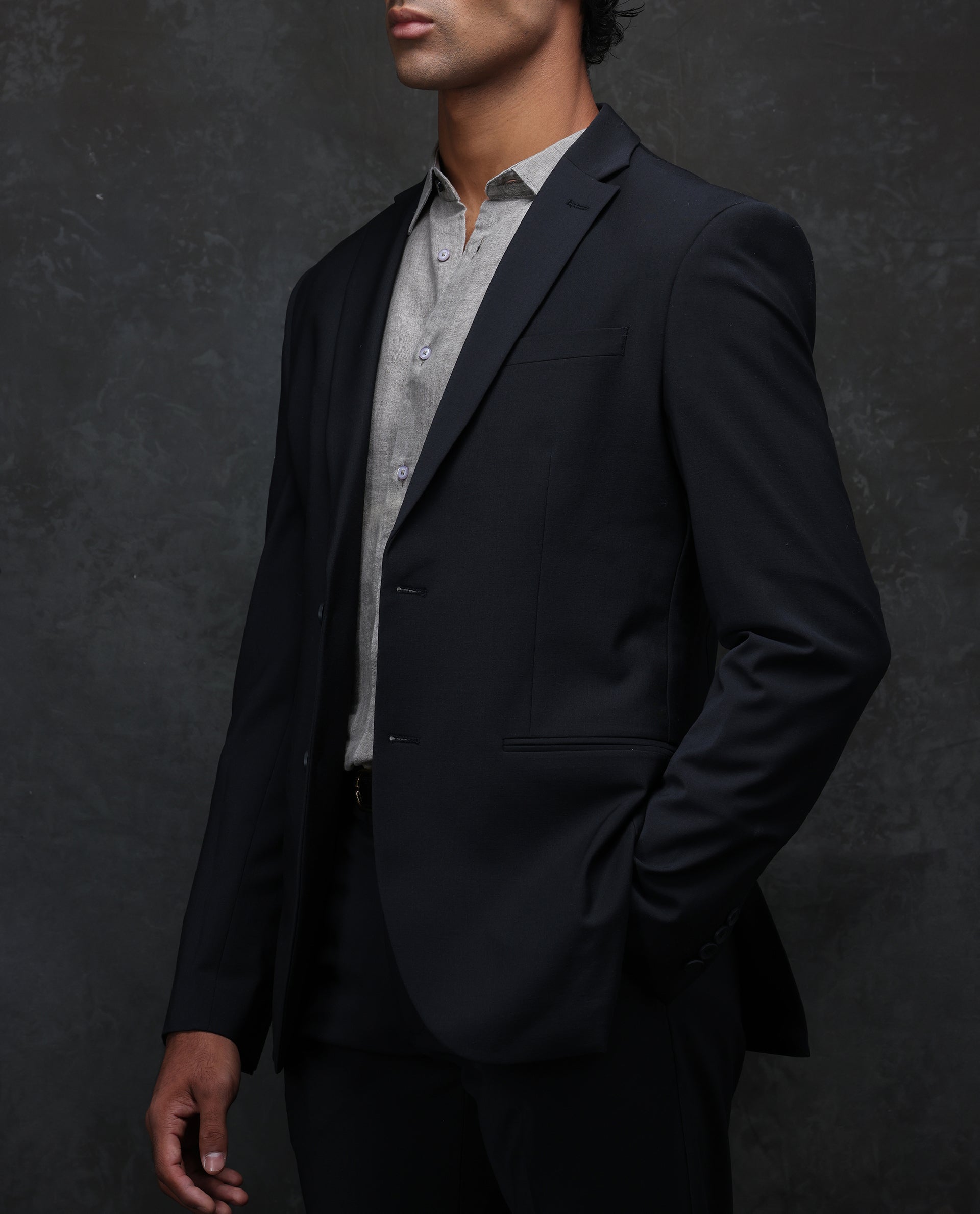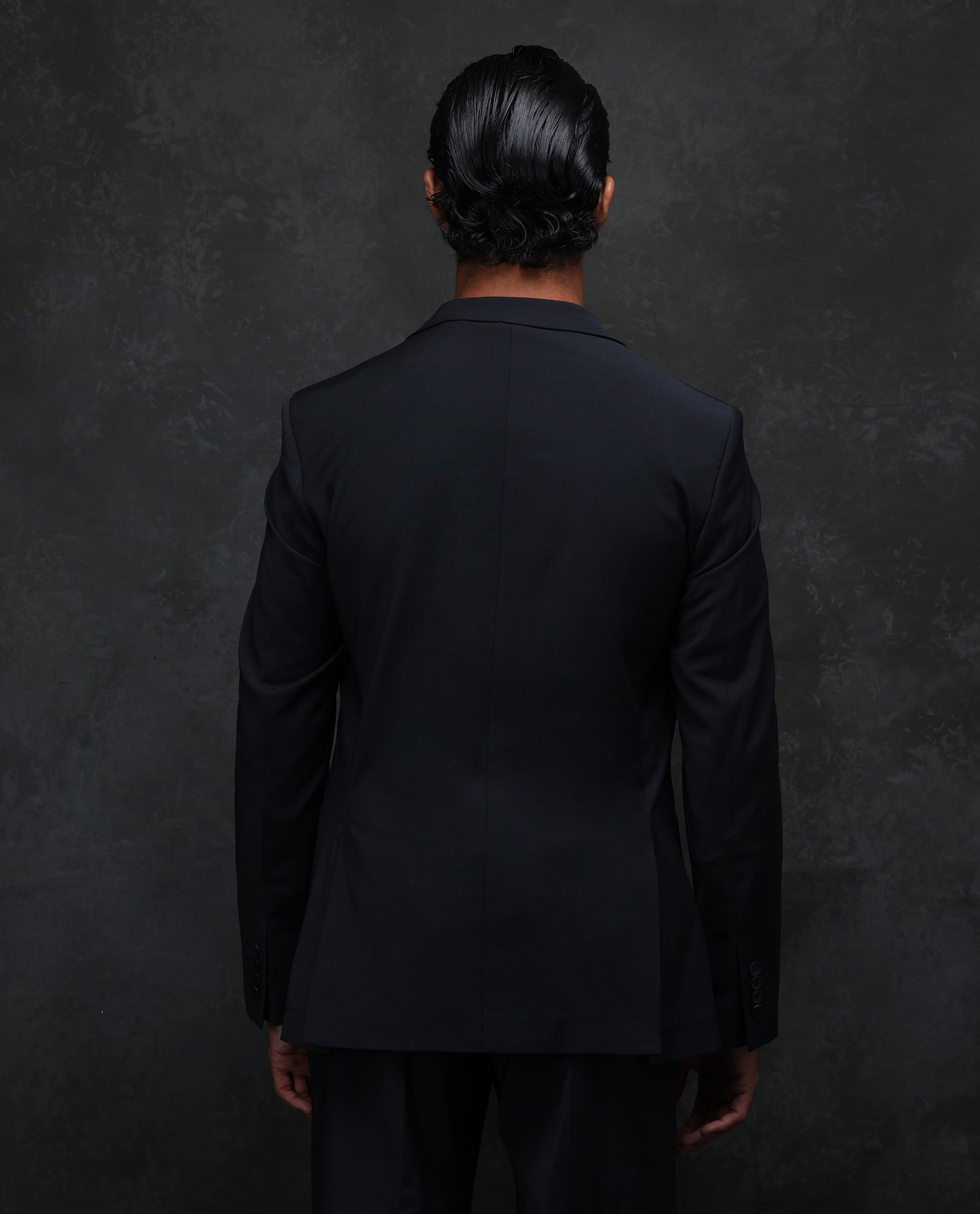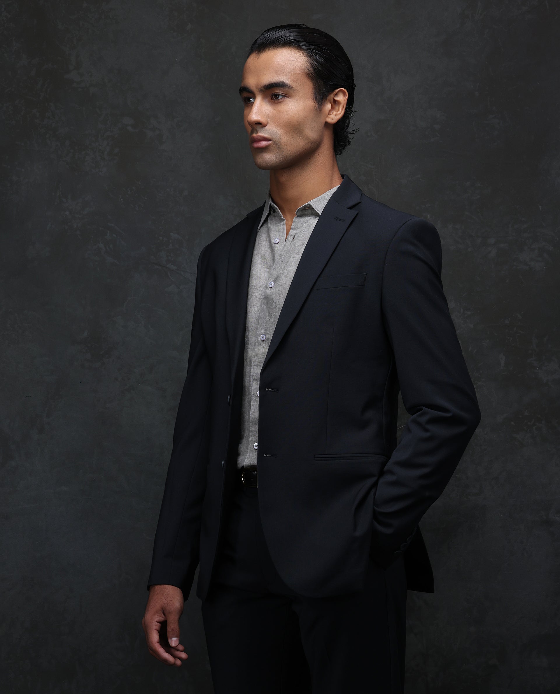 Rare Rabbit Men Arlo-B Black Wool Lapel Neck Button And Zip Closure Plain Suits