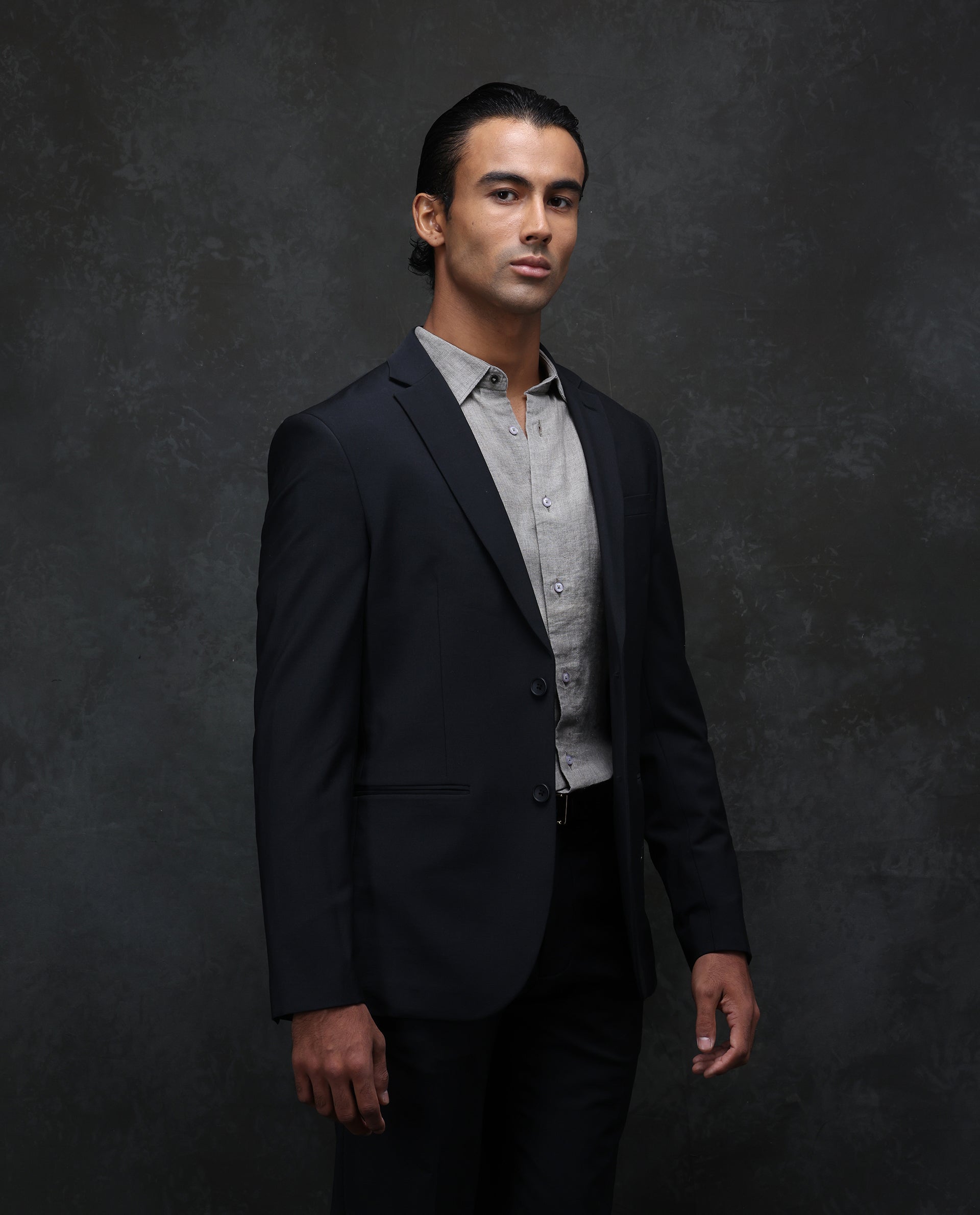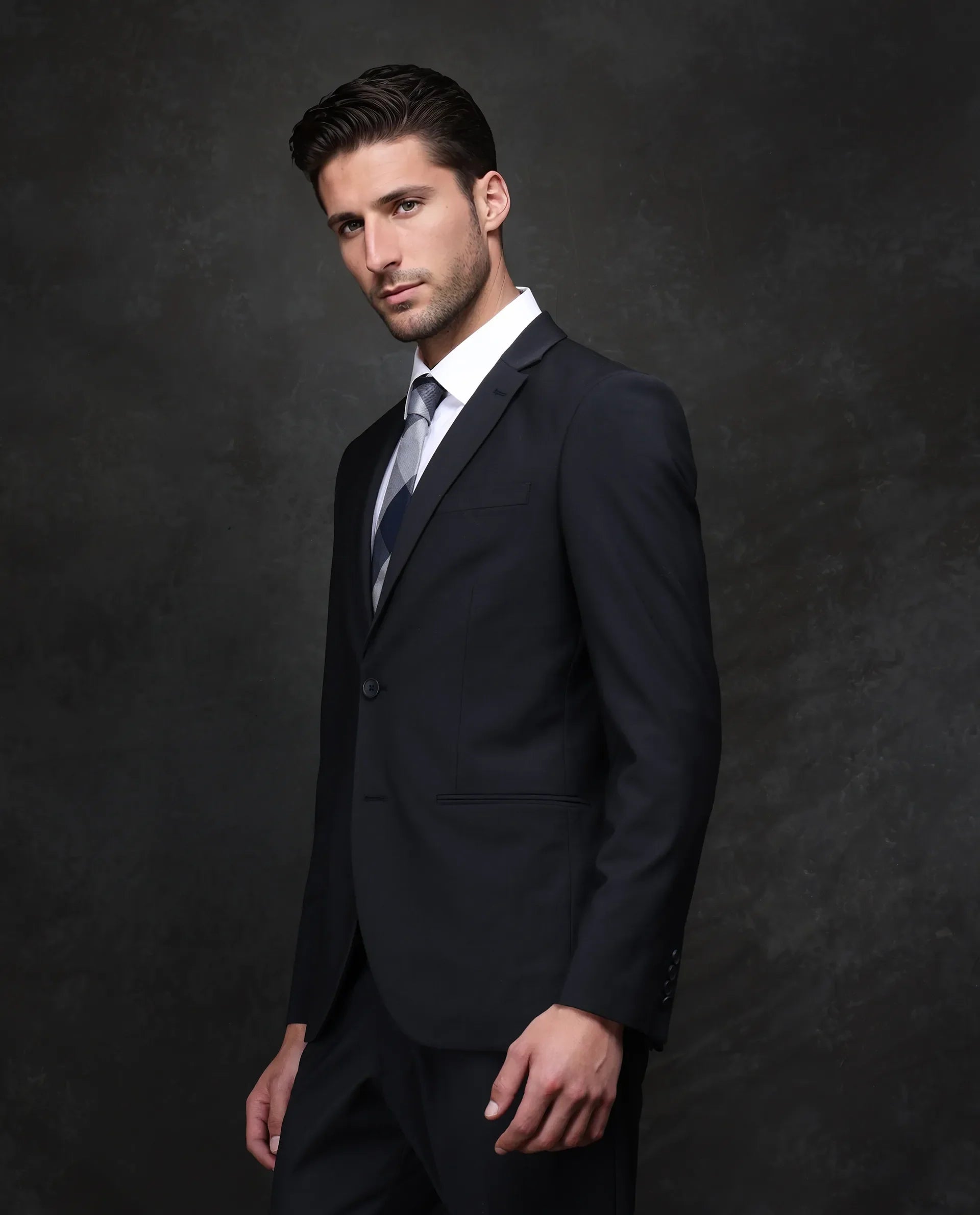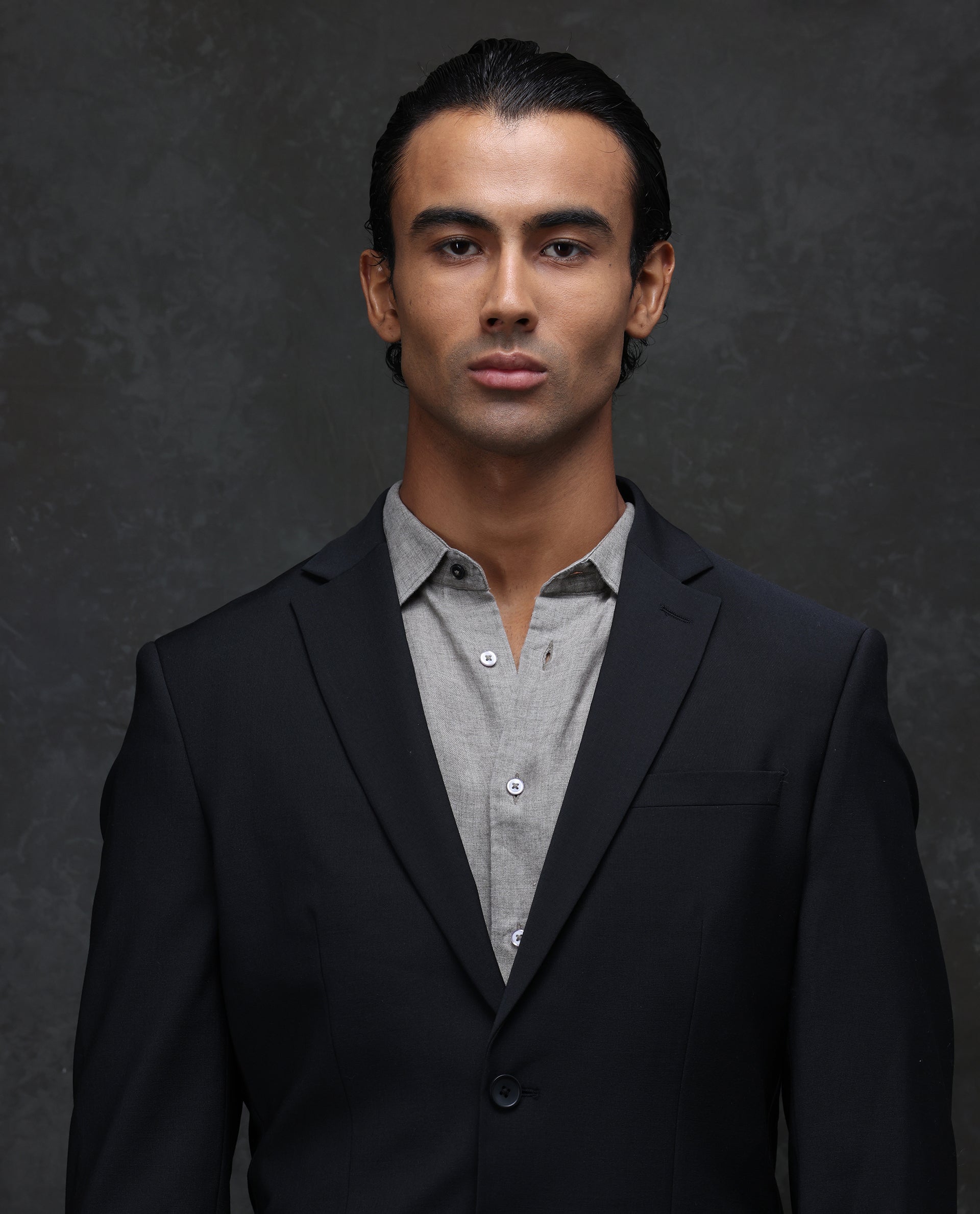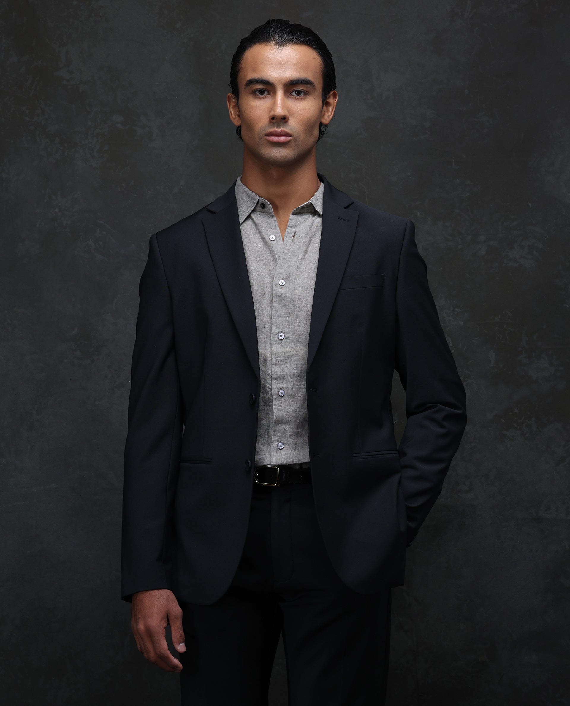 Expertly crafted with a wool blend, the Rare Rabbit Men Arlo-B Black Suits offer timeless style and unmatched comfort. With a lapel neck, button and zip closure, this suit is perfect for any occasion. Elevate your wardrobe and exude confidence with this quality essential.