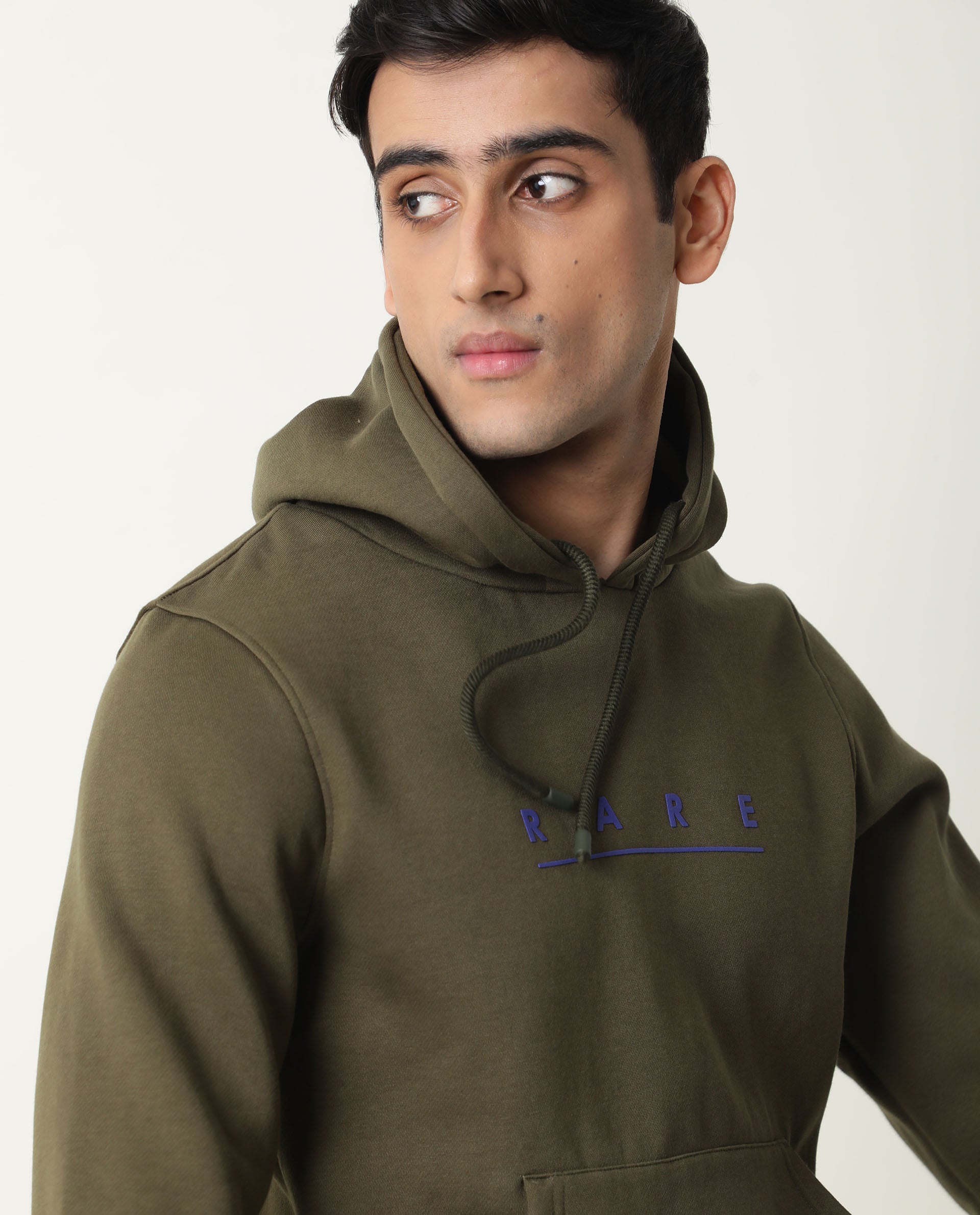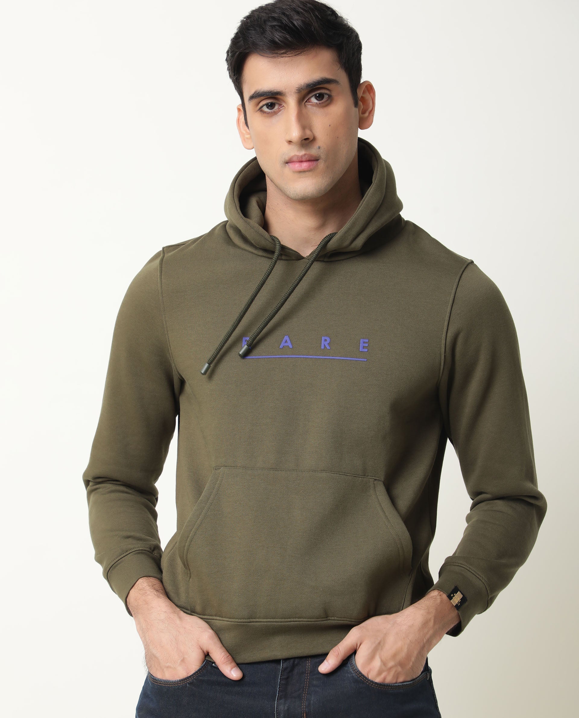 Rare Rabbit Omi Primary Olive Sweatshirt Cotton Poly Fabric Full Sleeve Hoodie Slim Fit