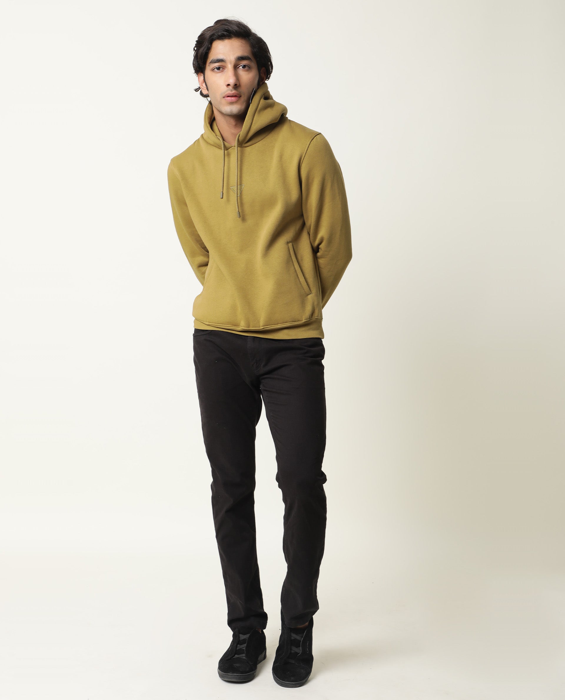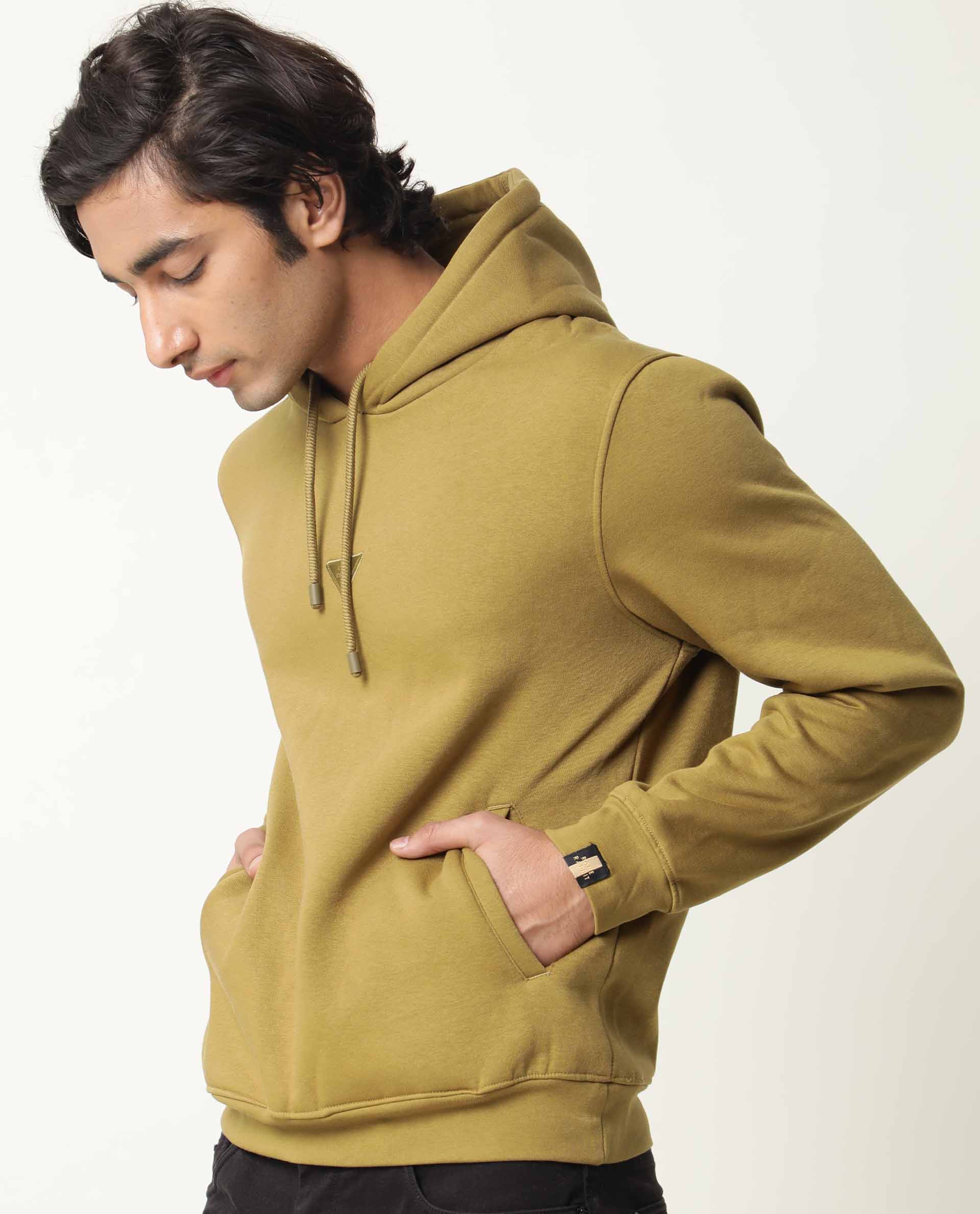 -A contemporary solid Hoodie Sweat shirt in Olive