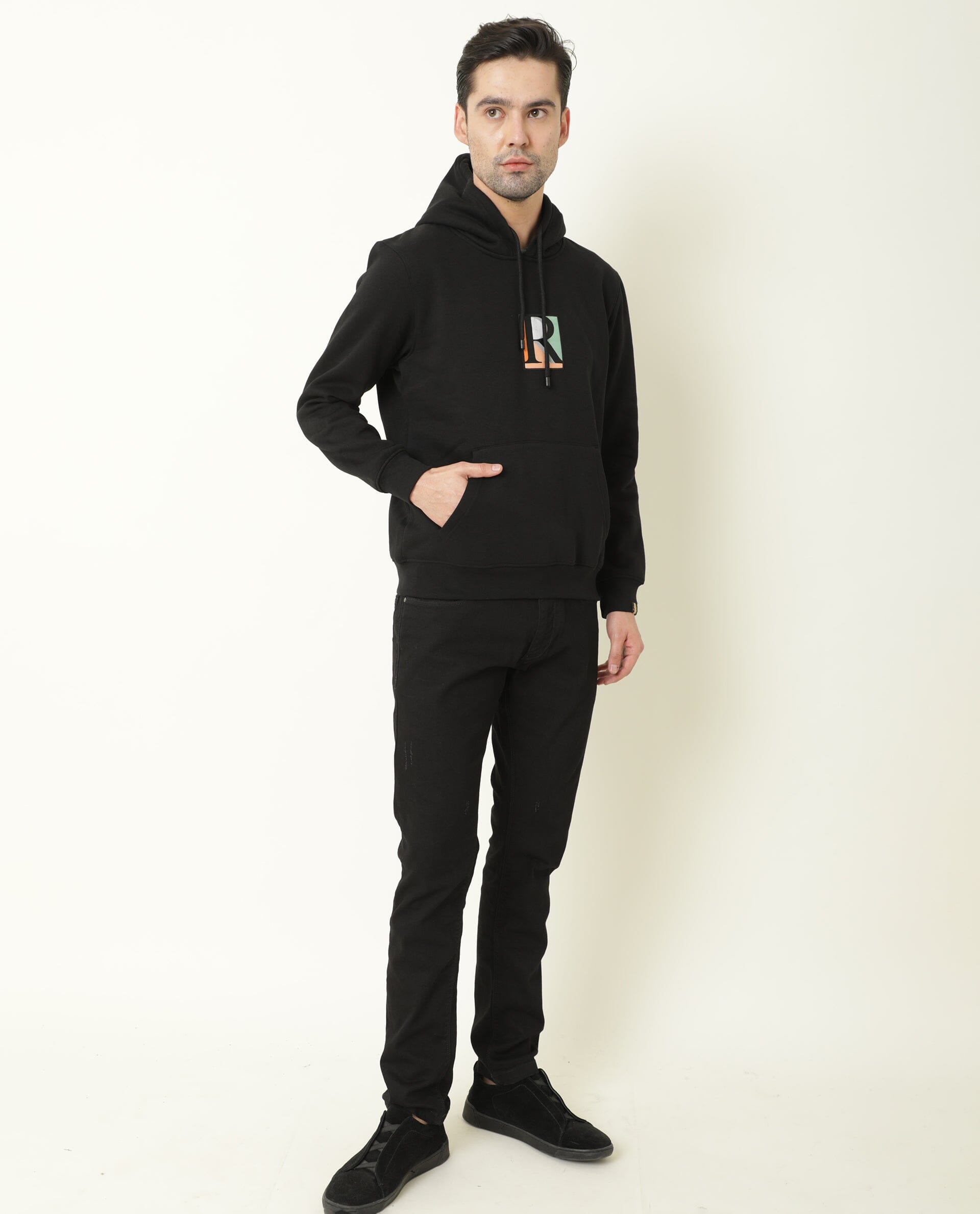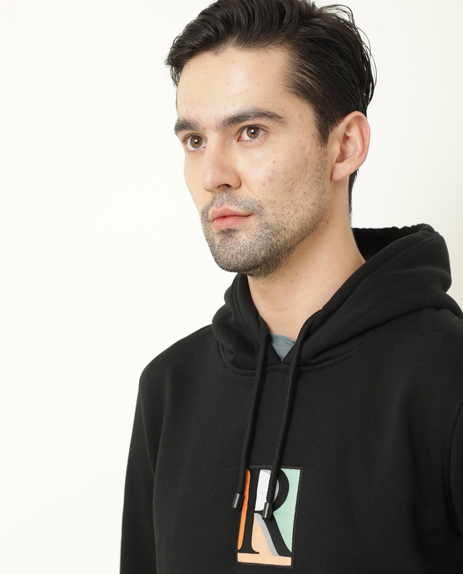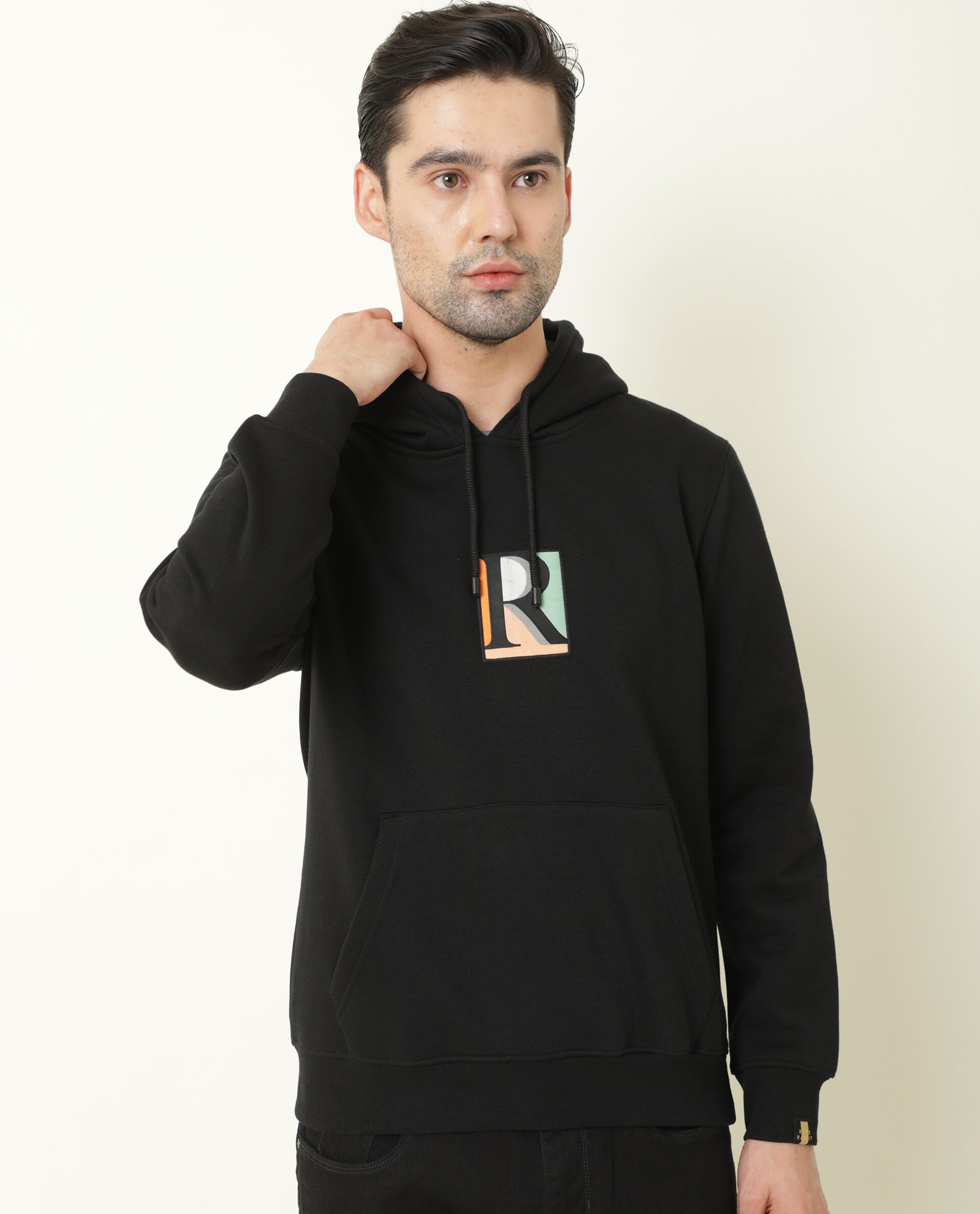 Rare Rabbit Rouyza Primary Black Sweatshirt Cotton Poly Fabric Full Sleeve Hoodie Slim Fit