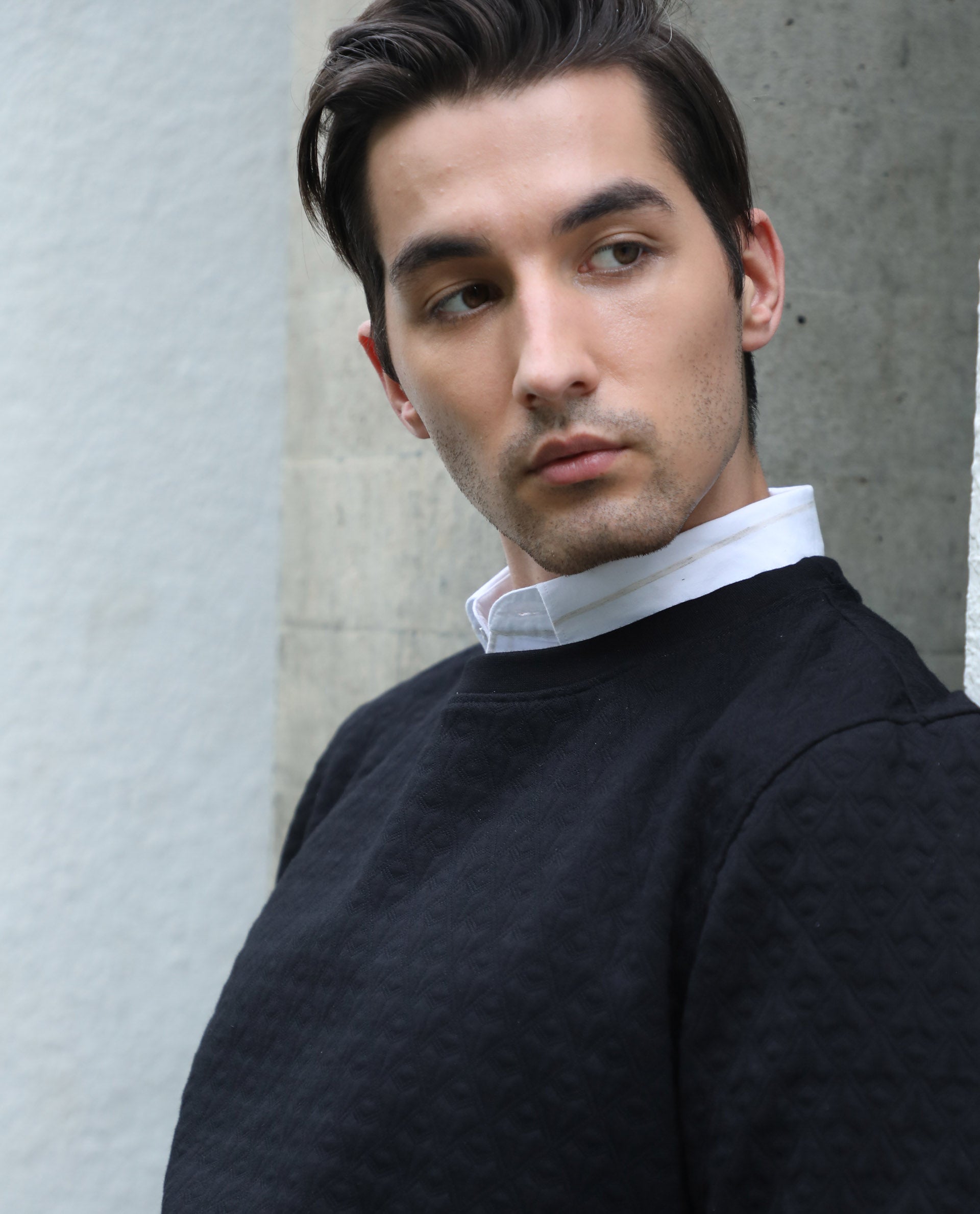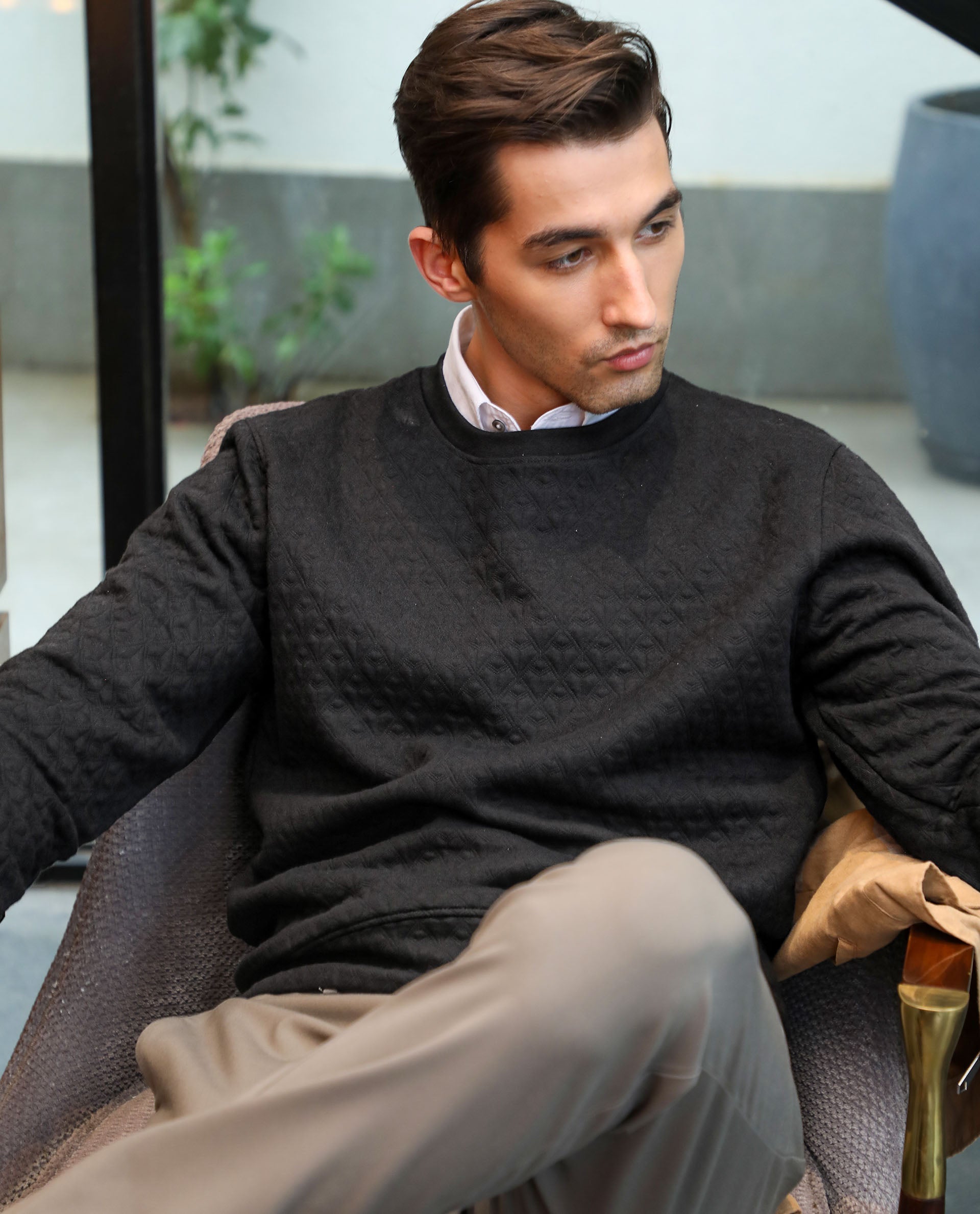 -A contemporary solid Sweatshirt in Black with Premium branding at the chest.