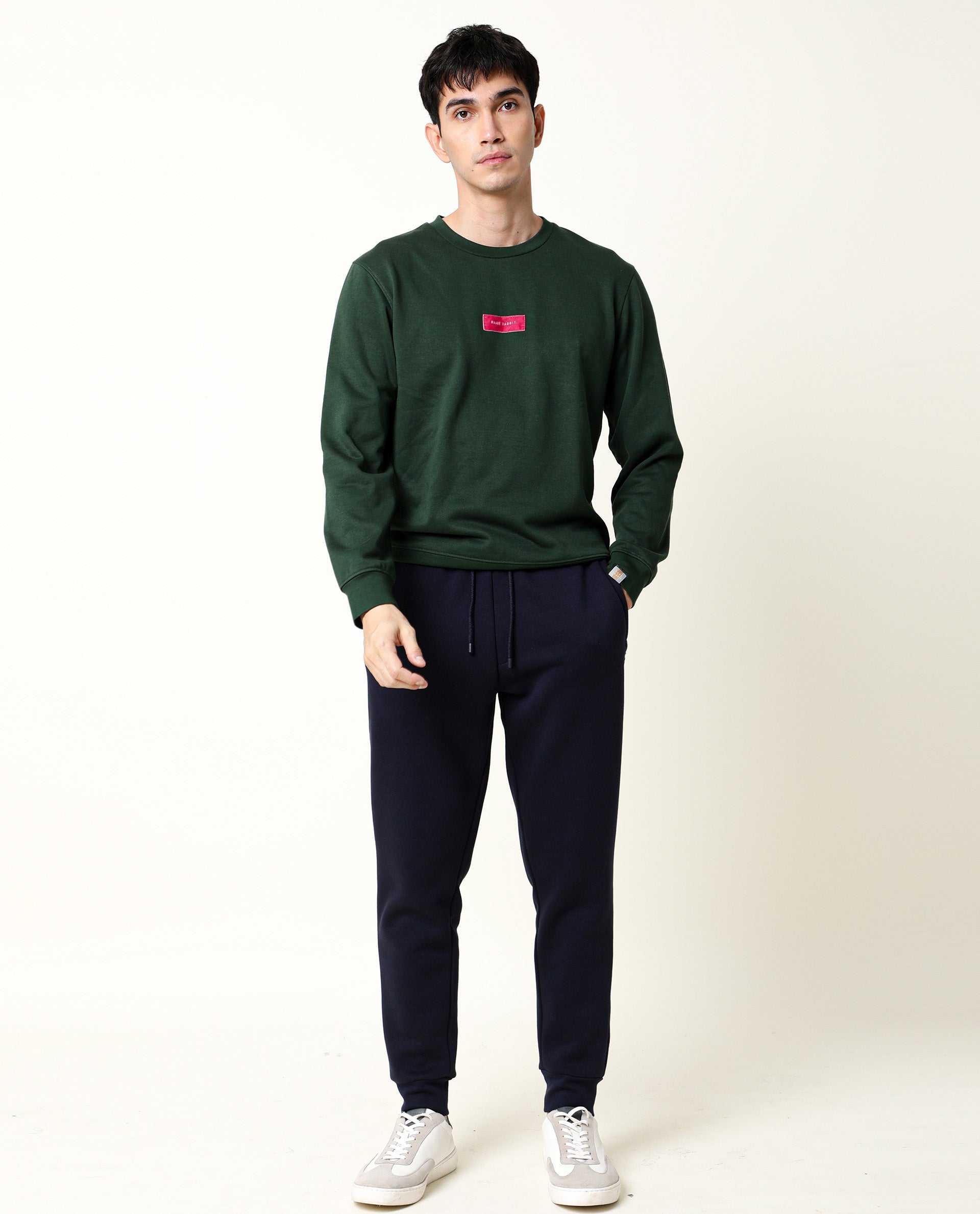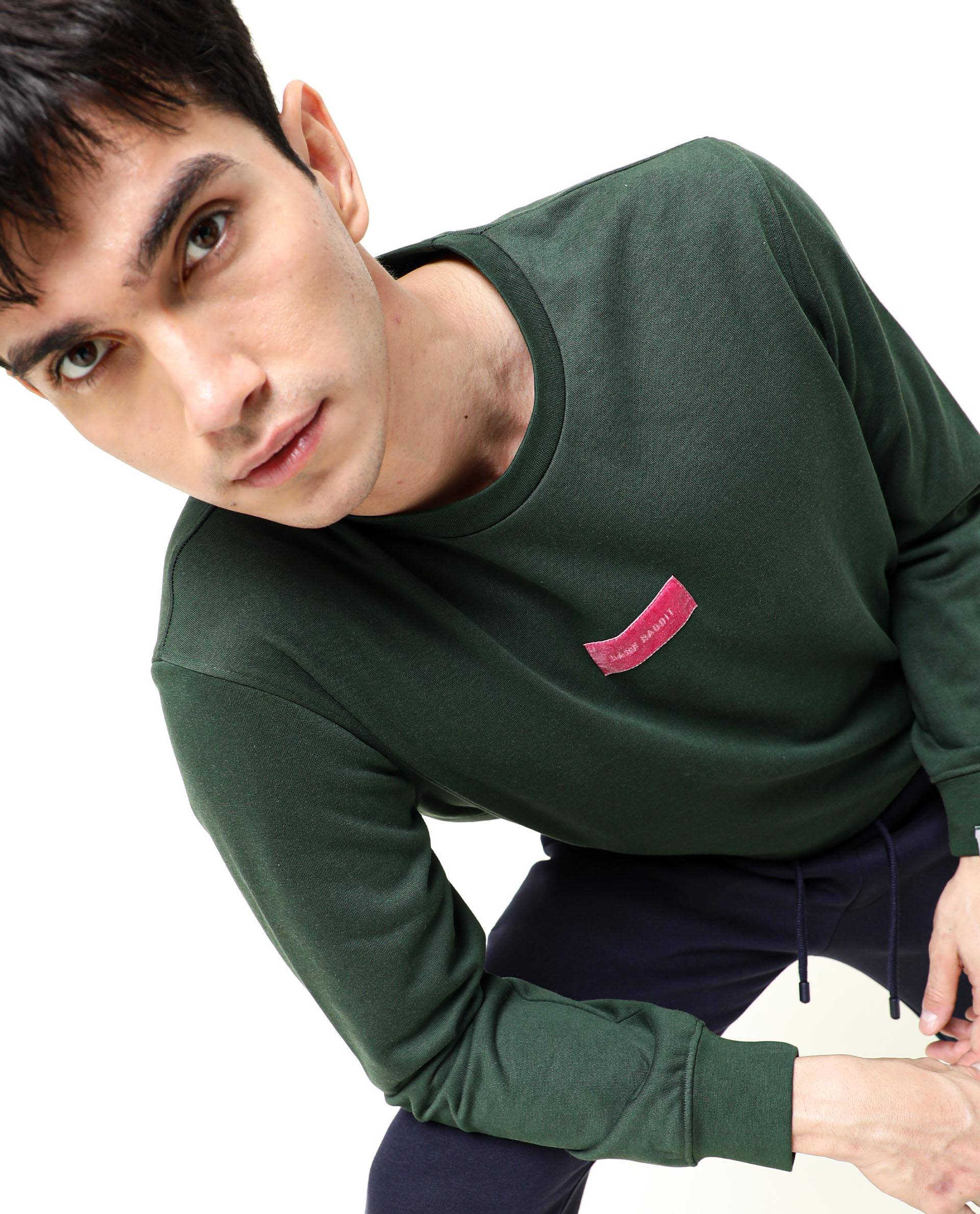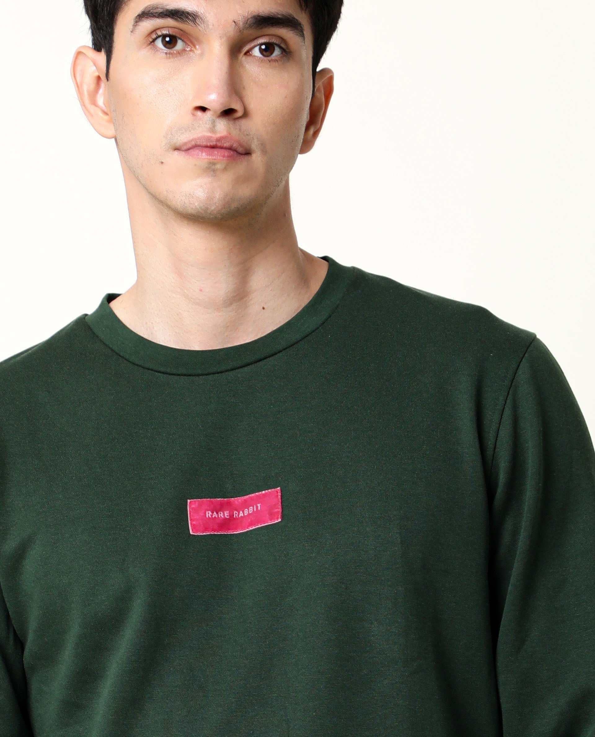 Rare Rabbit Men's Velveto Green Cotton Polyester Fabric Full Sleeves Velvet Branding Knit Sweatshirt