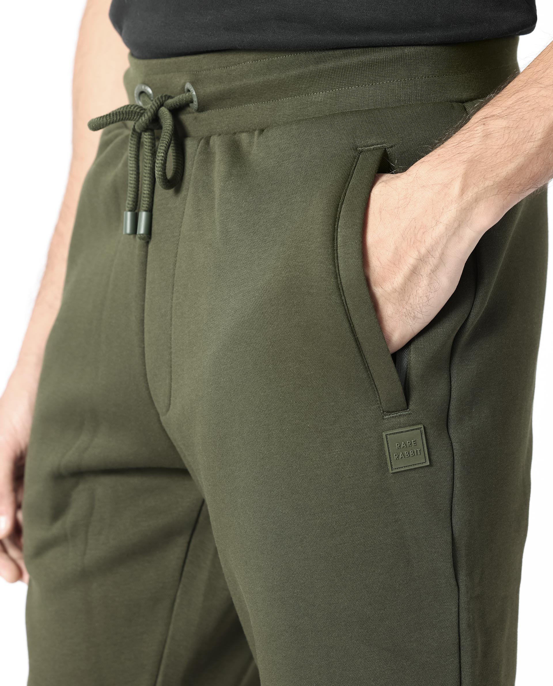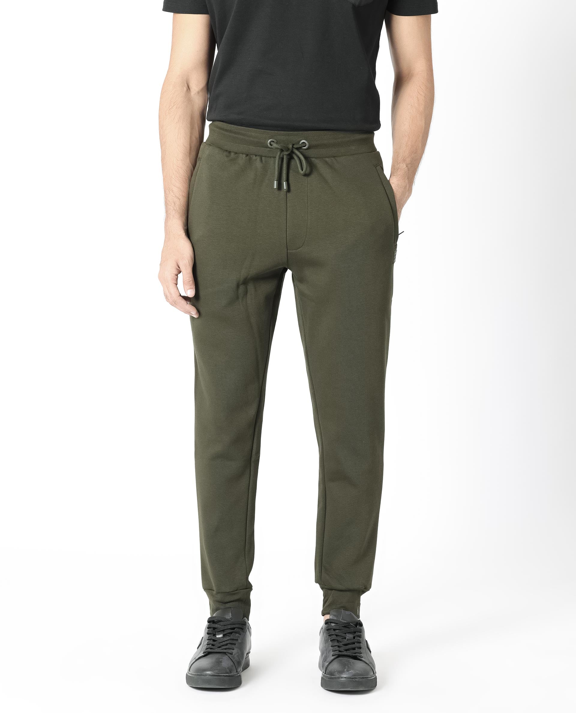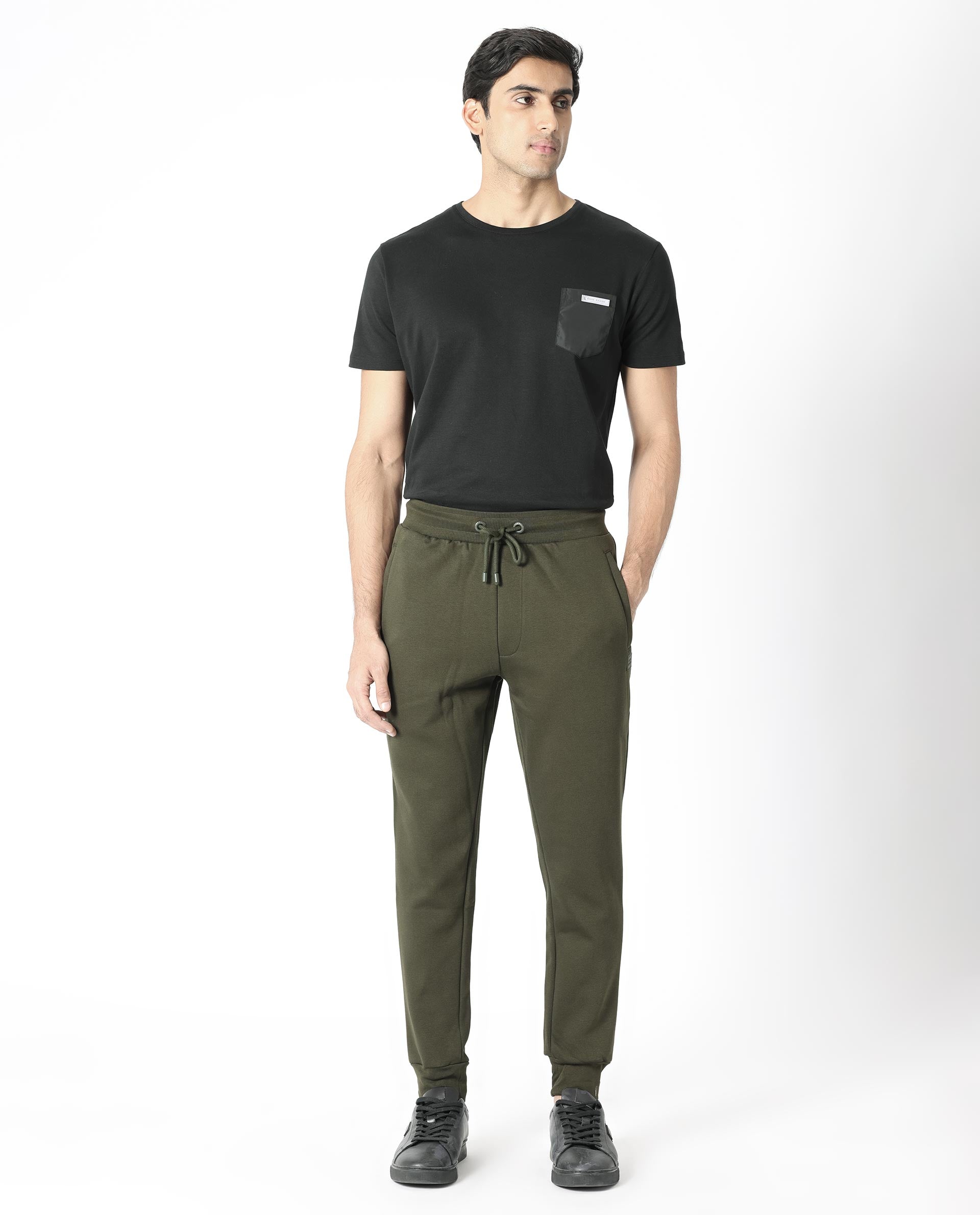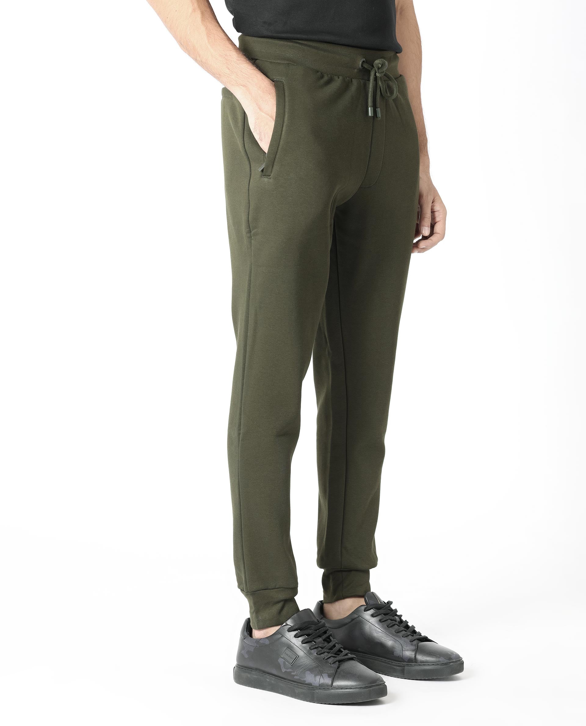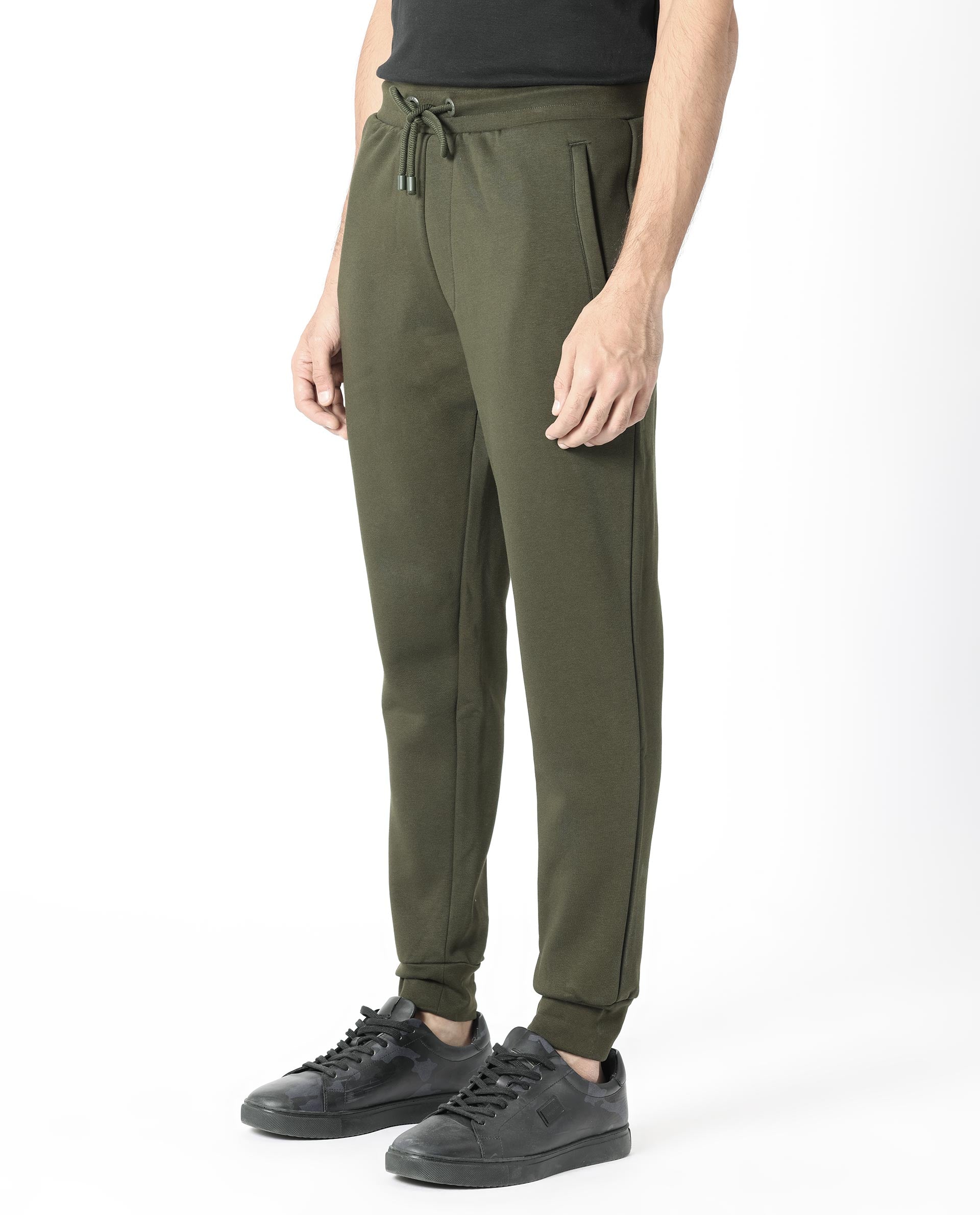 Rare Rabbit Men's Fenit Olive Cotton Polyester Fabric Drawstring Closure Regular Fit Mid Rise Trackpant