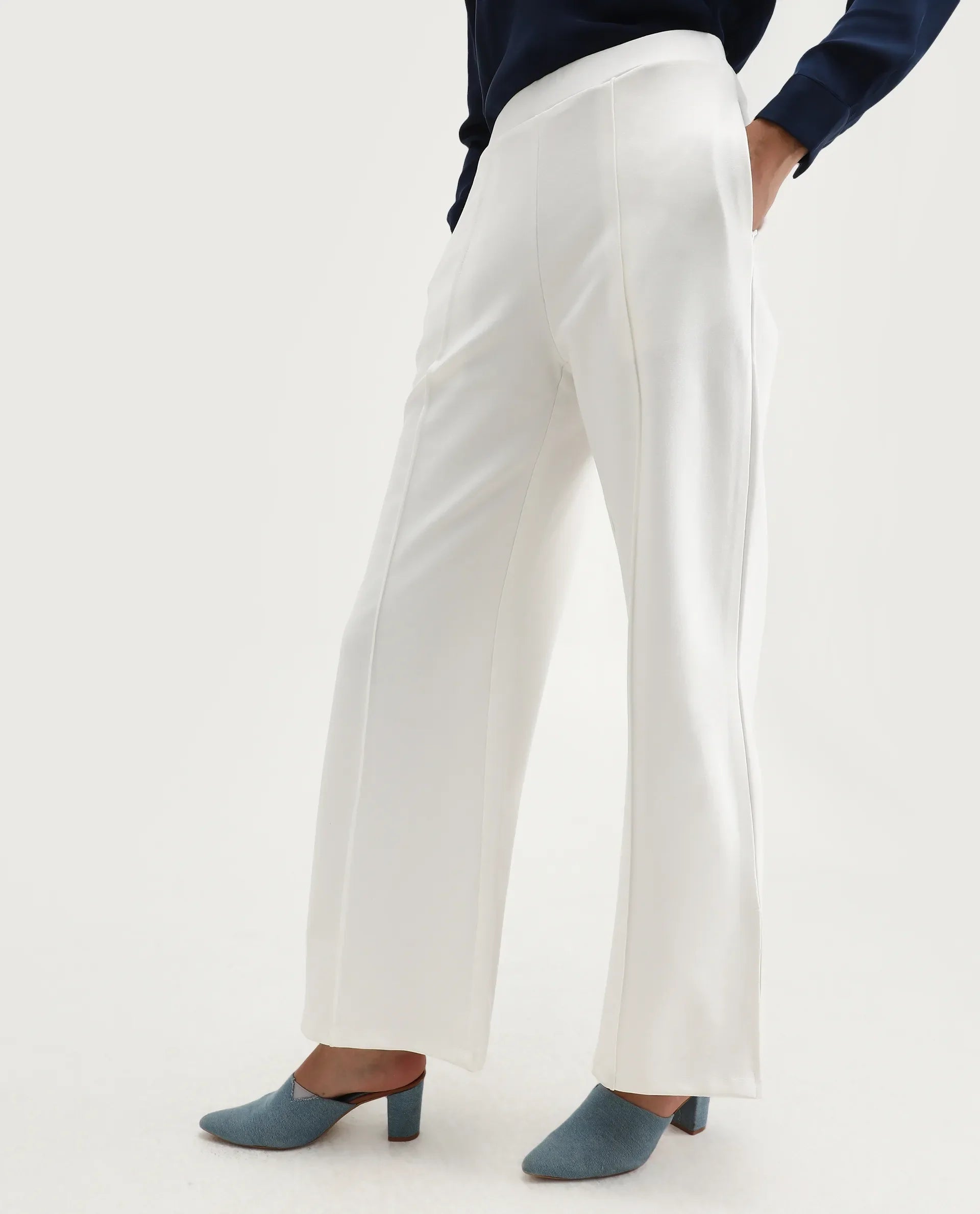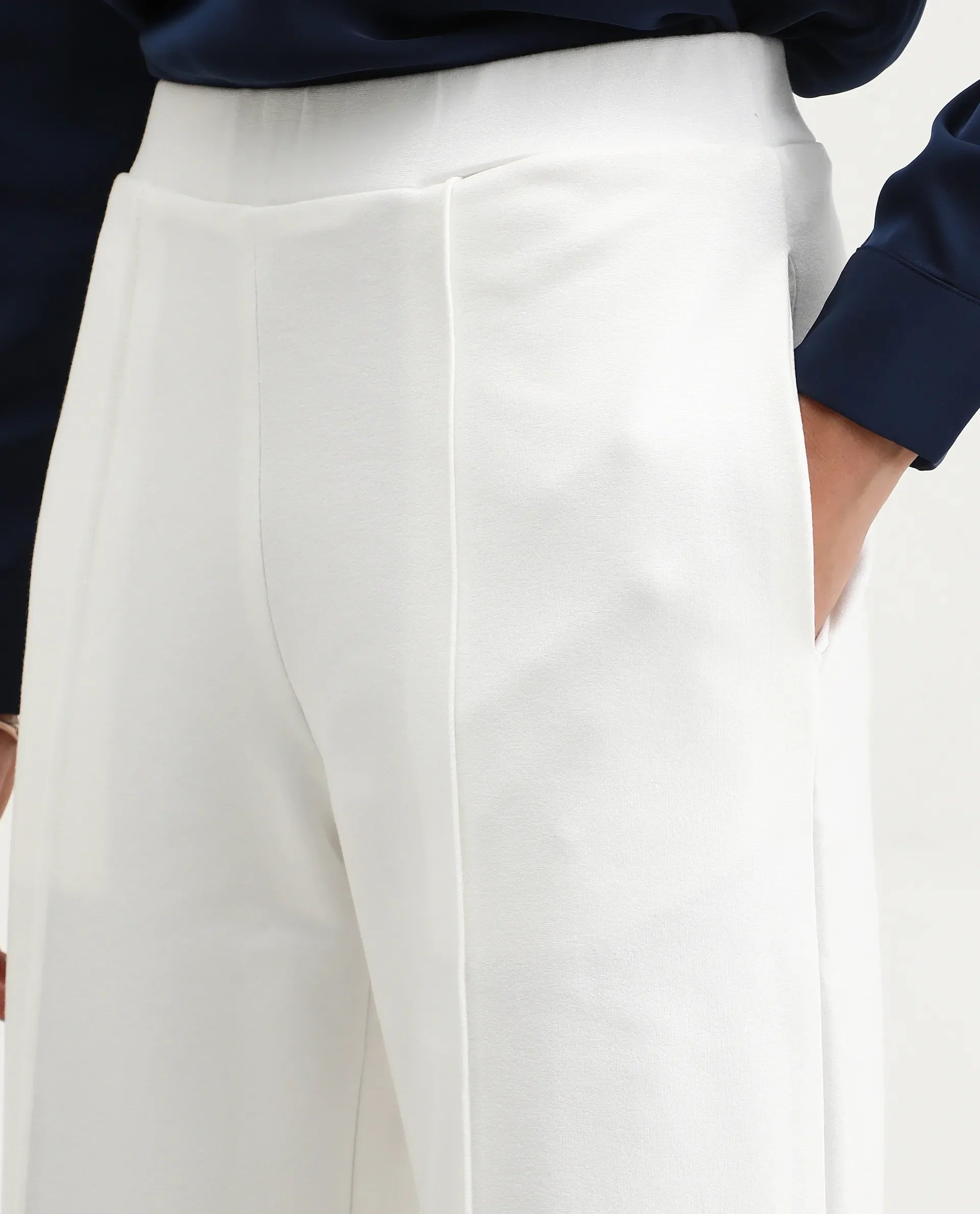 Rareism Women Jancuri Off White 67%Rayon 29%Nylon 4%Spandex Fabric Straight Fit Ankle Length Plain Trouser