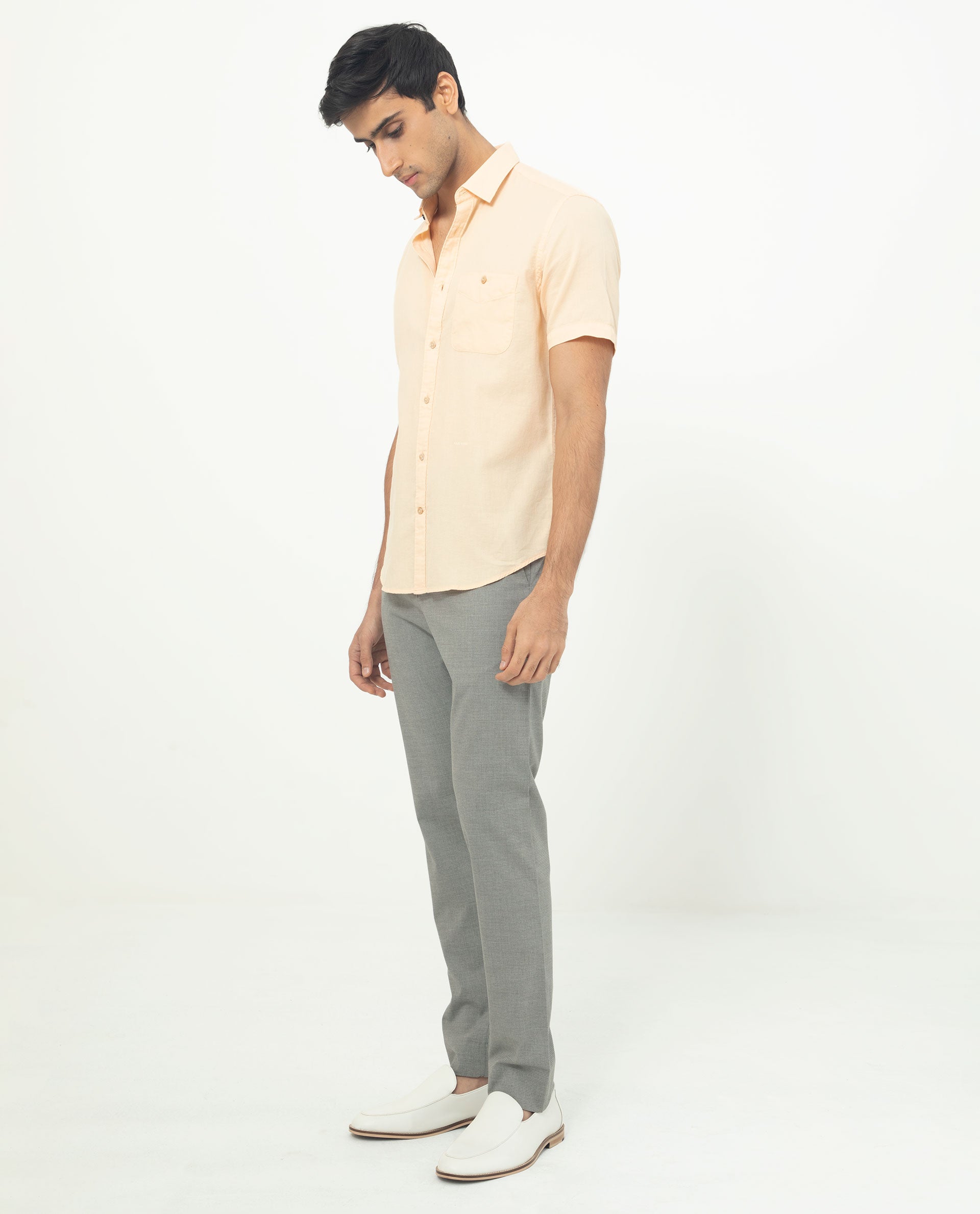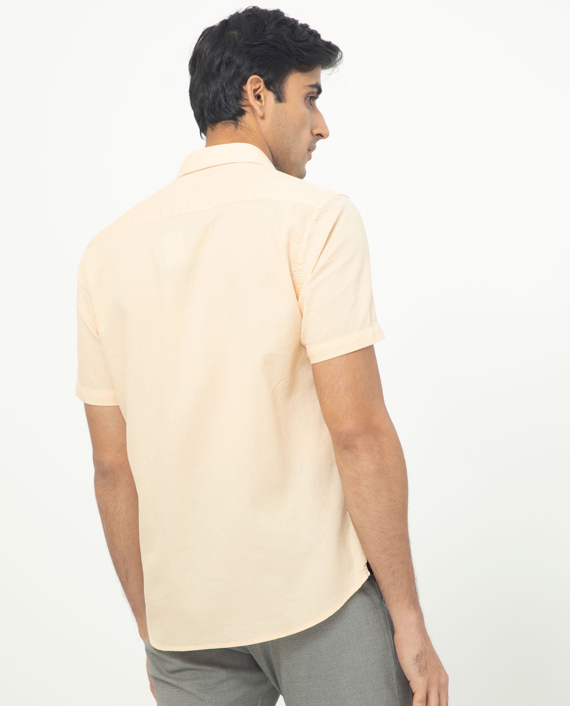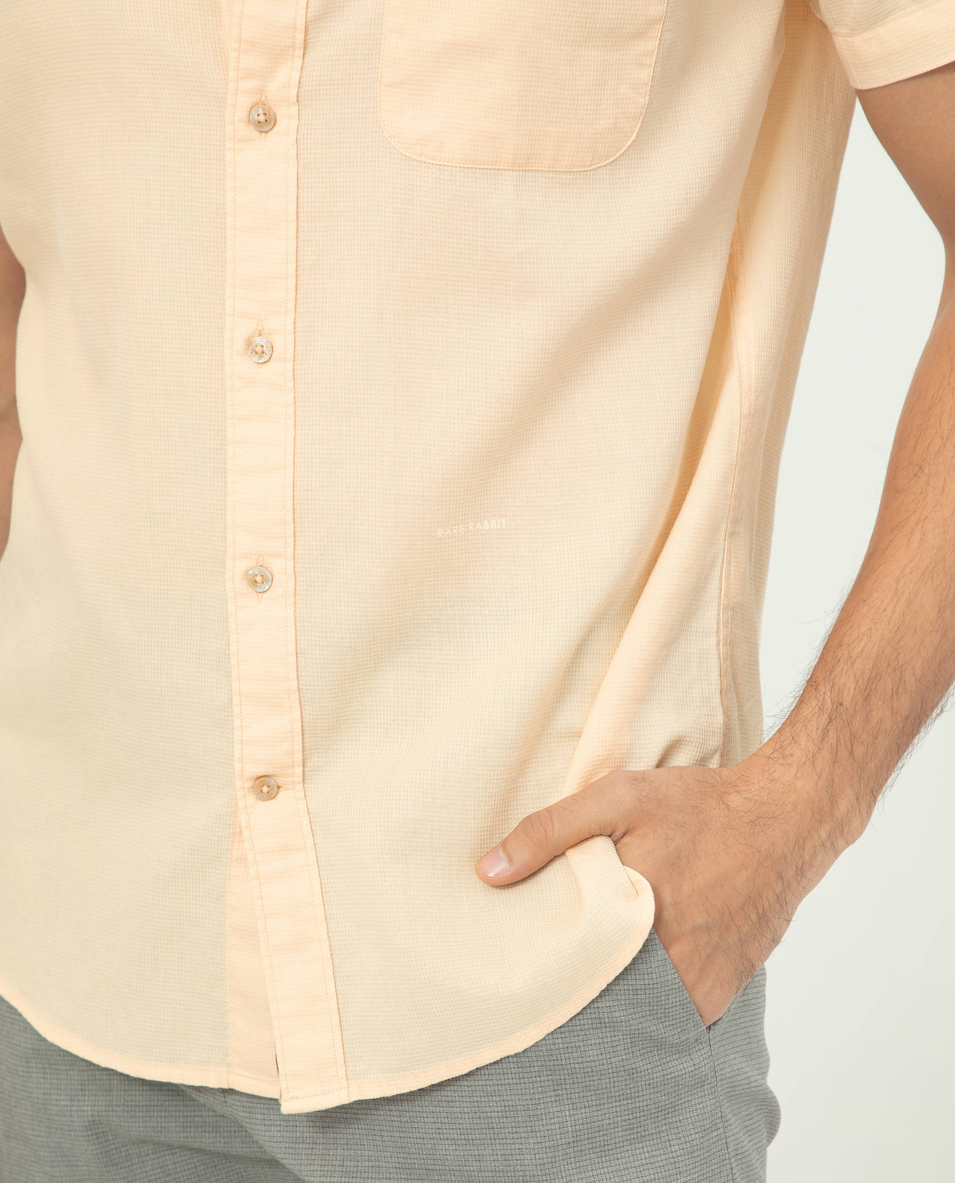 Rare Rabbit Men's Affle Peach Dobby Fabric Half Sleeves Solid Shirt