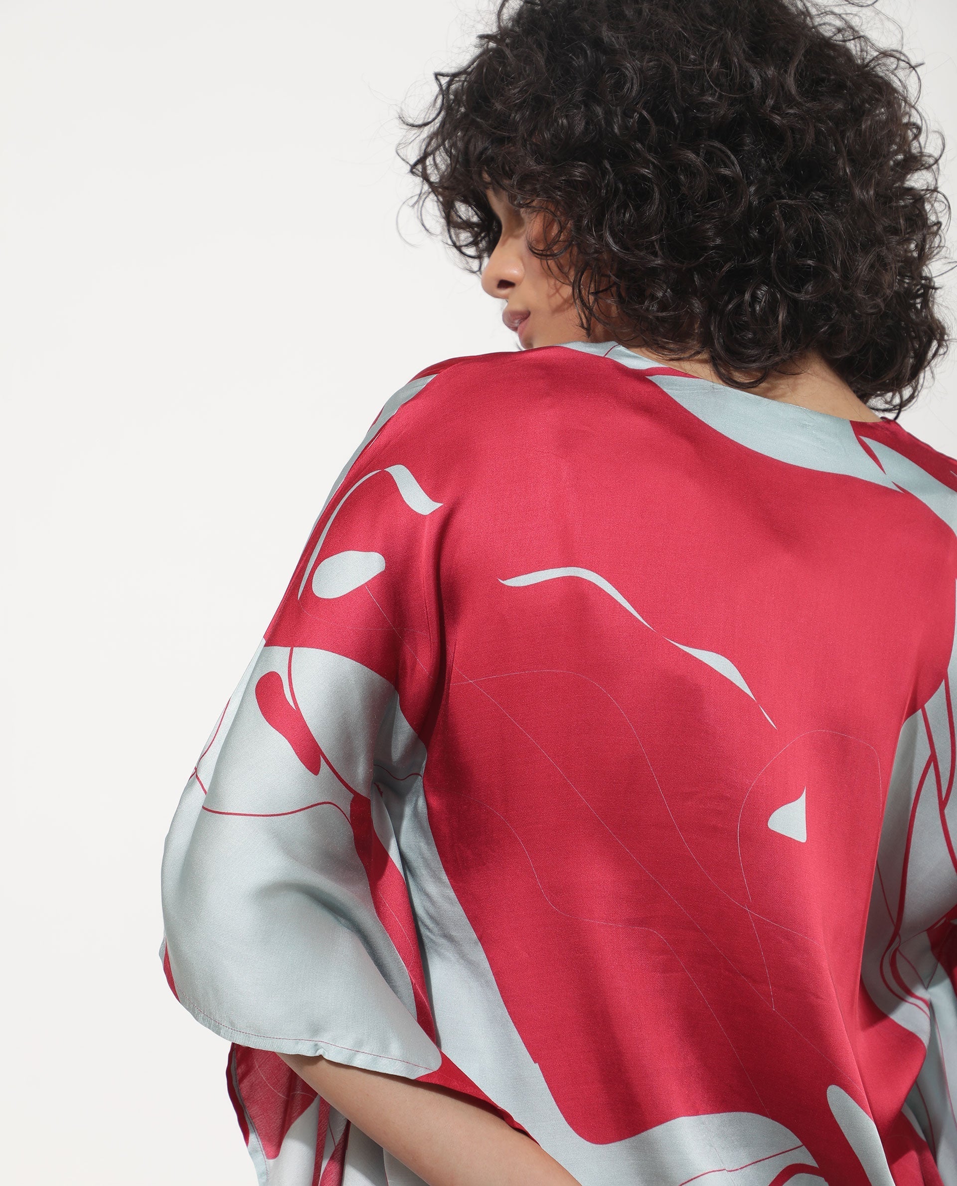Rareism Women Alyse Maroon Modal Fabric Regular Fit V-Neck Half Sleeves Abstract Print Top