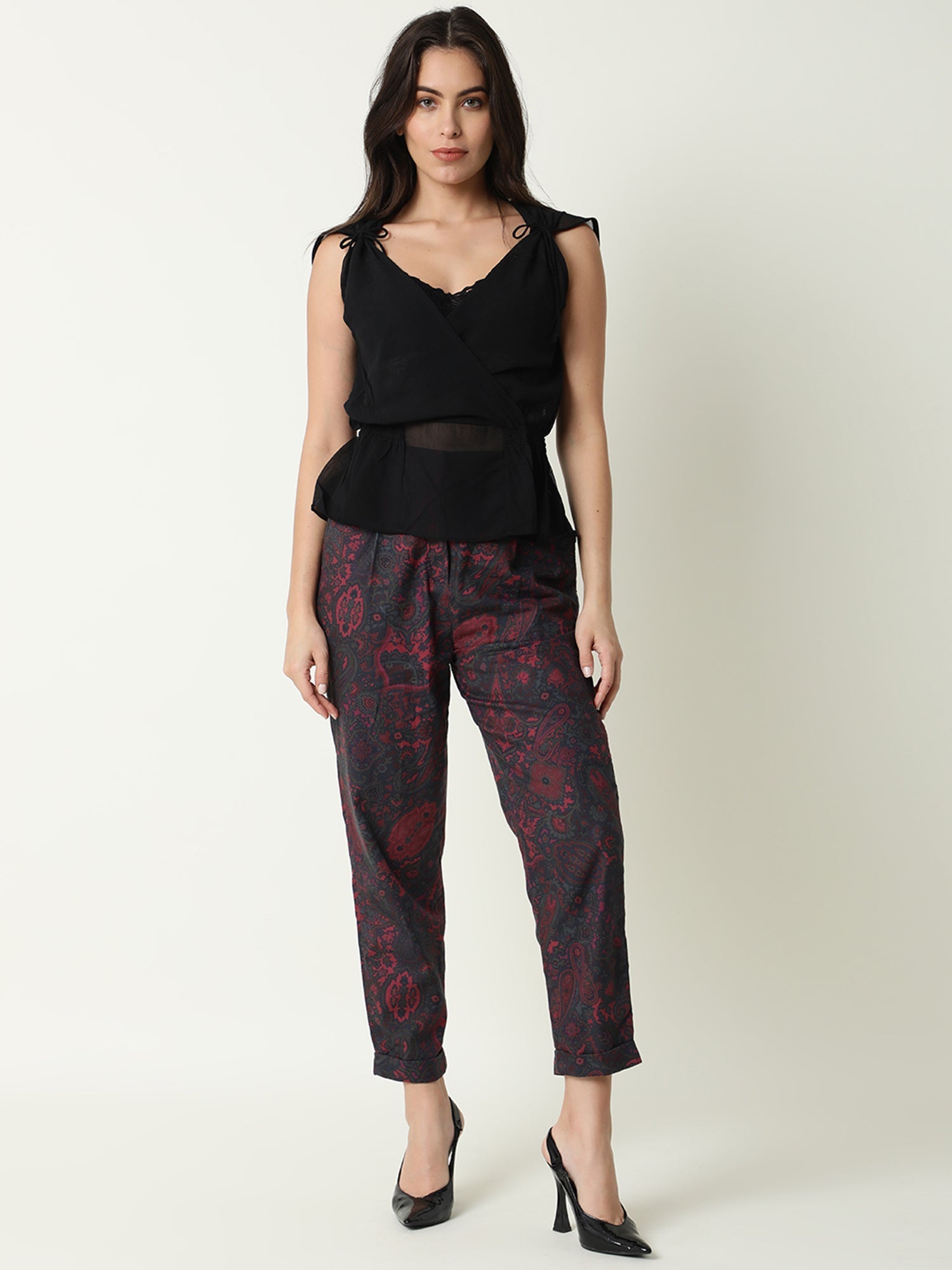 Rareism Women Belong Black Viscose Fabric Regular Fit V-Neck Sleeveless Solid Top