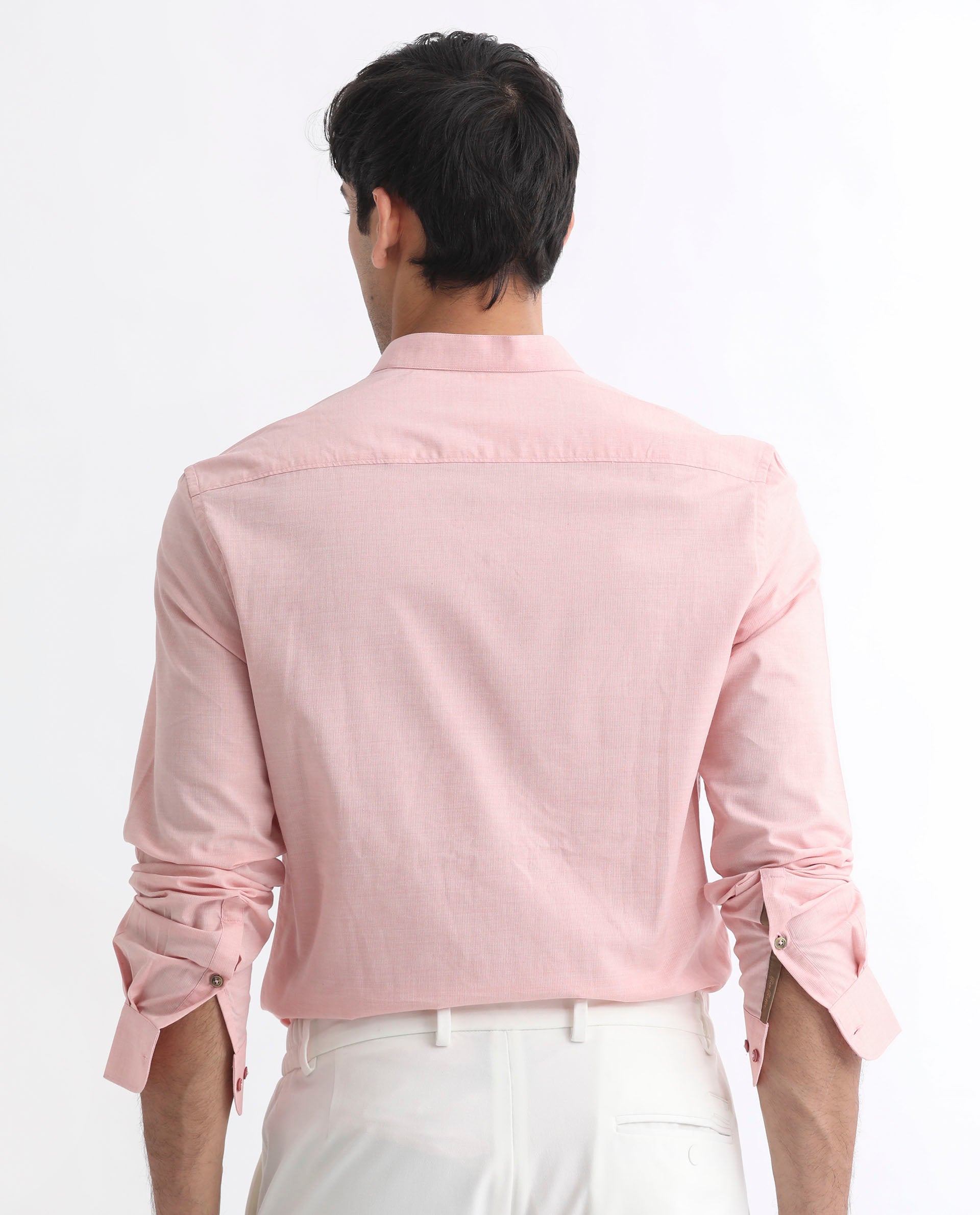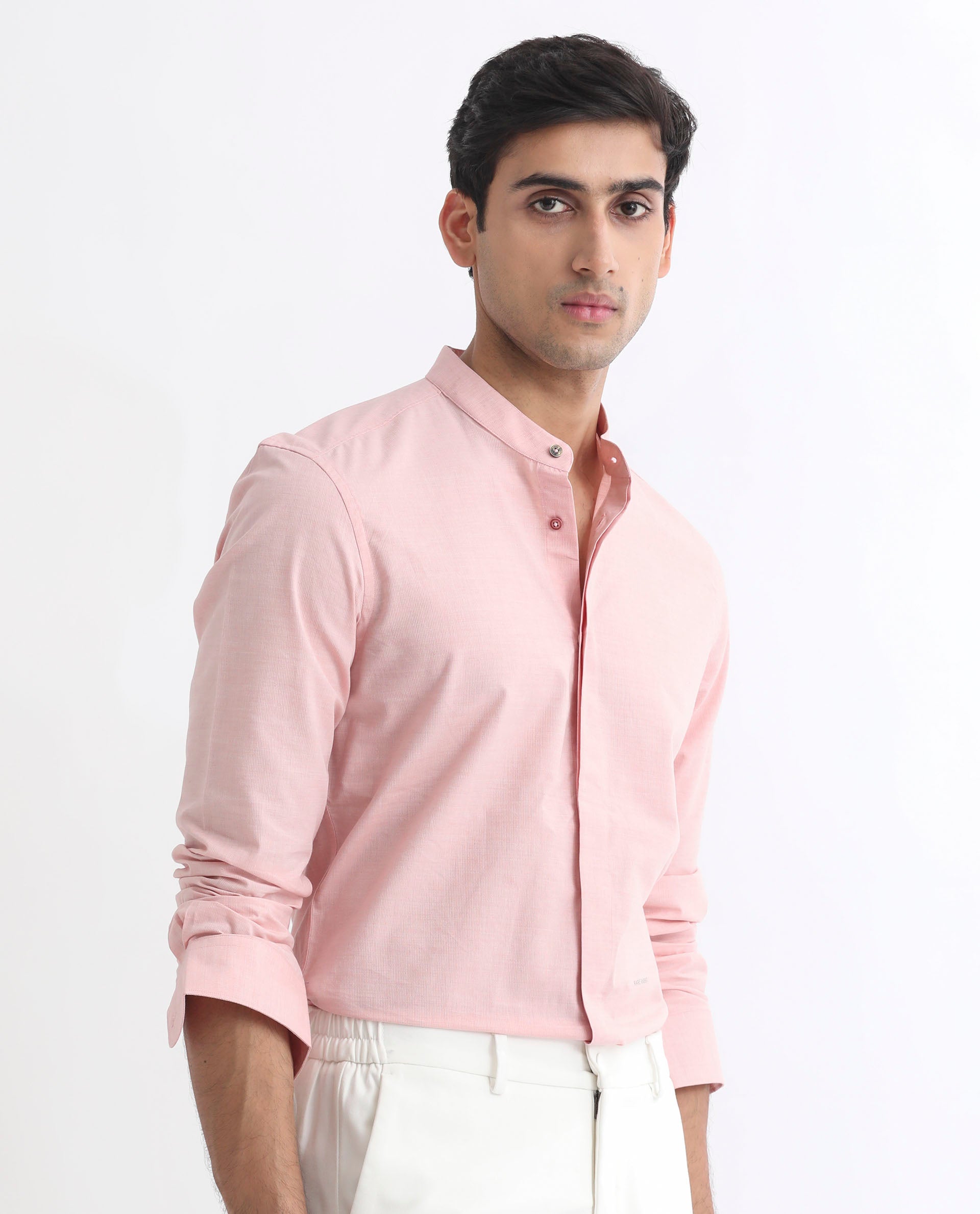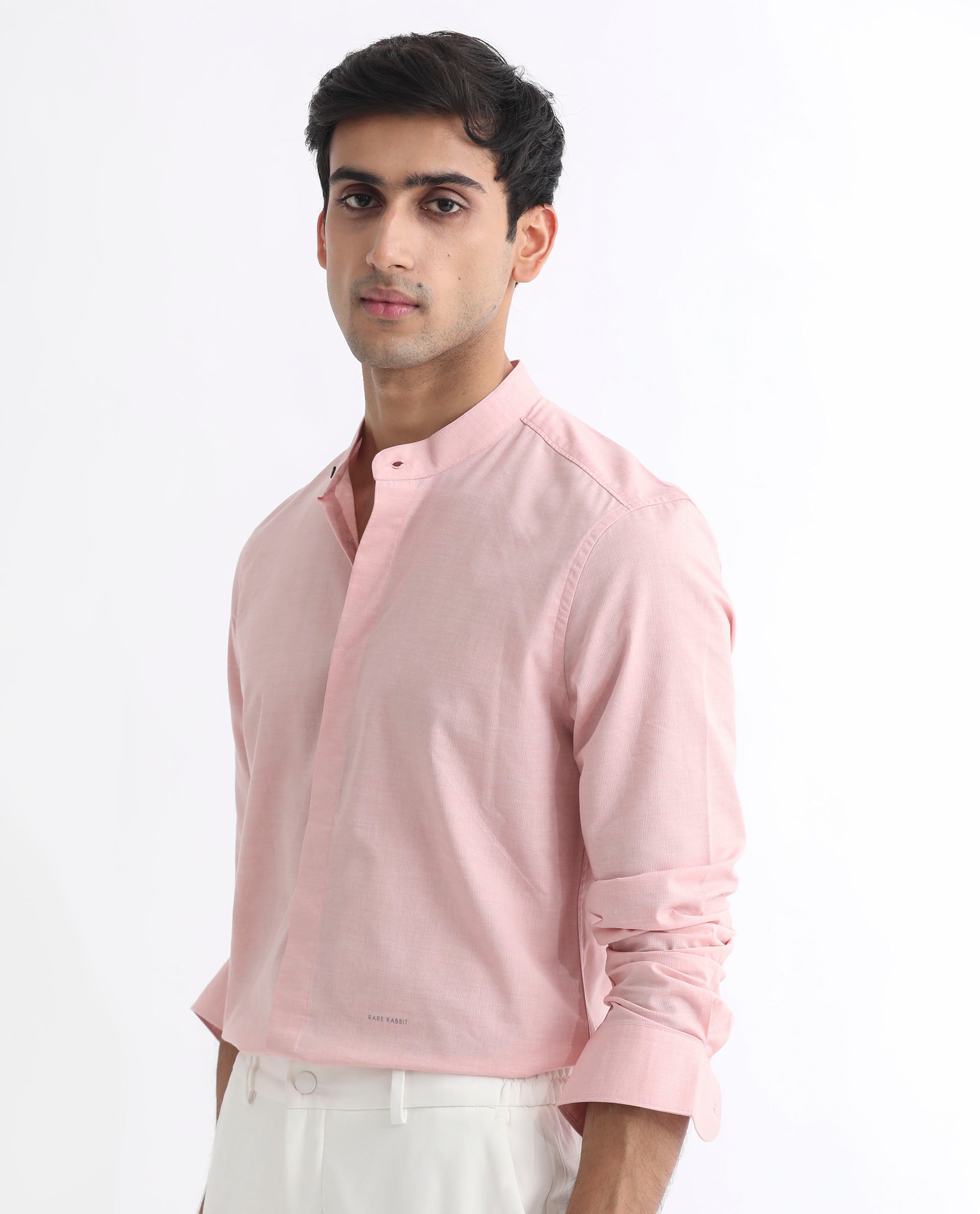 Rare Rabbit Men's Cadmi Light Pink Mandarin Collar Dobby Full Sleeves Solid Shirt