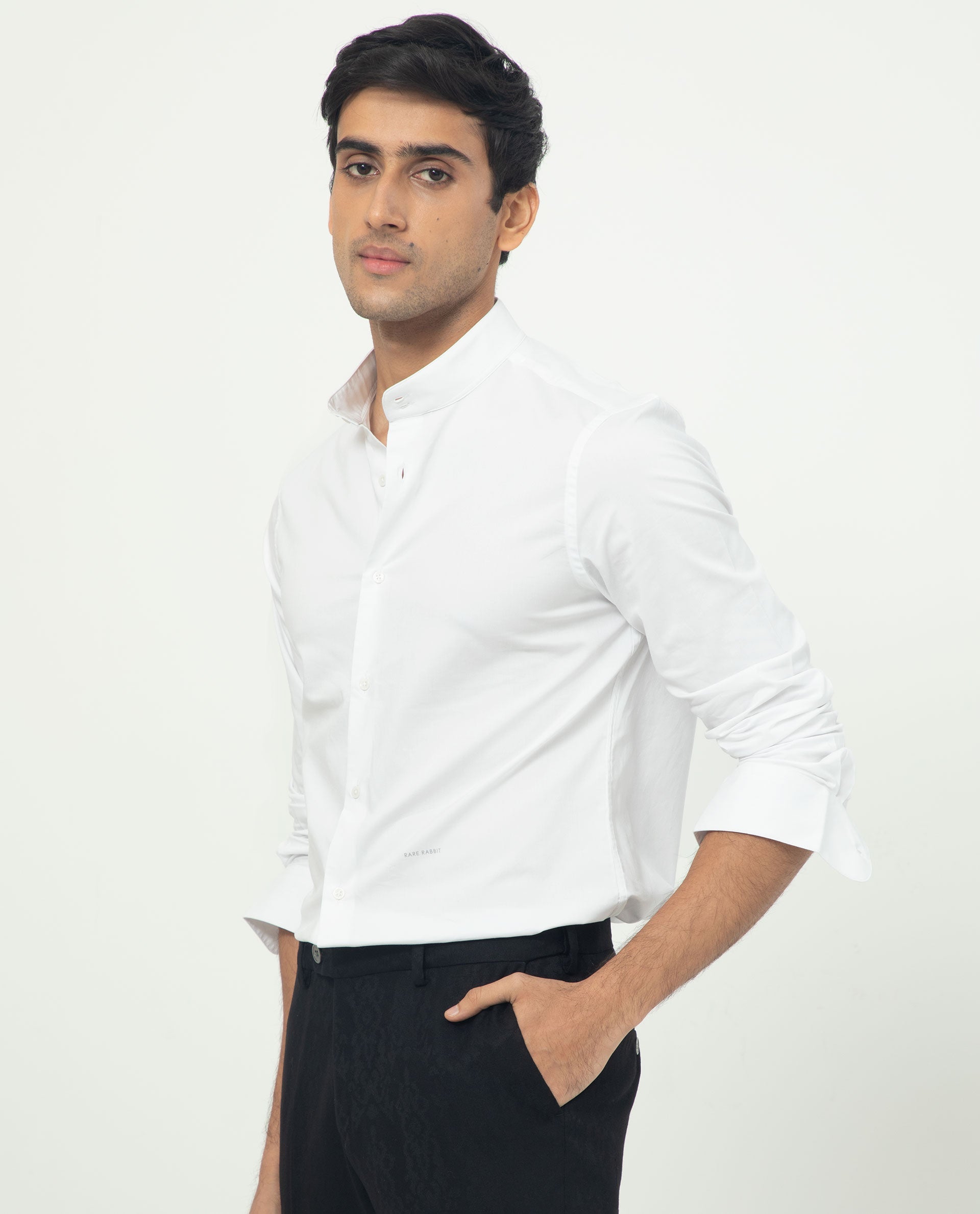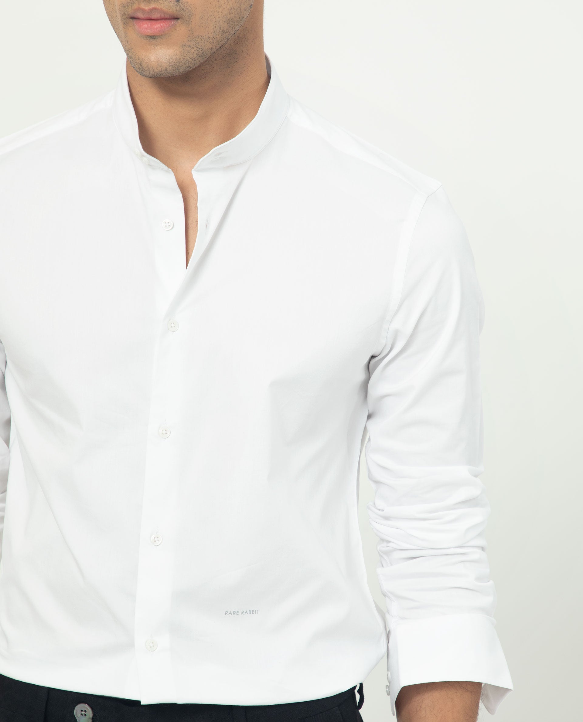 Rare Rabbit Men's Coxx Off-White Cotton Polyester Fabric High Neck Mandarin Collar Full Sleeves Solid Shirt