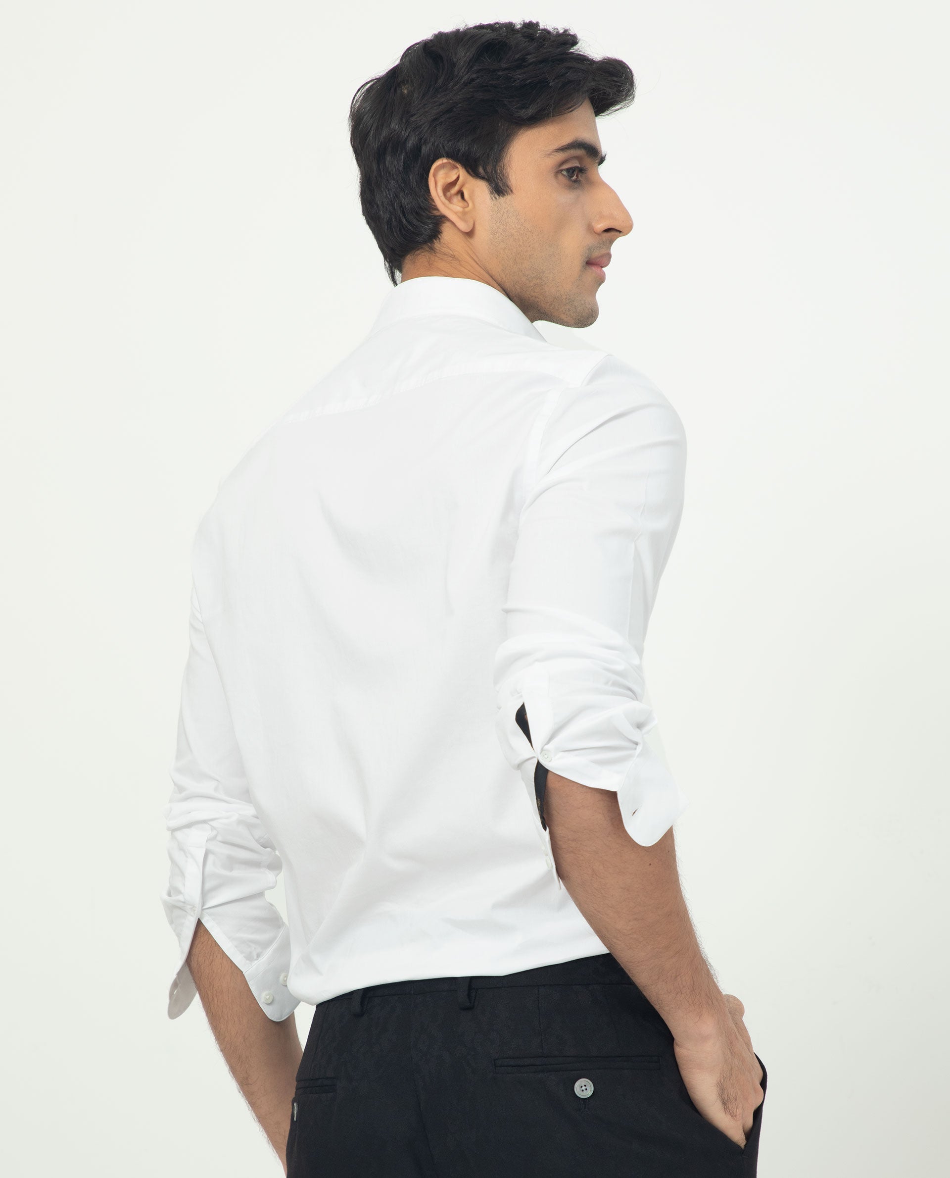 This shirt is more than fabric; it's a sartorial choice that speaks of quiet confidence. The Mandarin collar, with its clean lines and subtle charm, elevates the shirt to a timeless piece of distinction. Unveil a new level of sophistication as you embrace the harmonious fusion of simplicity and style.