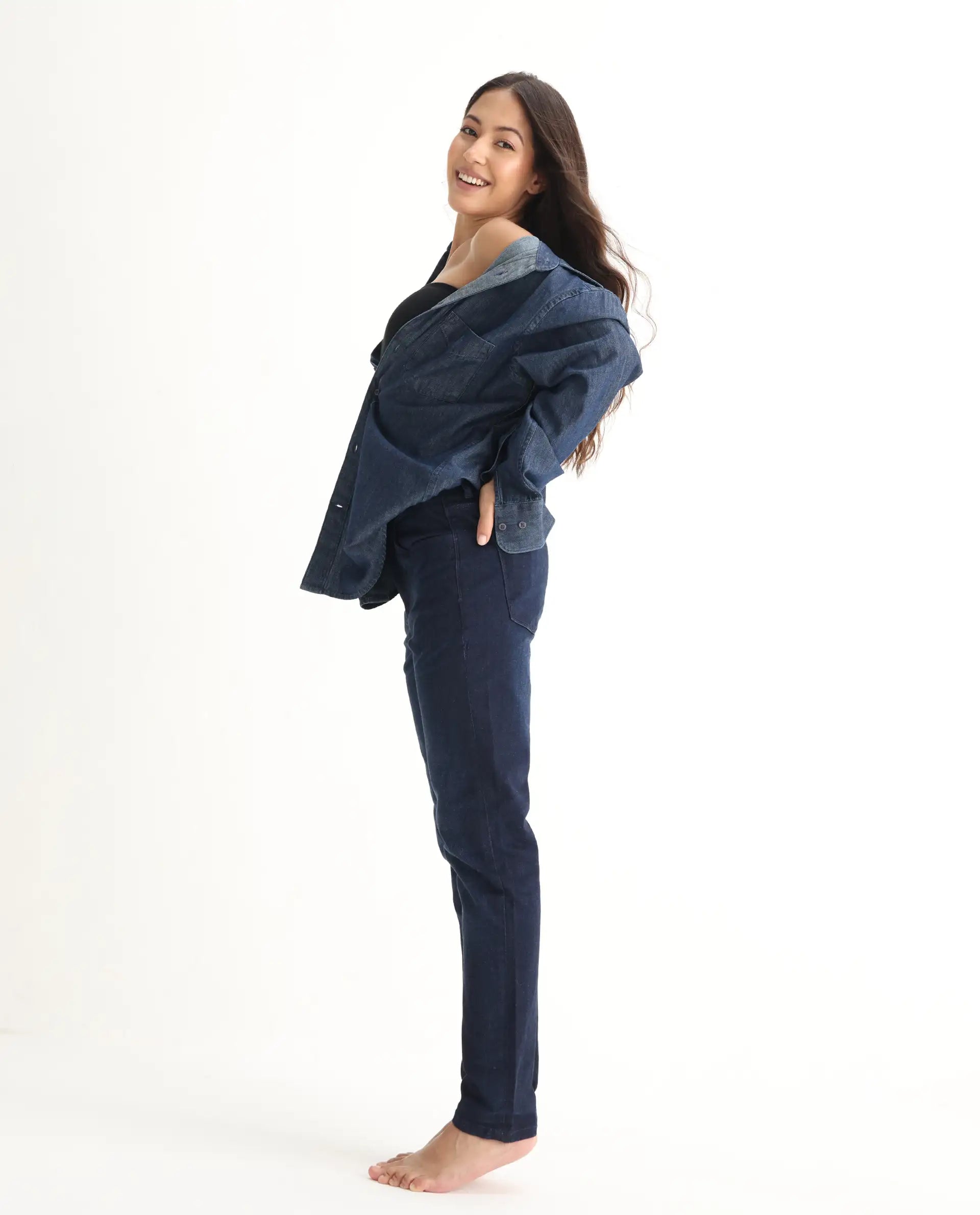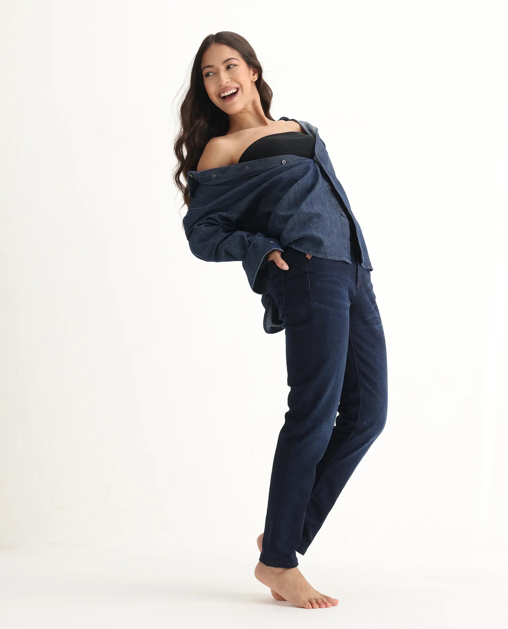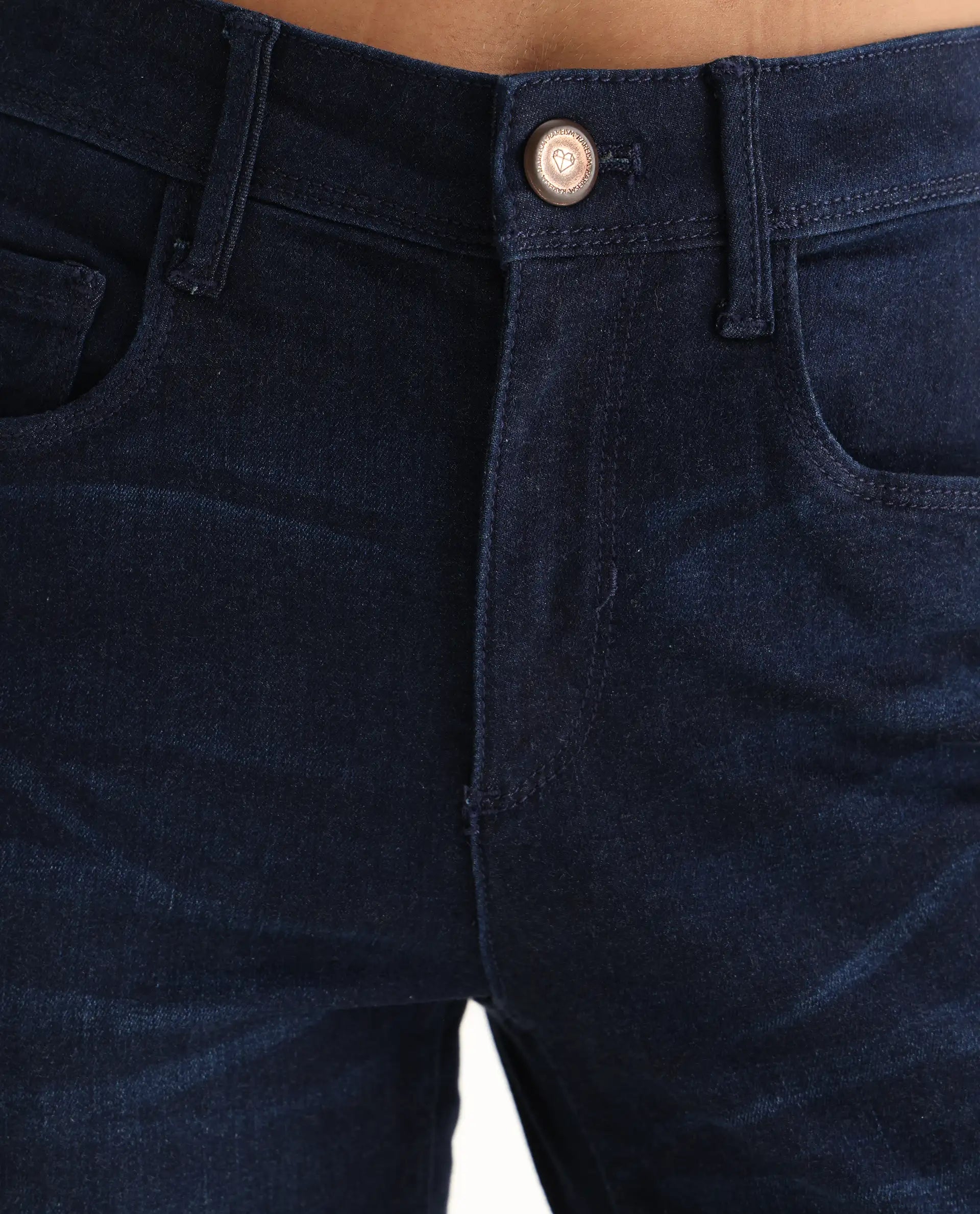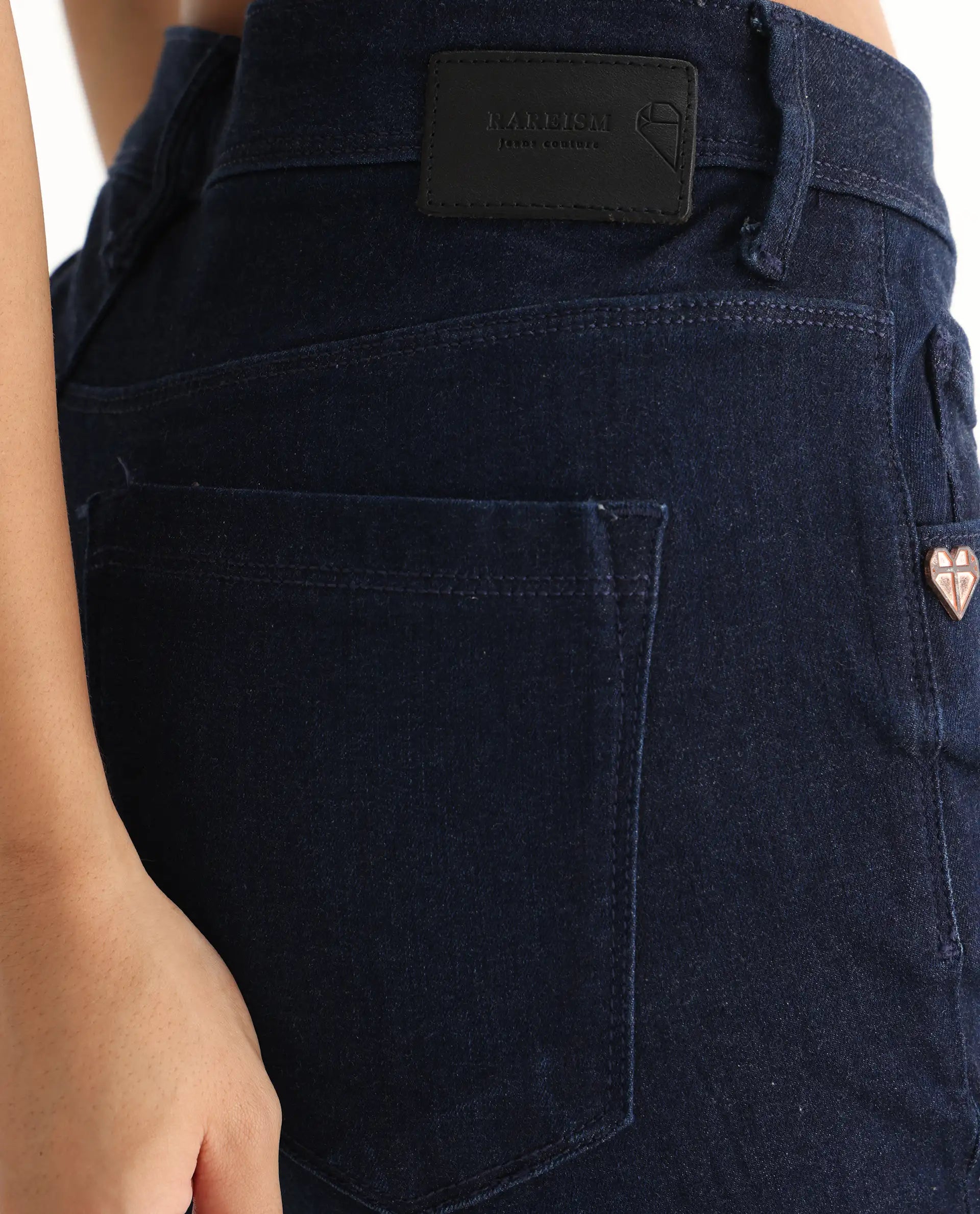 Rareism Womens Curvism Navy Jeans Cotton Elastic Fabric Regular Fit Button Closure High Rise Waist Rise Ankle Length