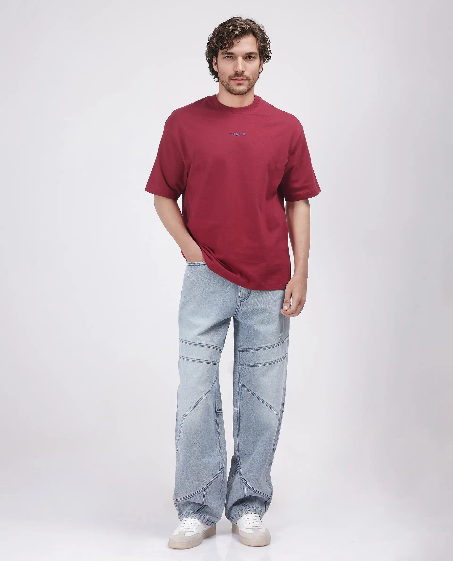 Rare Rabbit Men Exclaim Red Short Sleeve Crew Neck Oversized Fit Graphic Print T-Shirt
