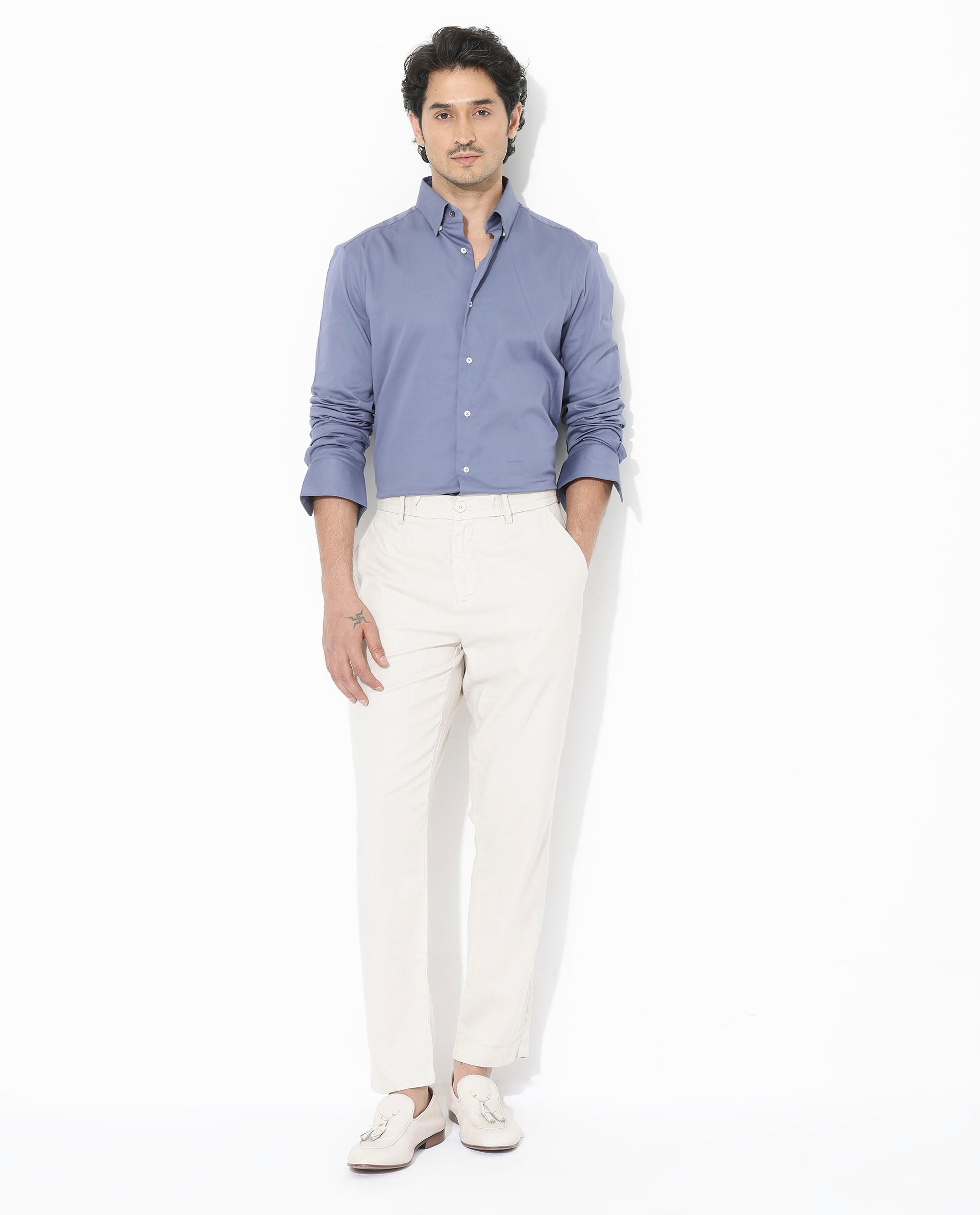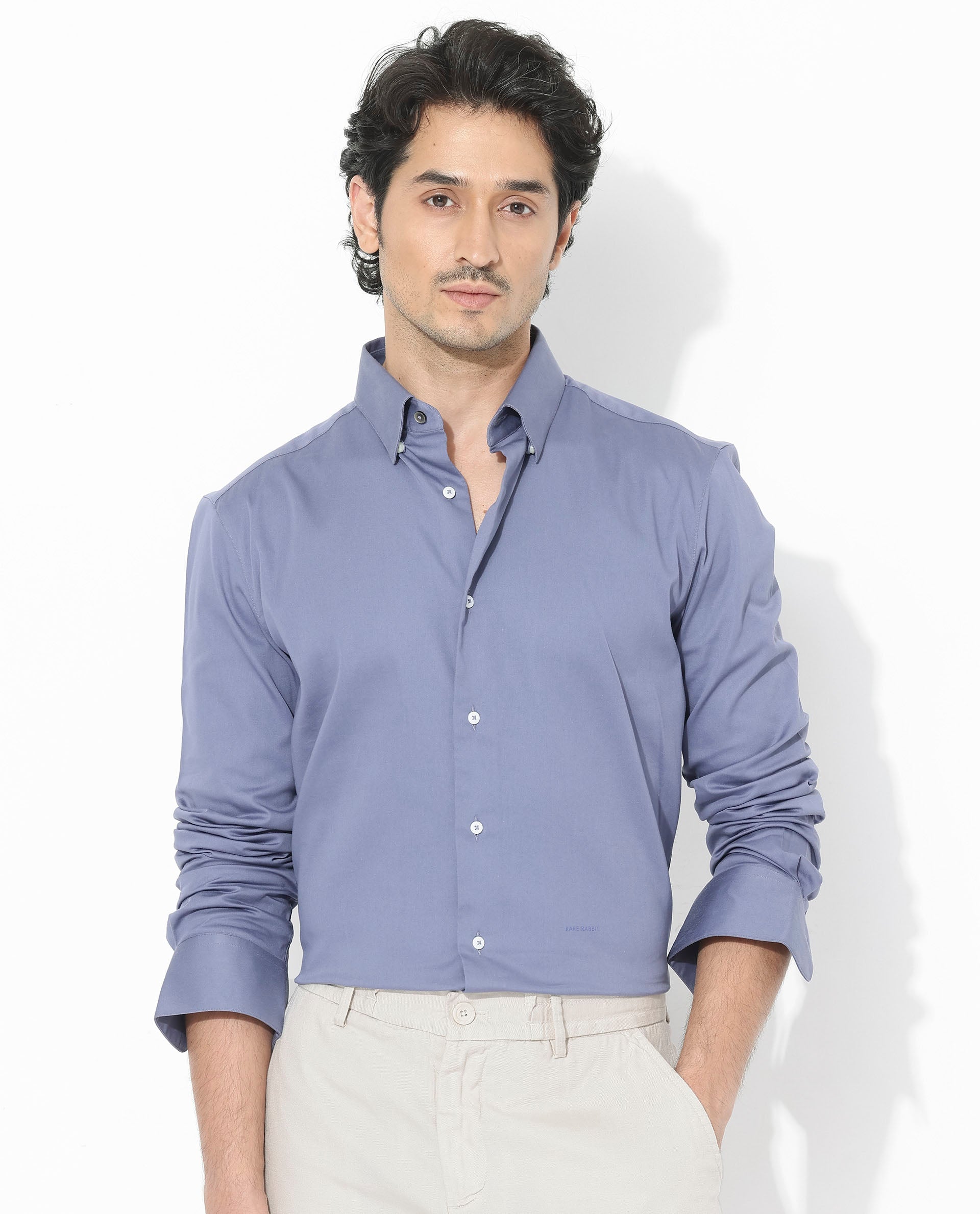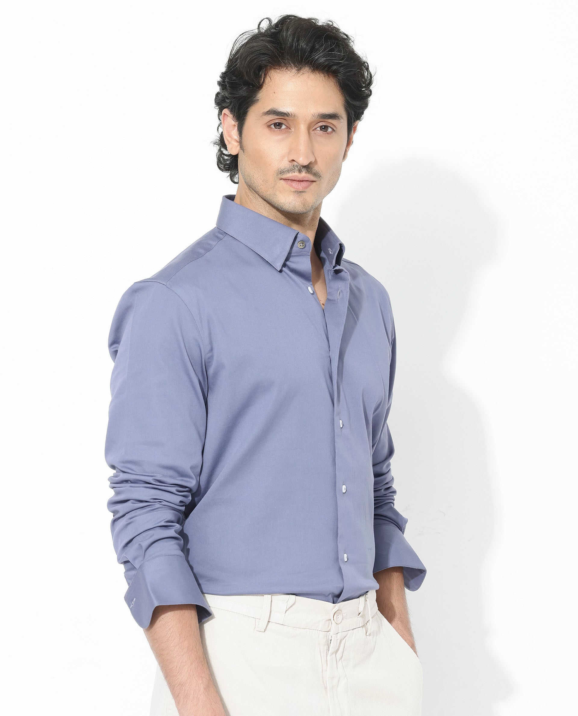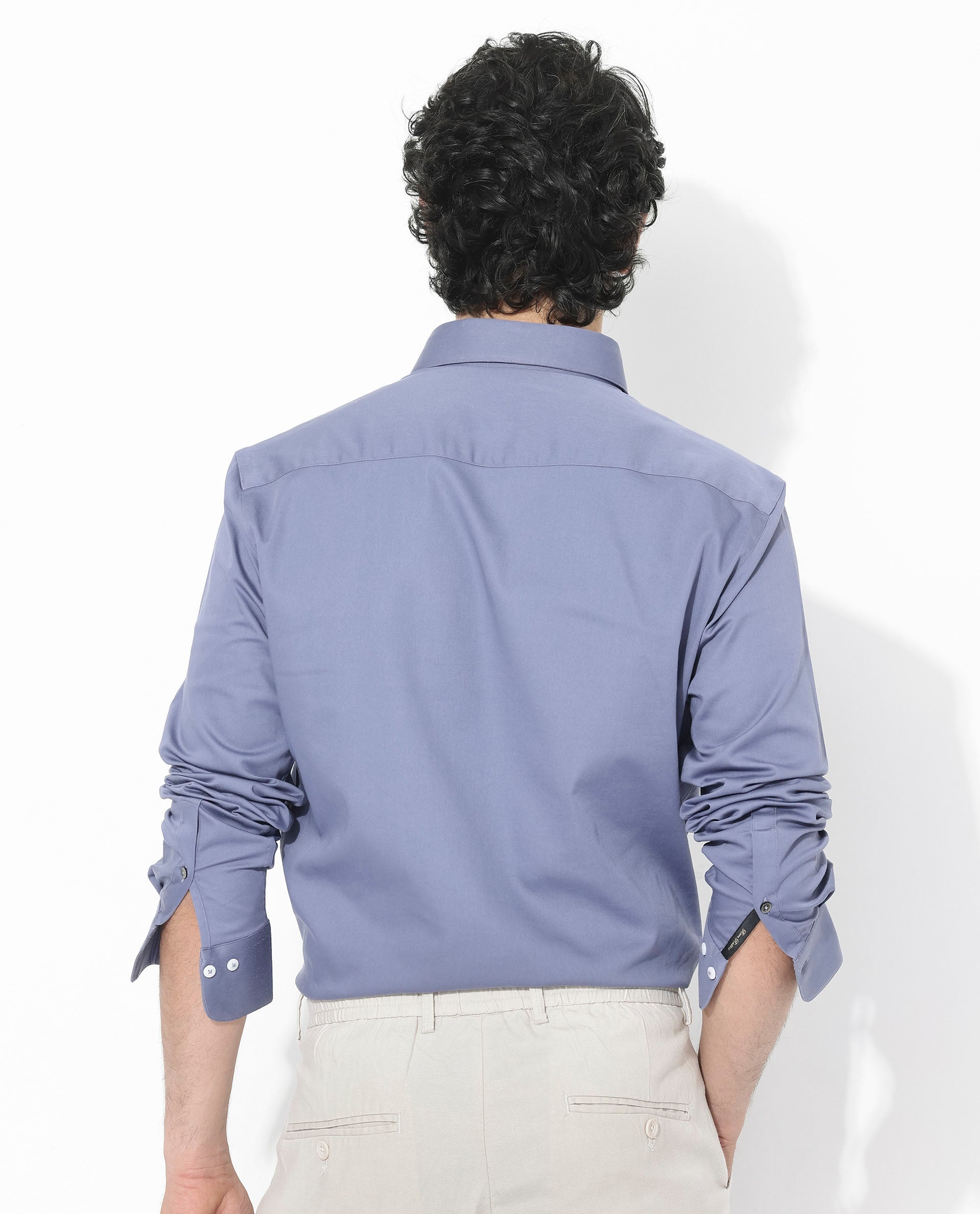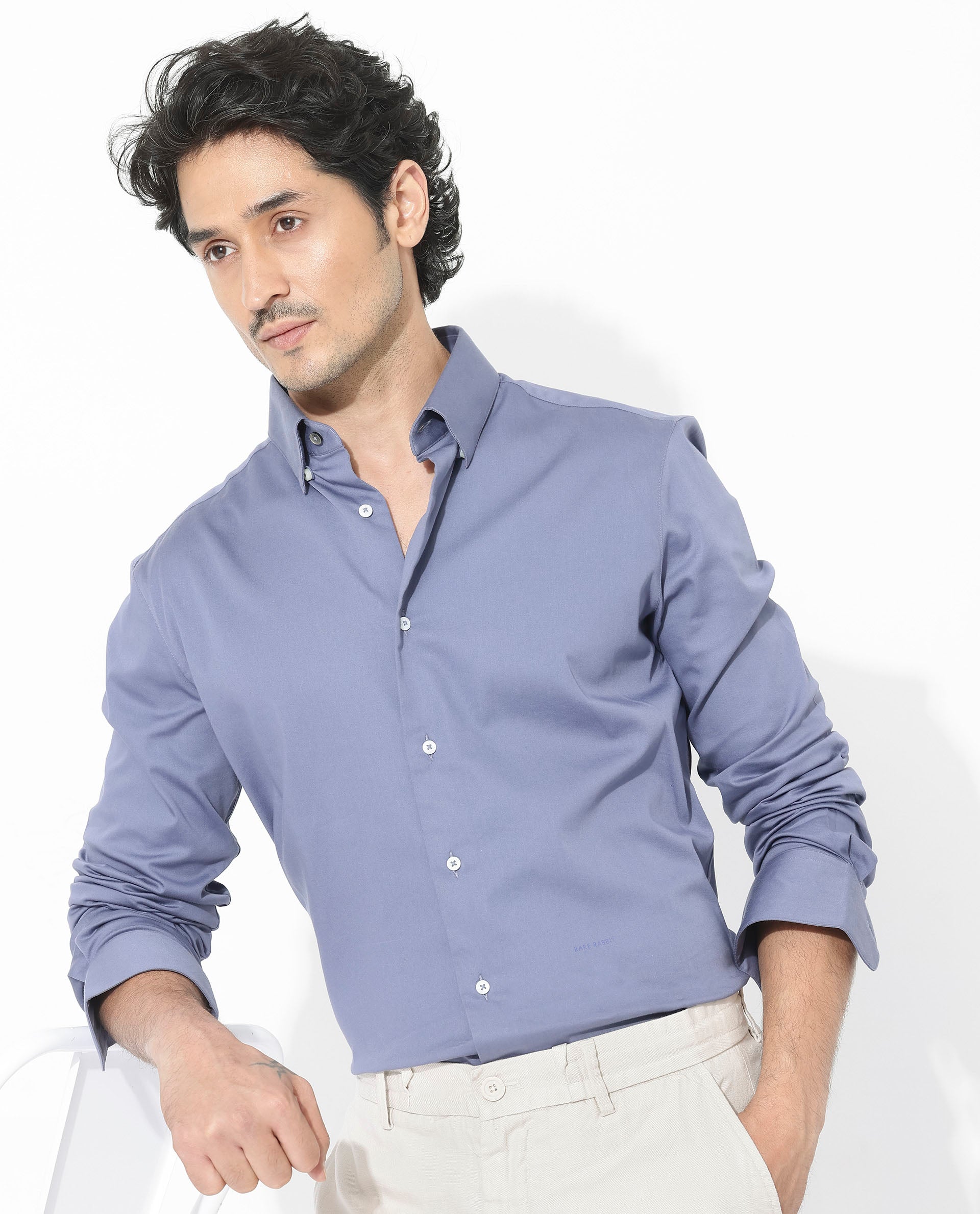 Rare Rabbit Men's Holand Dusky Purple Satin Fabric Full Sleeves Solid Shirt