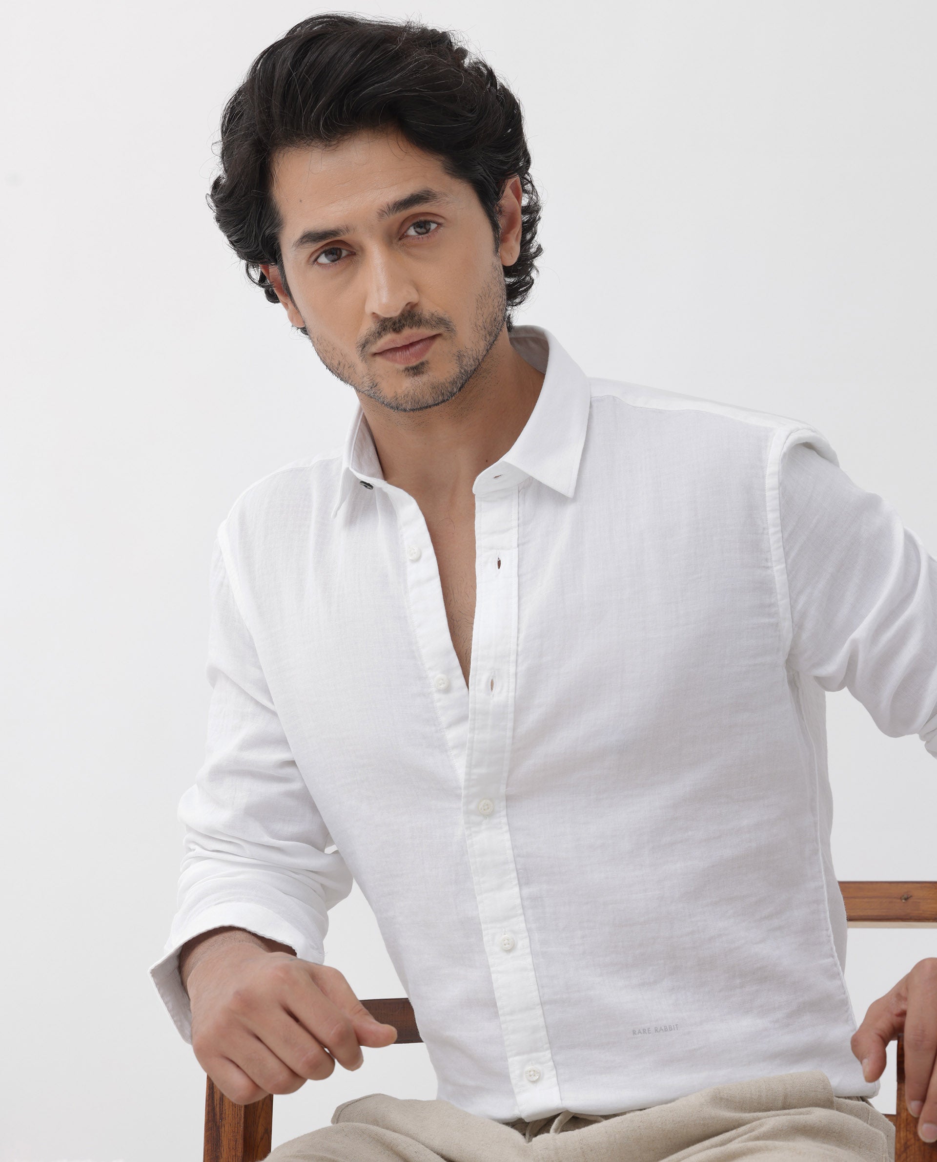 Rare Rabbit Mens Layerr Dusky White Cotton Fabric Full Sleeves Solid Shirt
