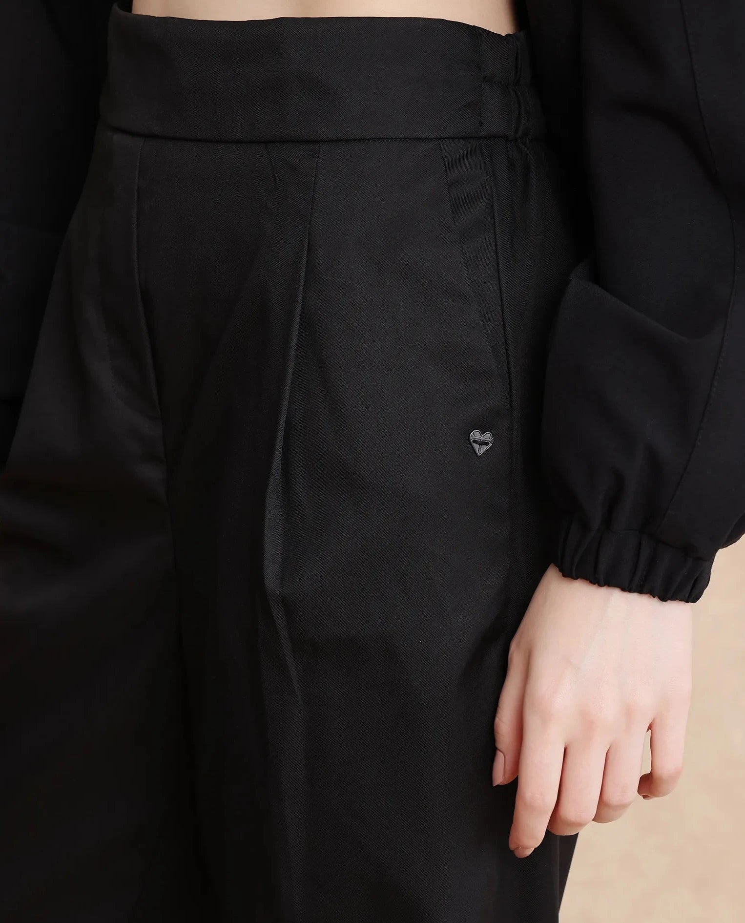 Rareism Women Leezo Black Tie Up Closure Straight Fit Ankle Length Plain Trouser
