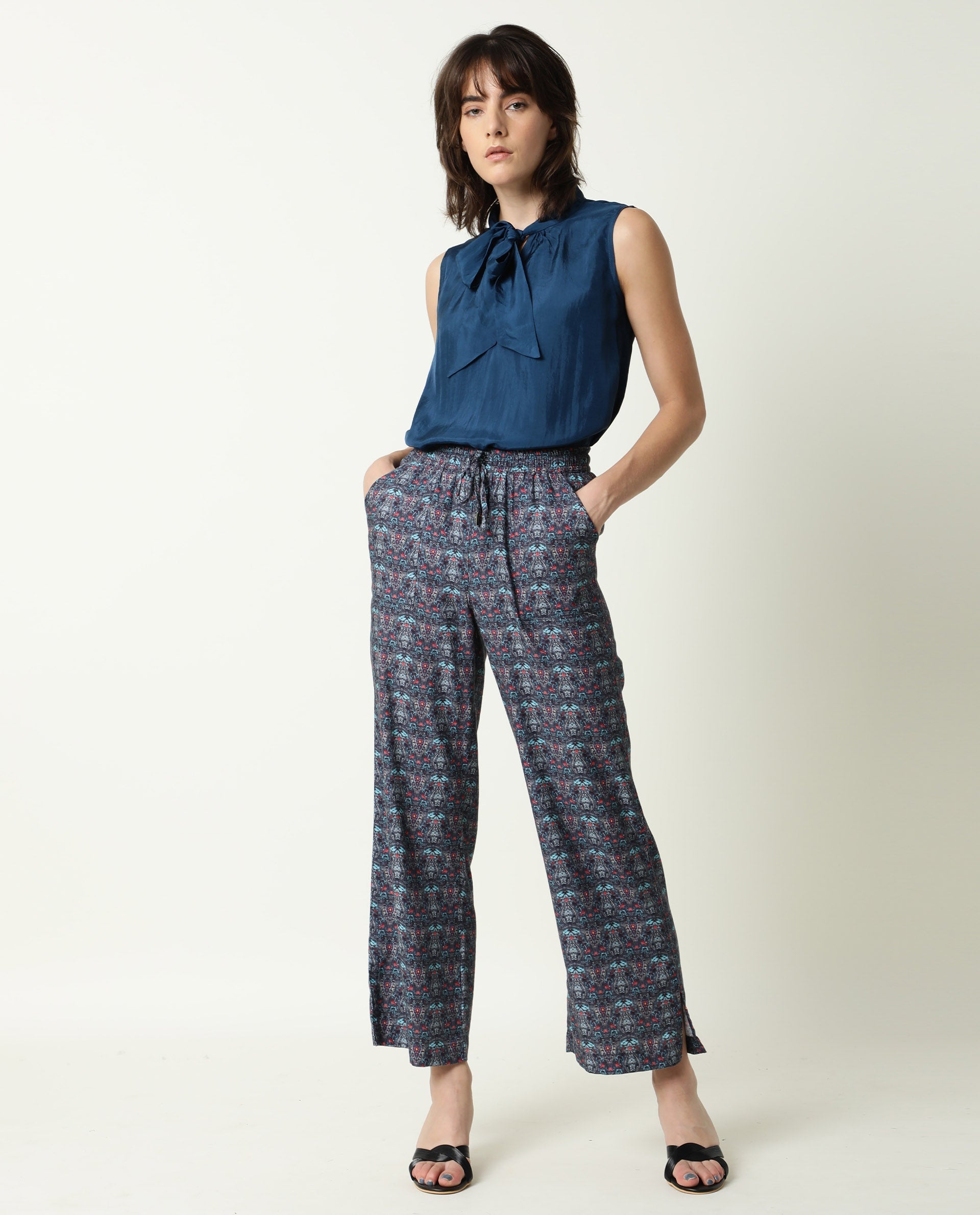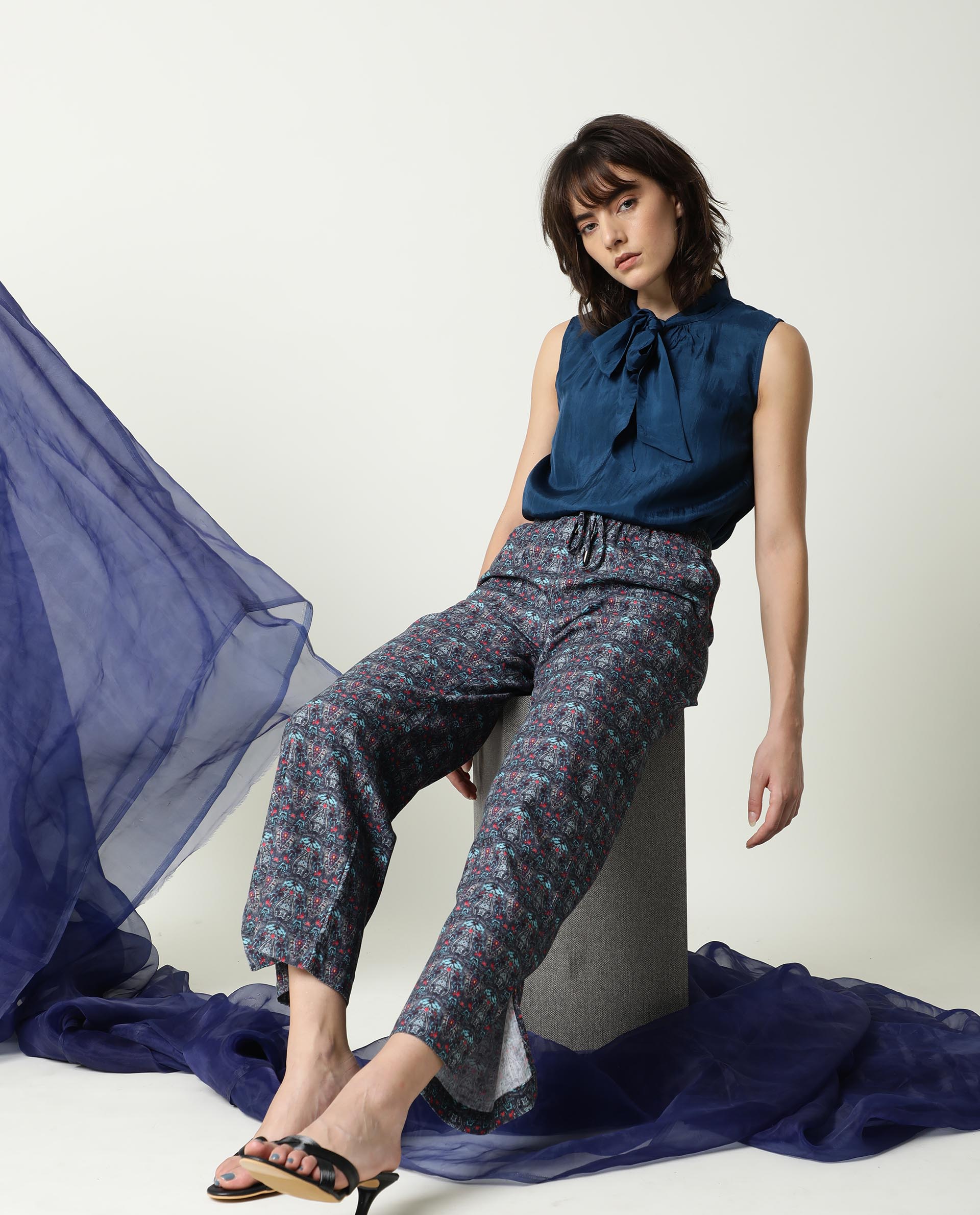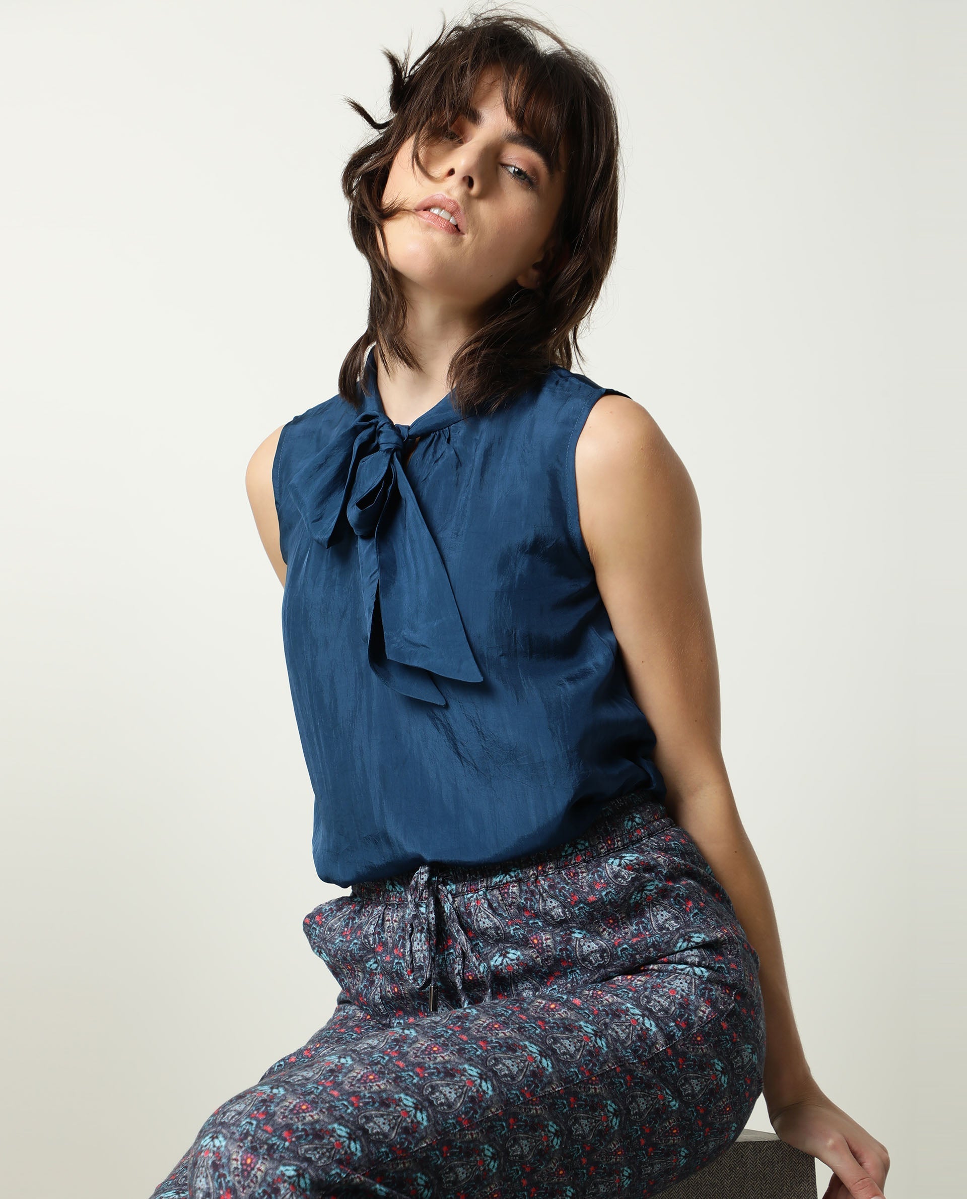 Rareism Womens Mac Petrol Top Viscose Fabric Sleeveless Tie Up