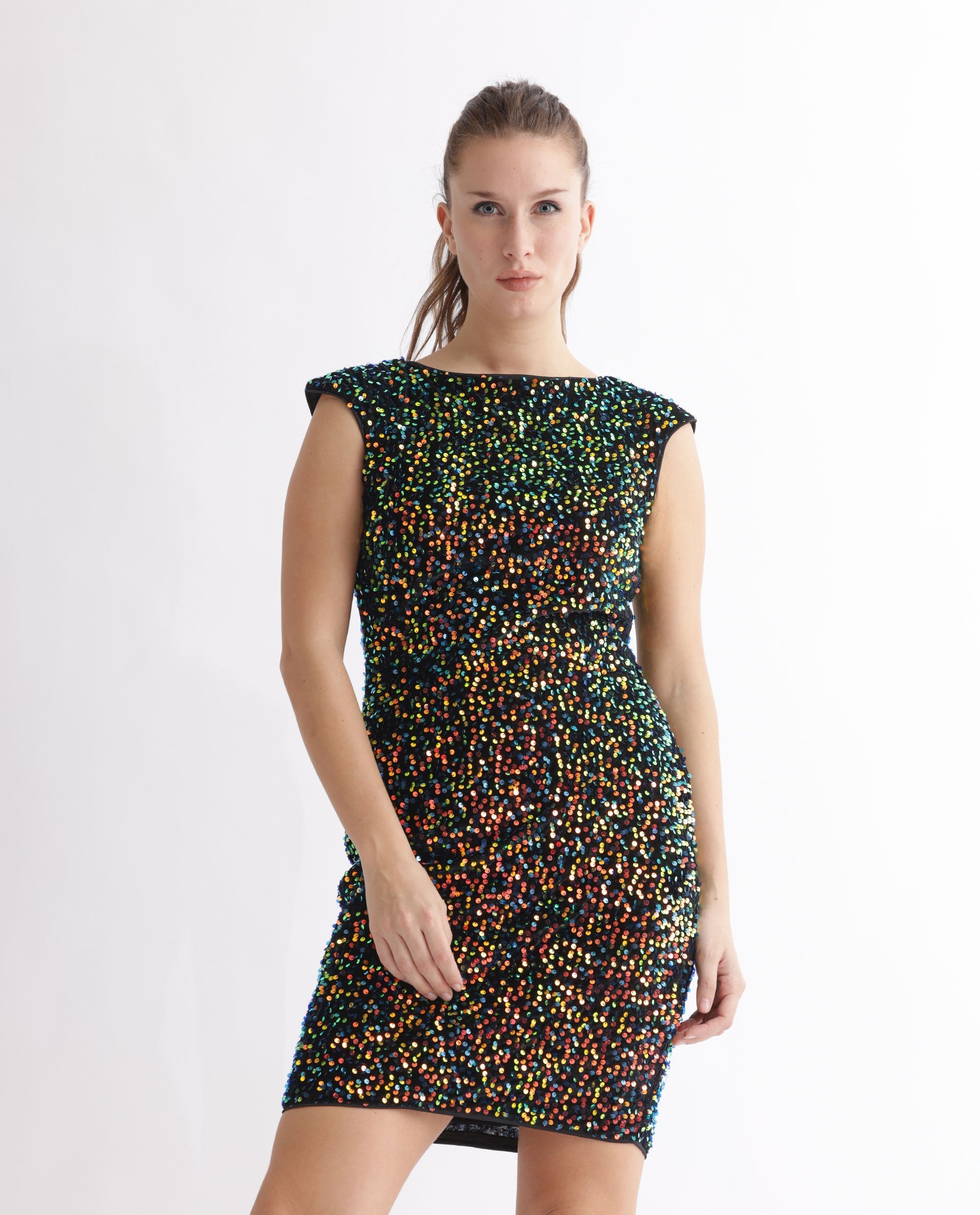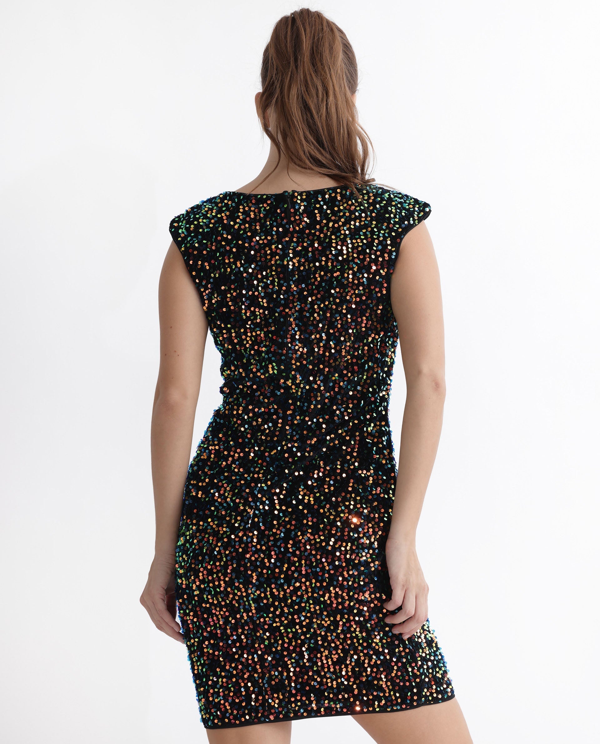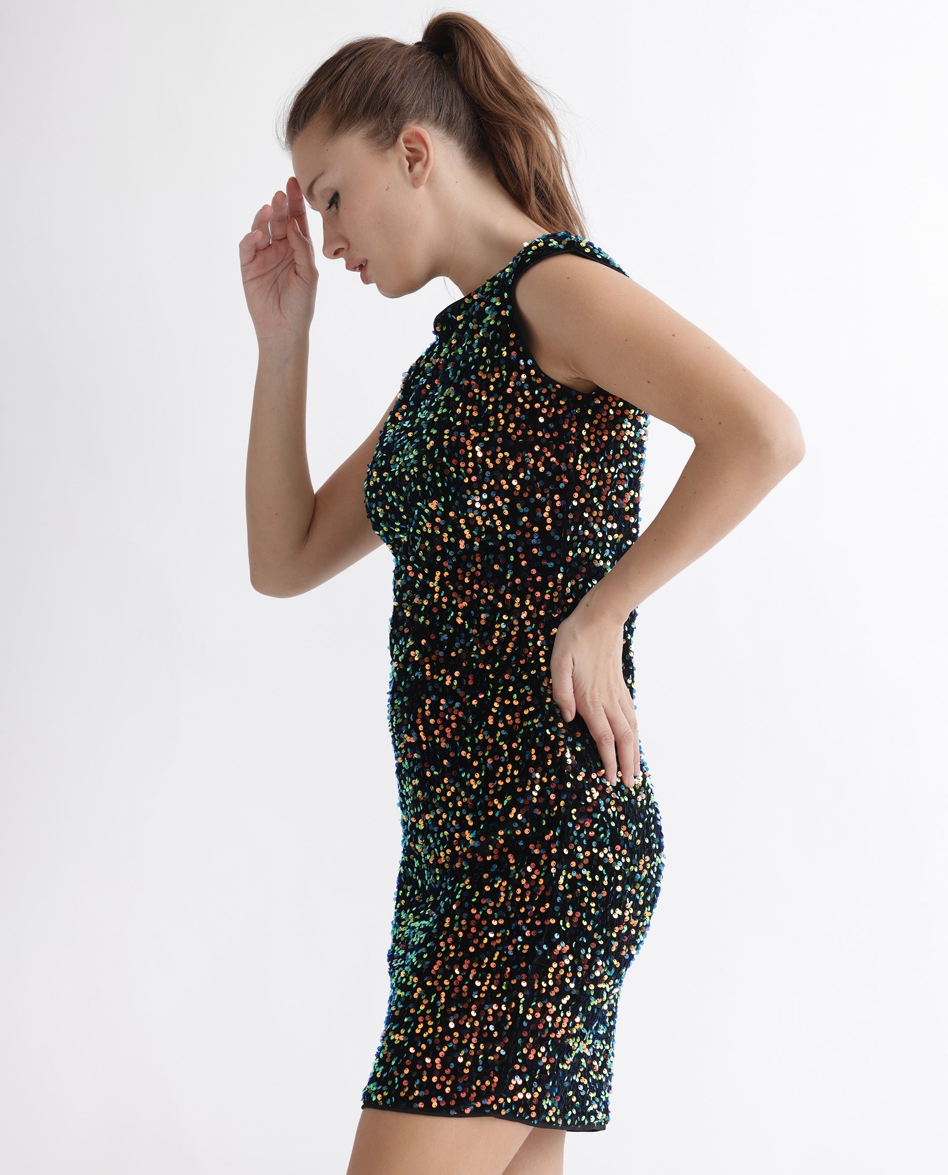 1. Shine bright in our Sequinned Party Dress, adorned with velvet sequins for a touch of luxury and glamour.