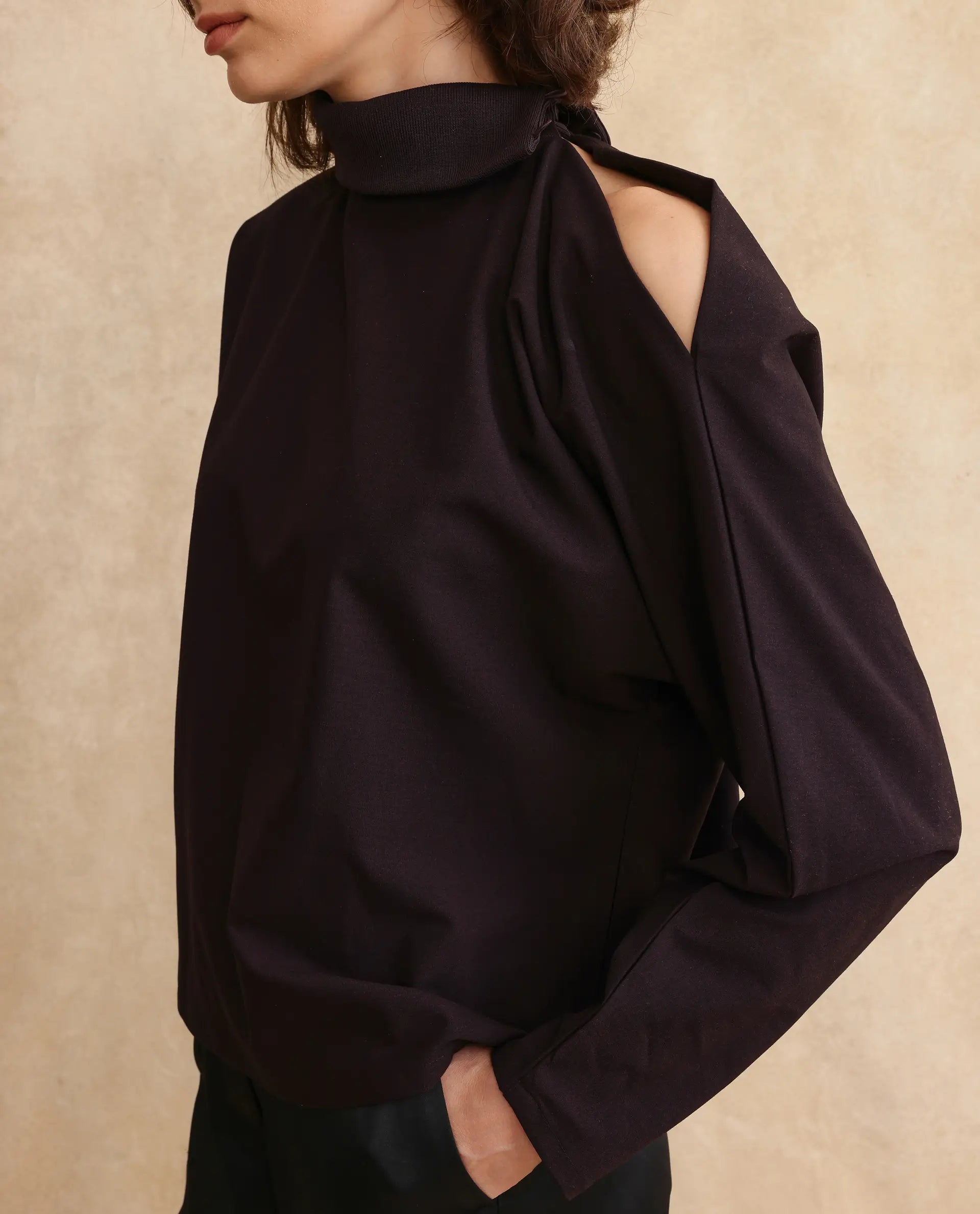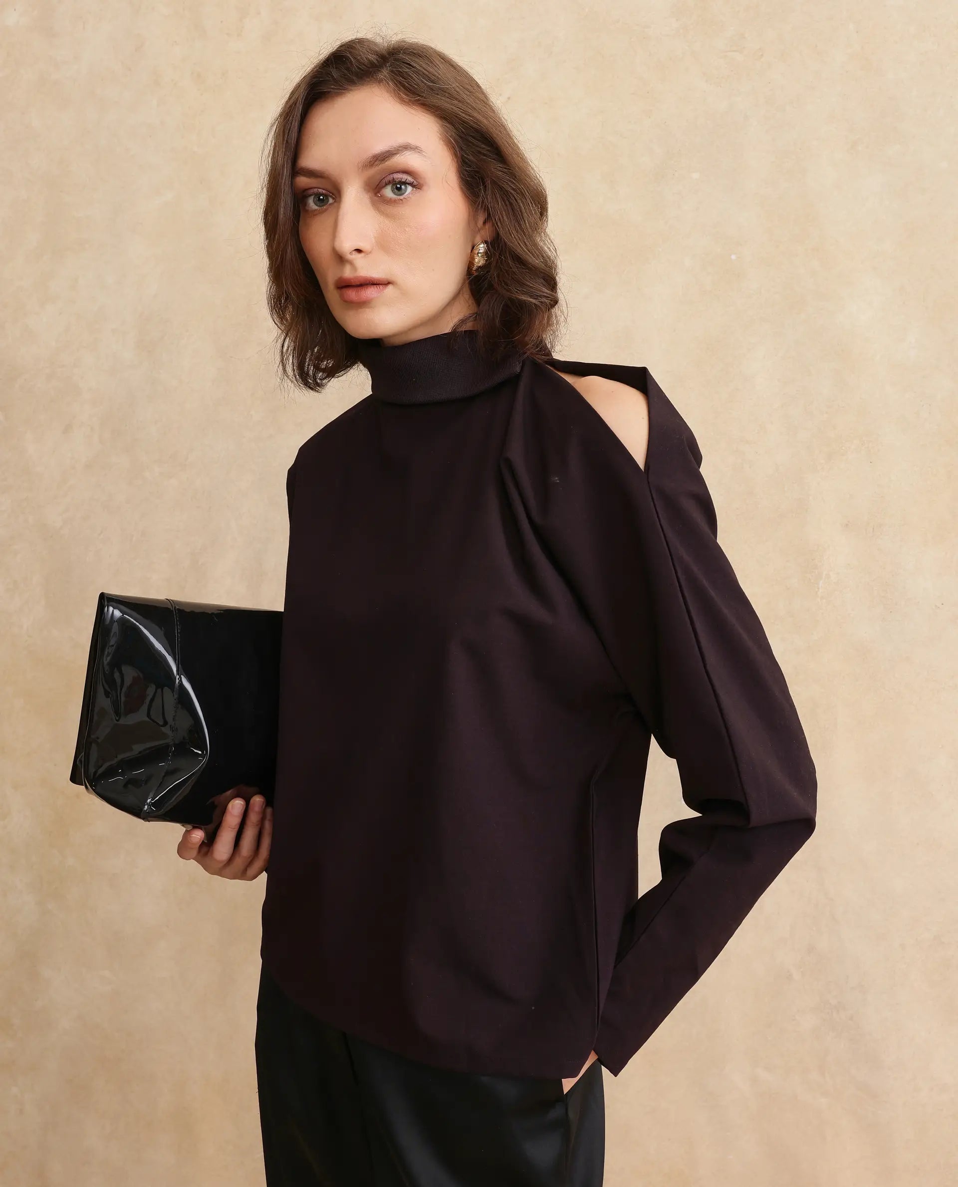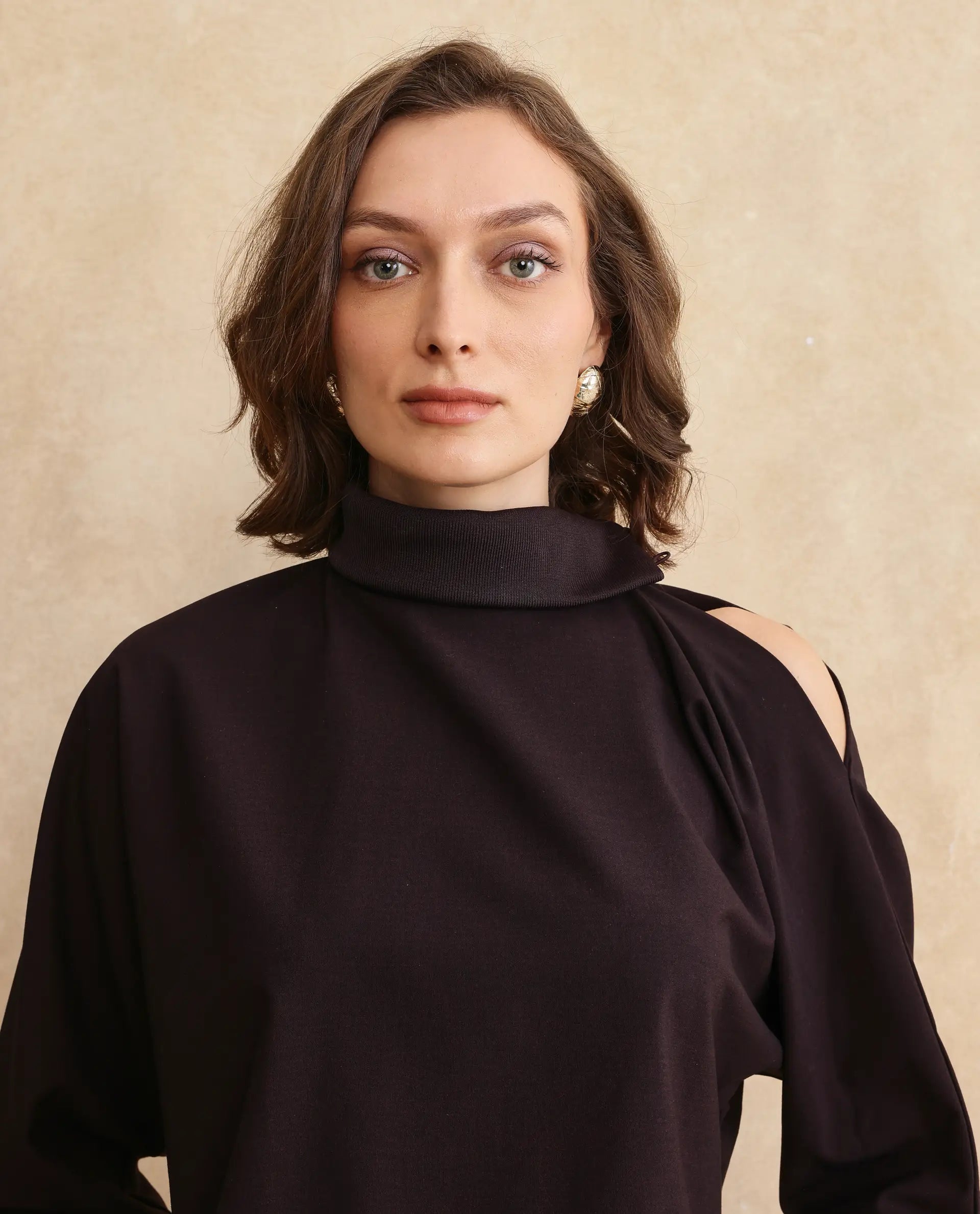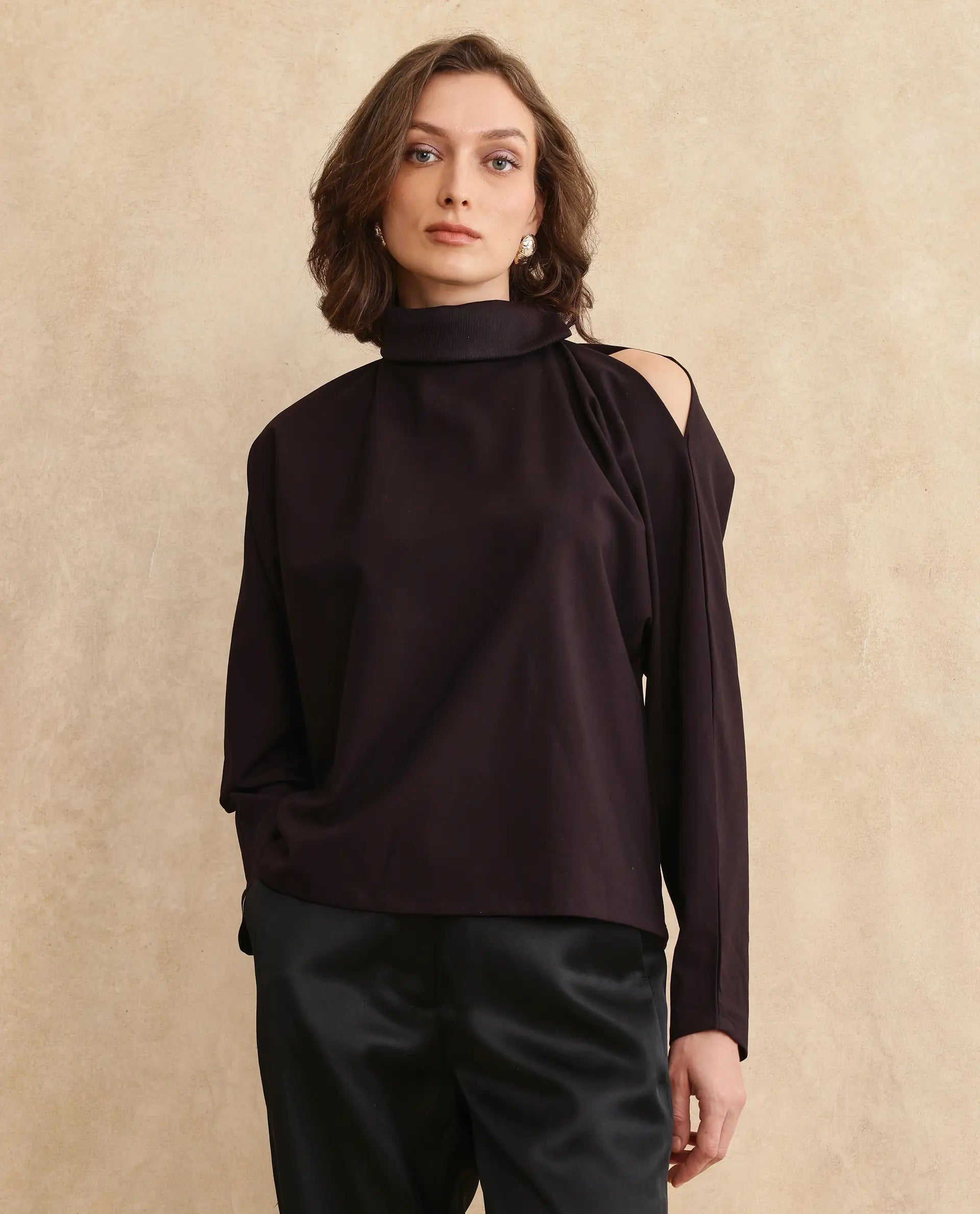 ONE SHOULDER TOP WITH RIBBED HIGH NECK