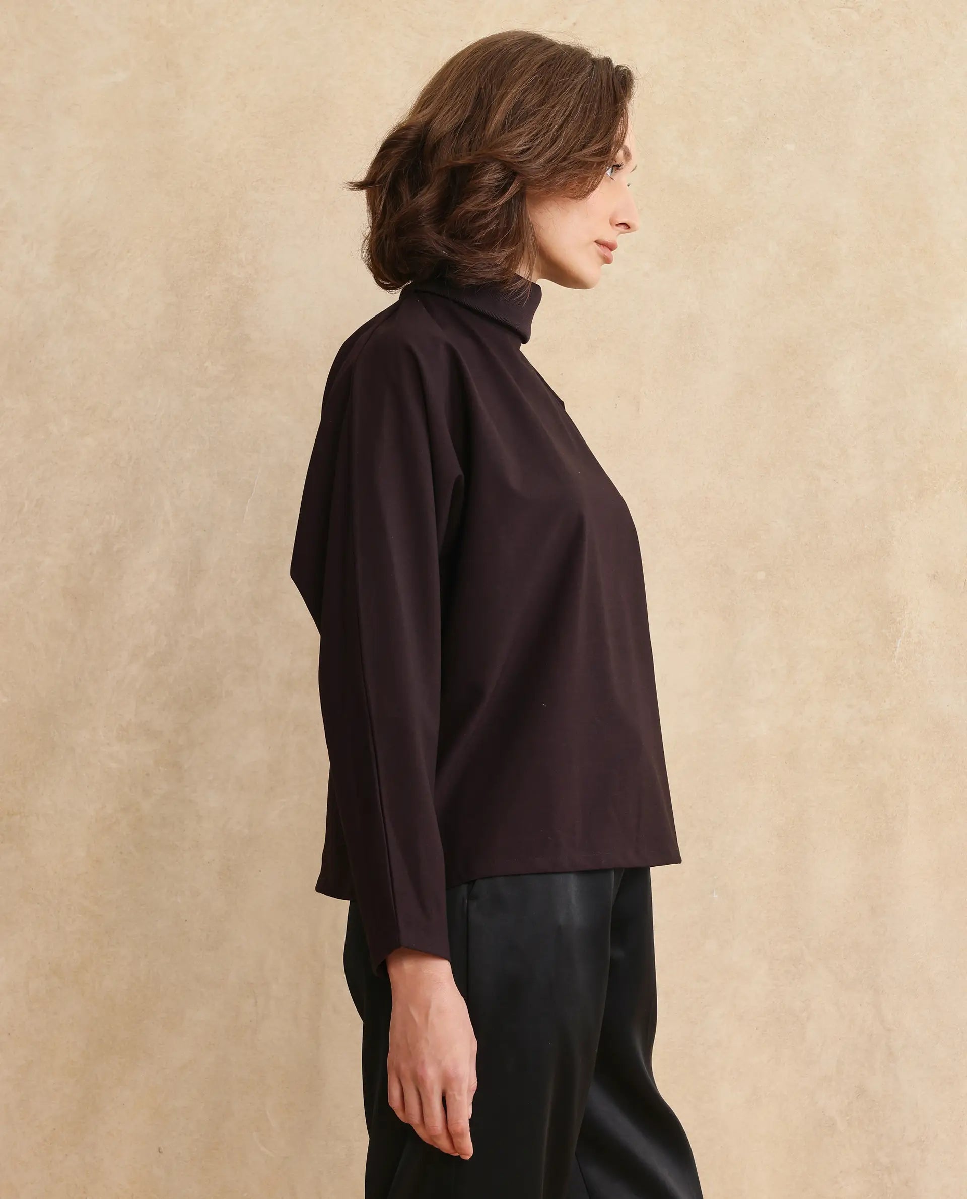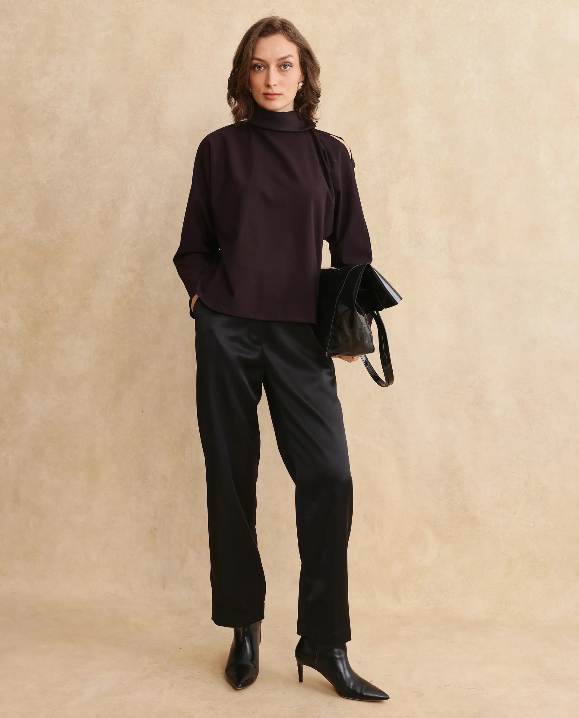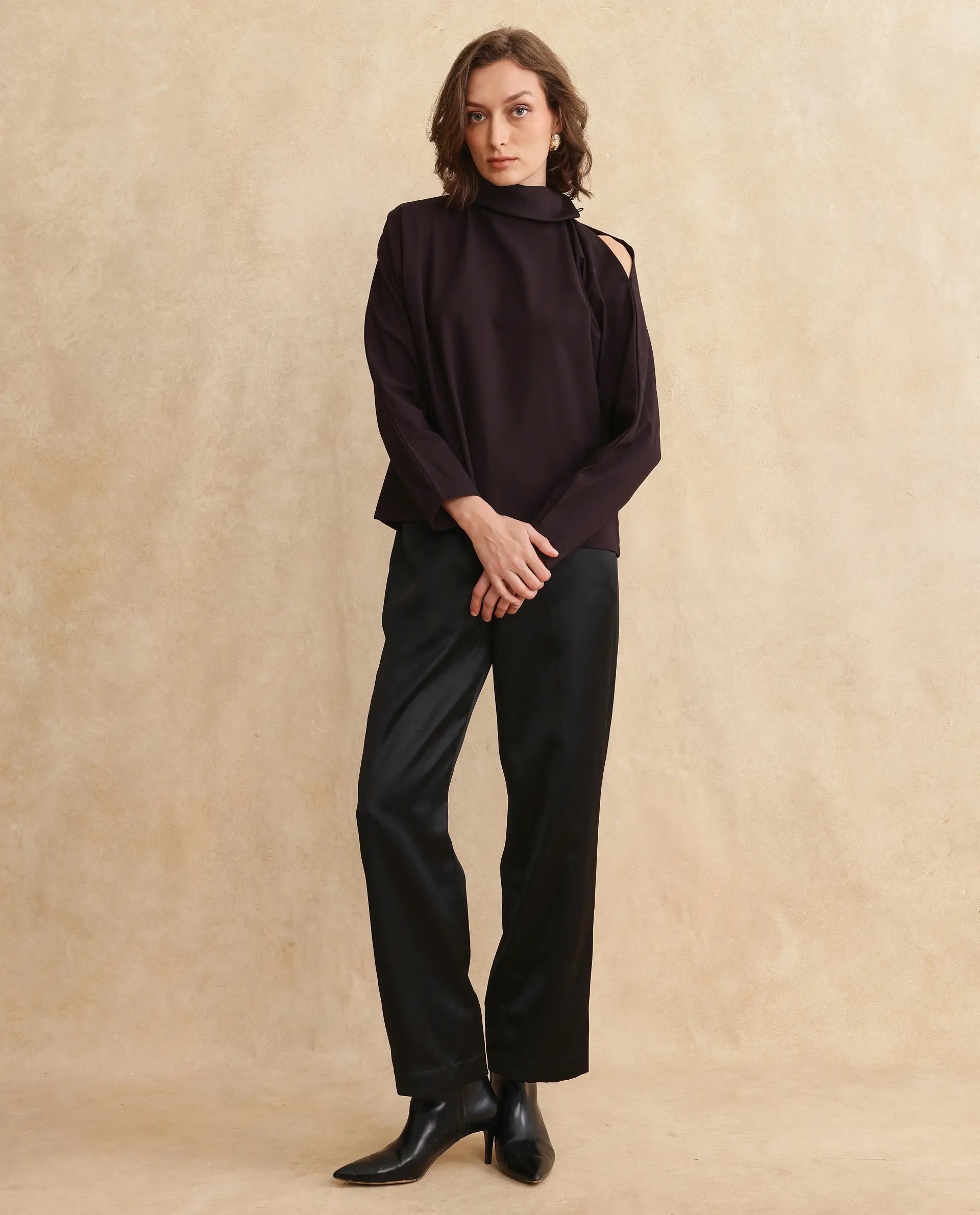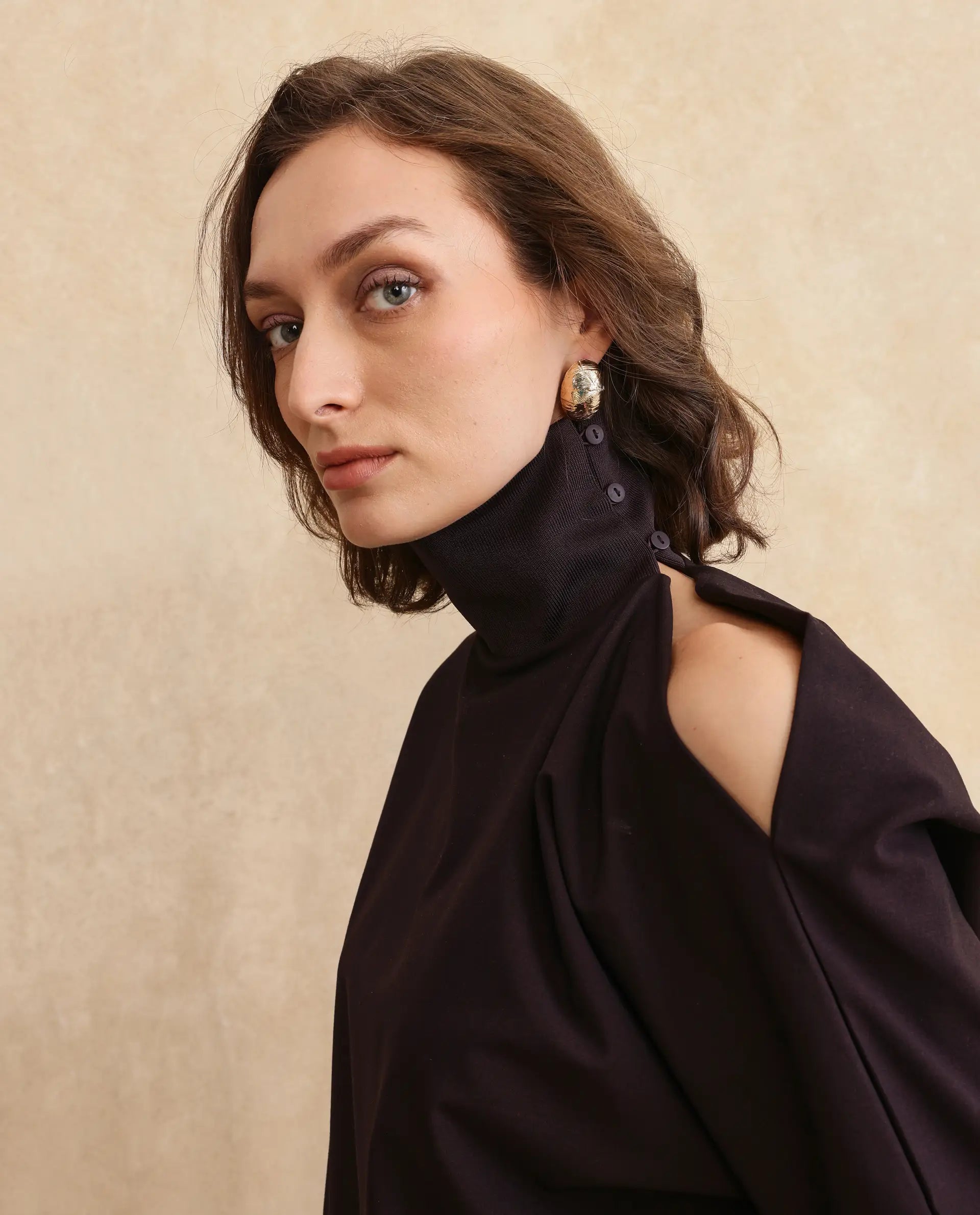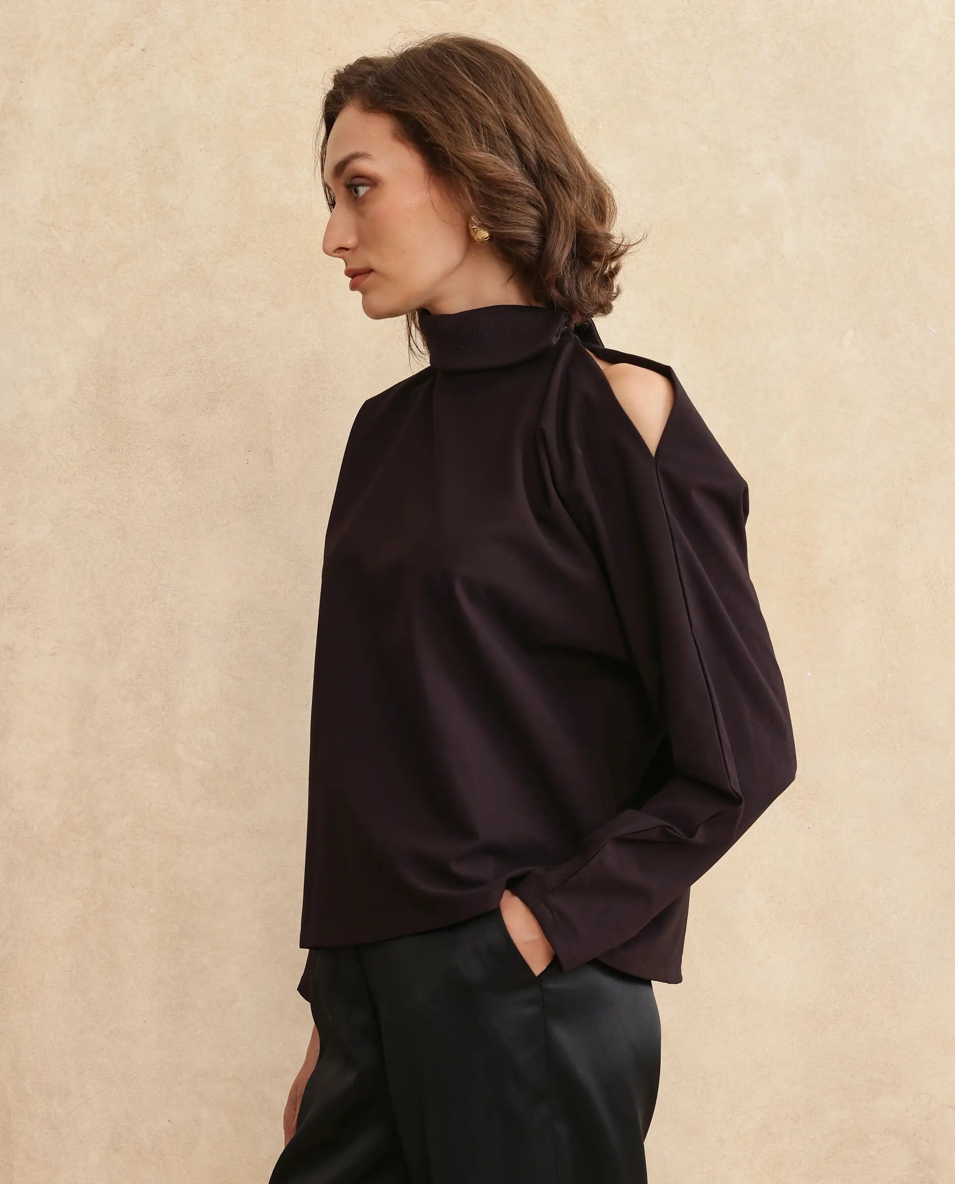 ONE SHOULDER TOP WITH RIBBED HIGH NECK