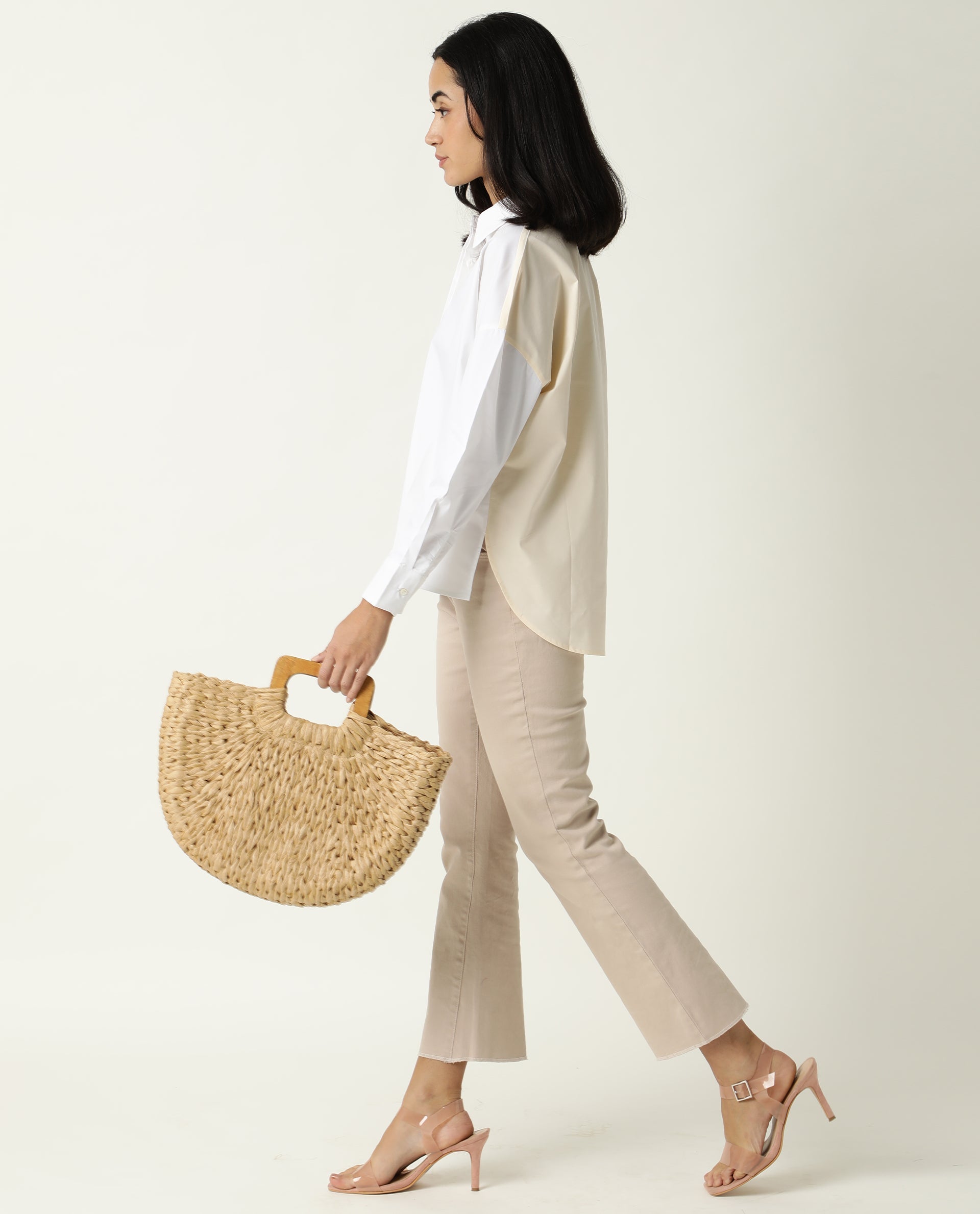COLOUR BLOCK BOXY COTTON SHIRT