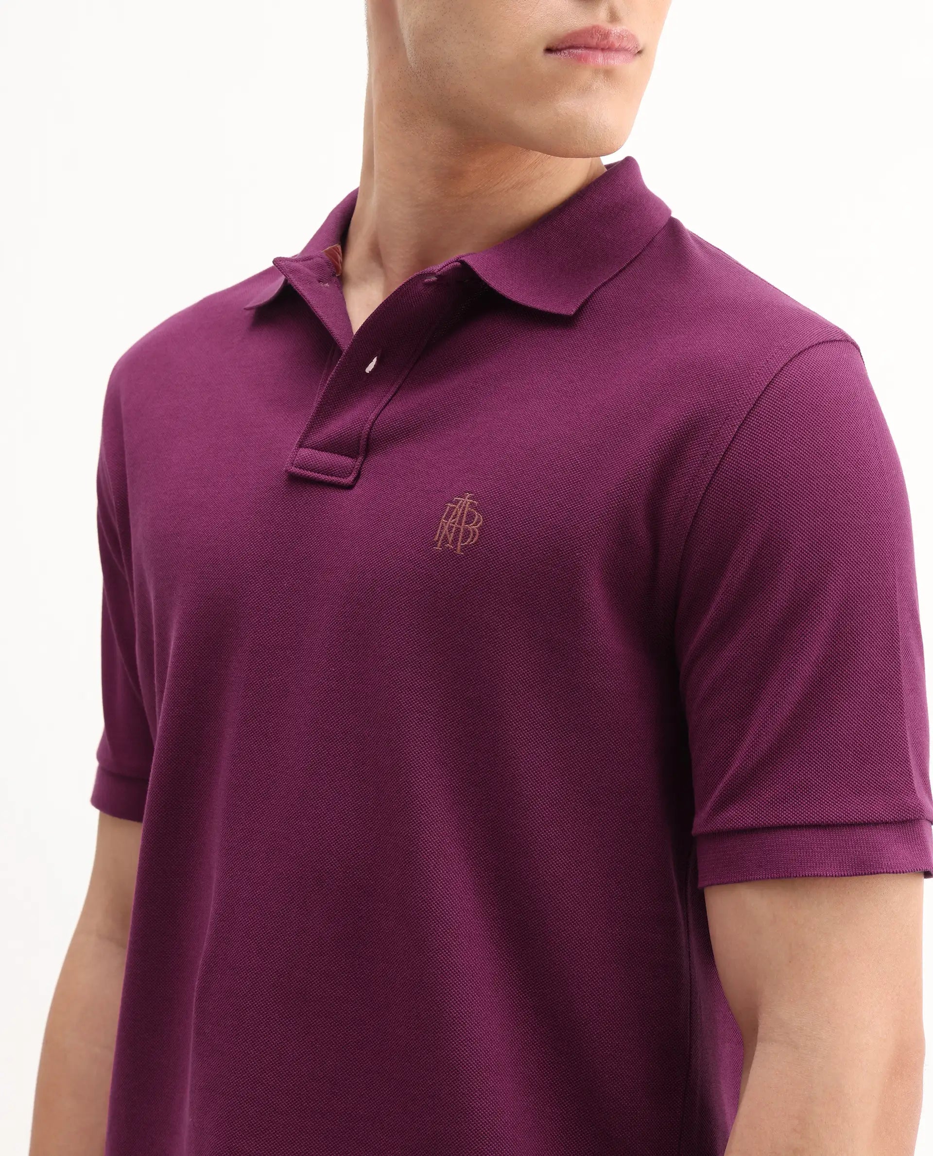 Rare Rabbit Men Pare-1 Dark Purple Cotton Fabric Short Sleeve Collared Neck Regular Fit Printed Polo