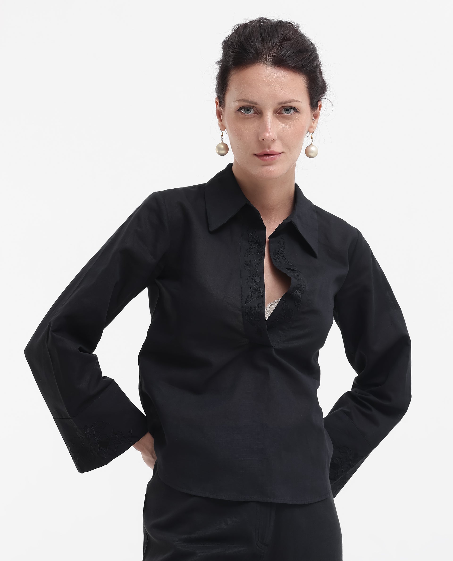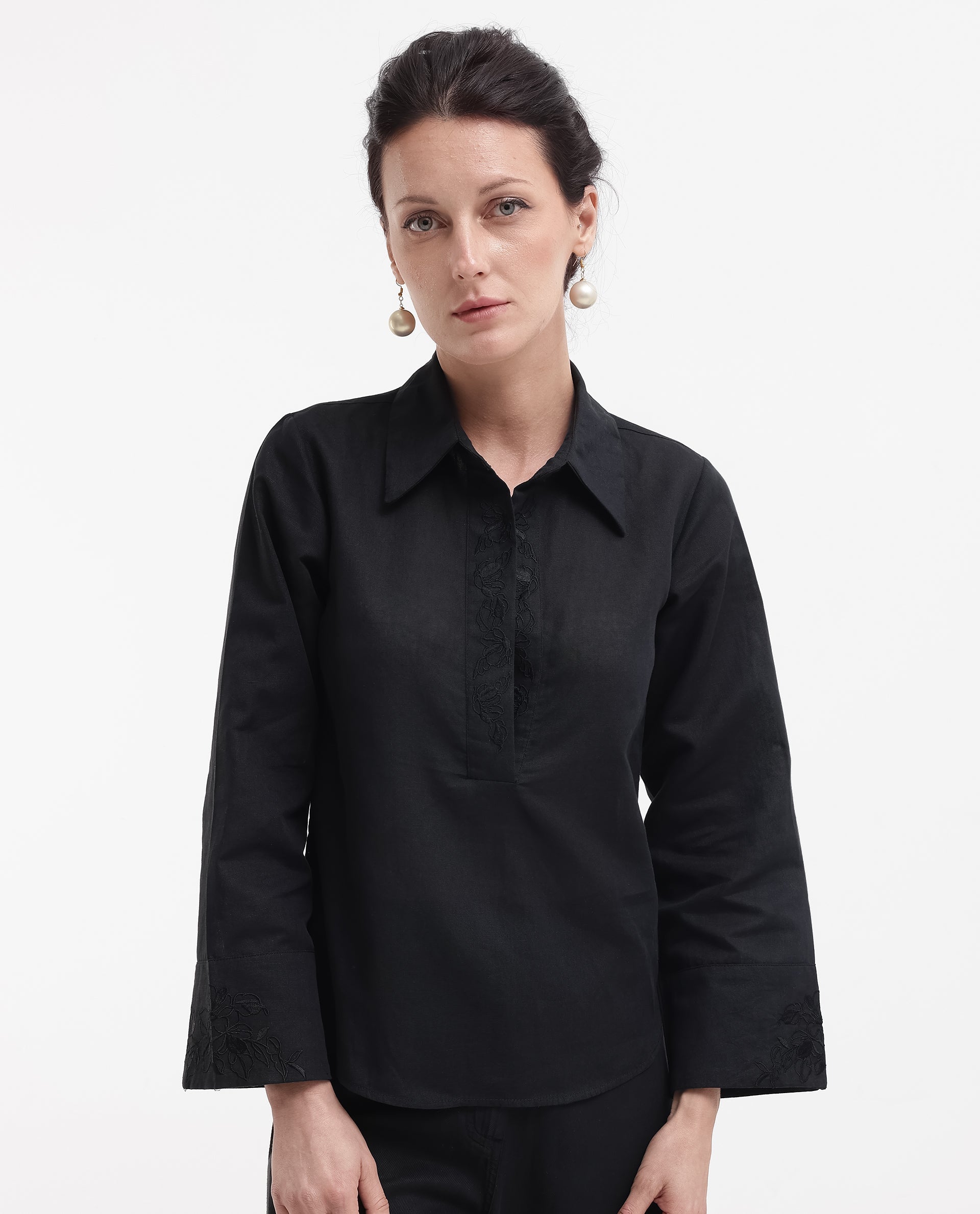 3. Elegant Embroidery Detail: Embellished with intricate embroidery detail, enhancing the overall charm and sophistication of the top.