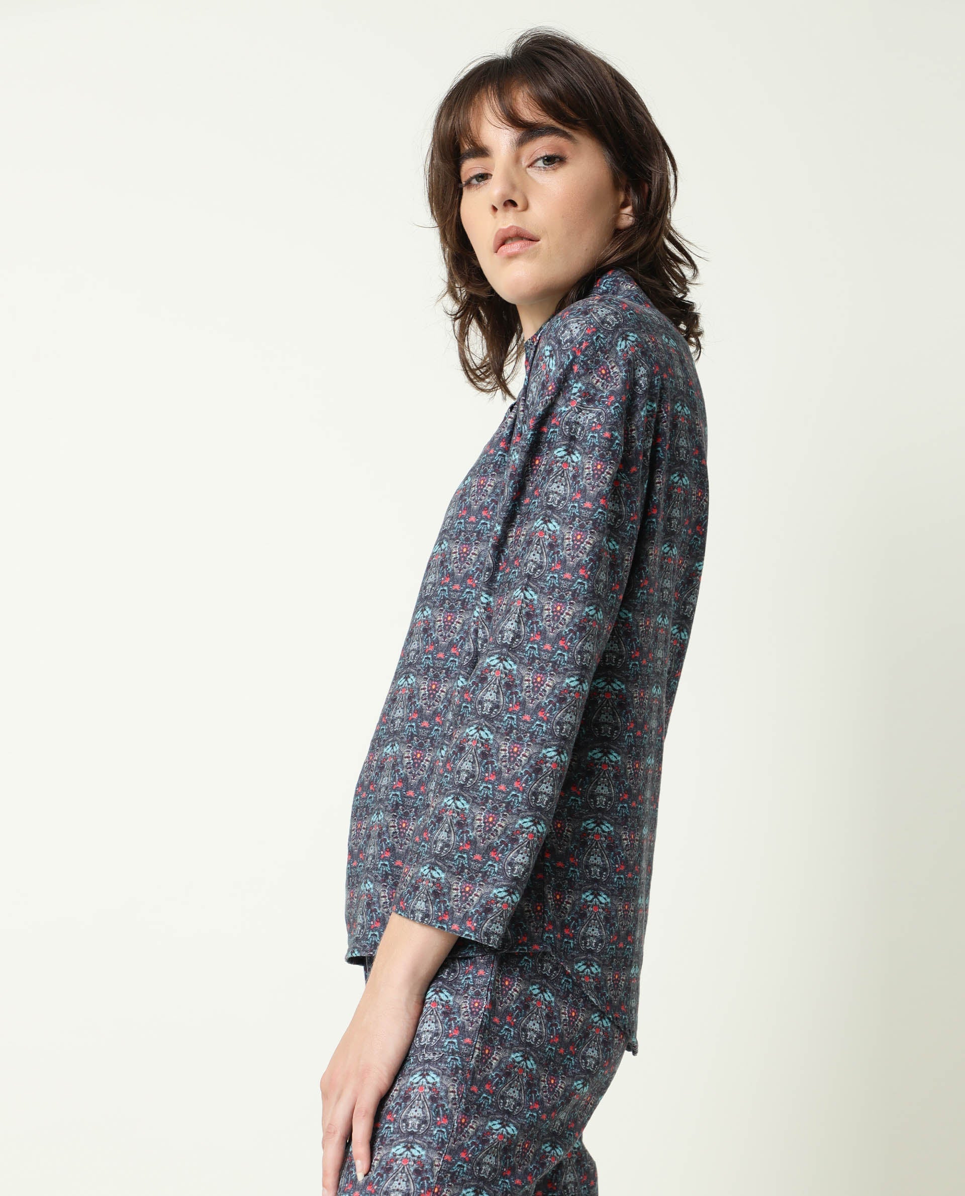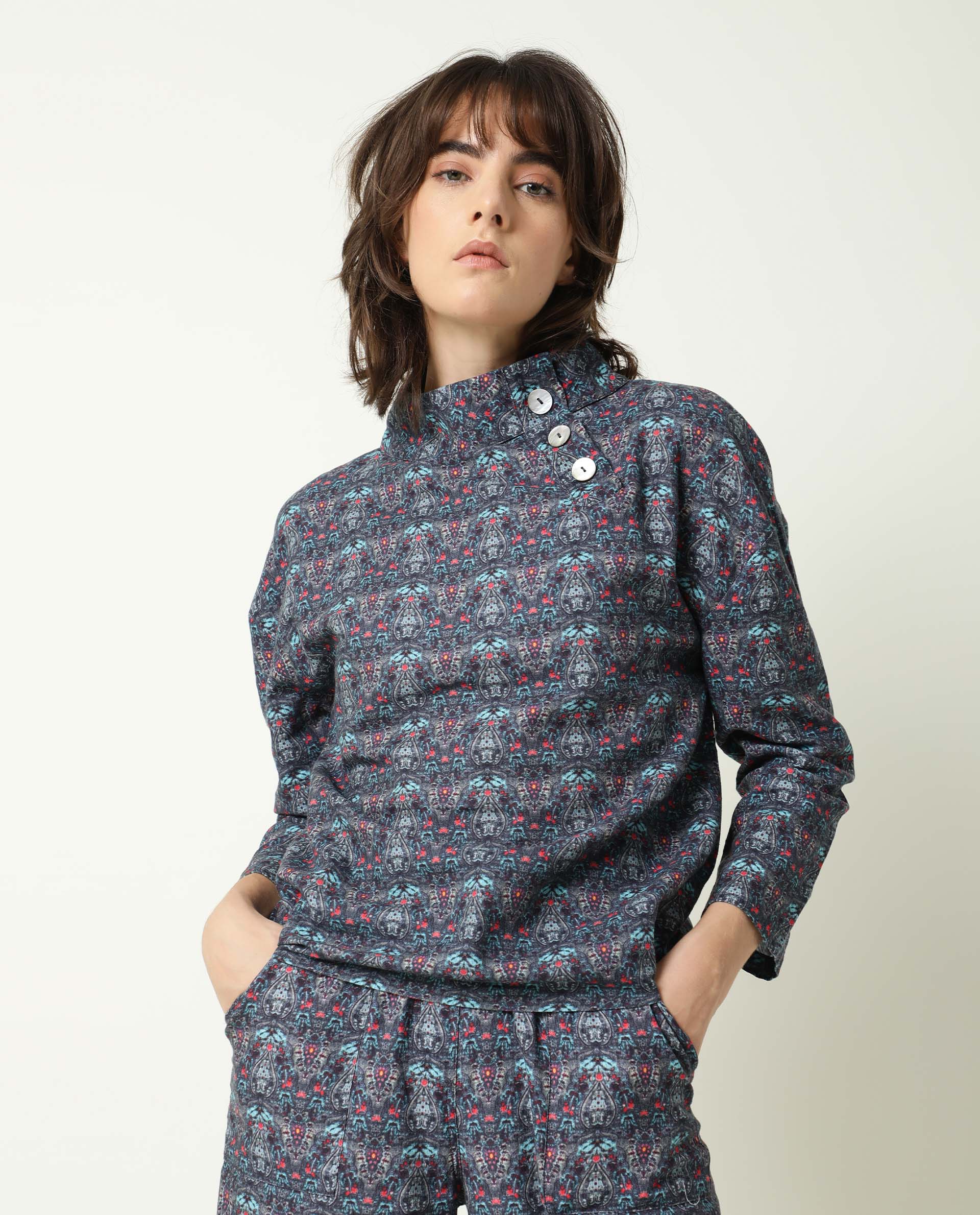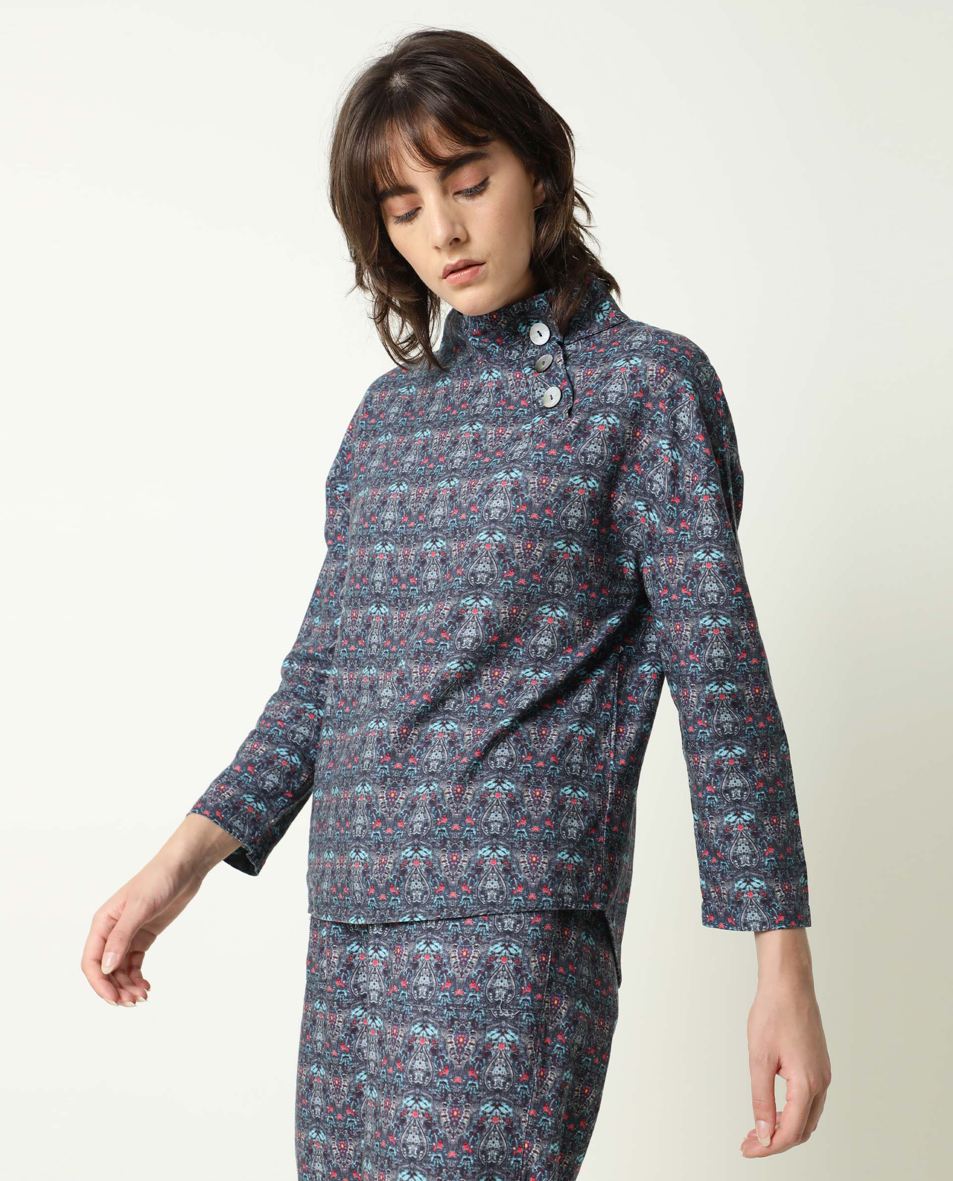 MOGHUL PRINT SIDE PLACKET LINEN TOP