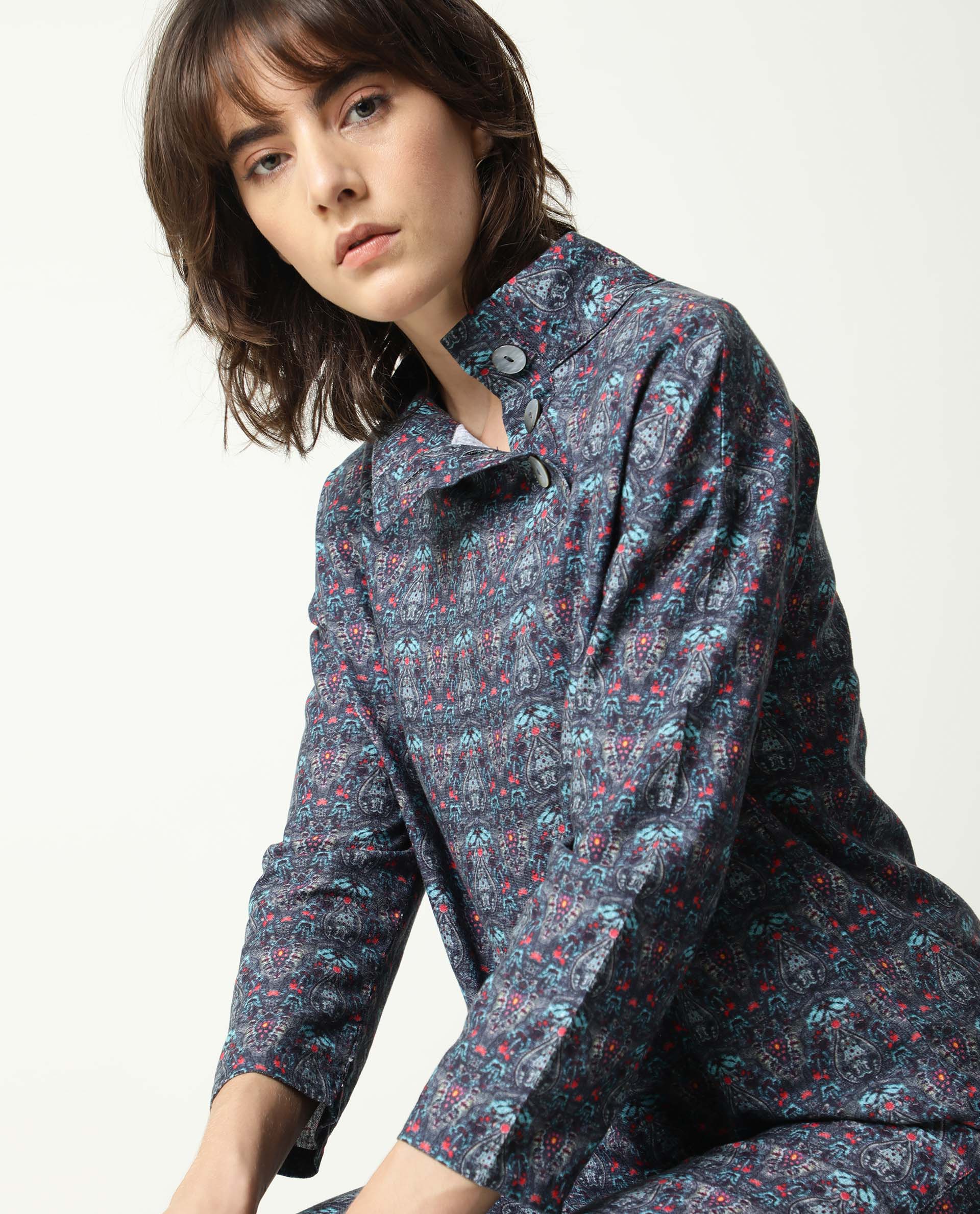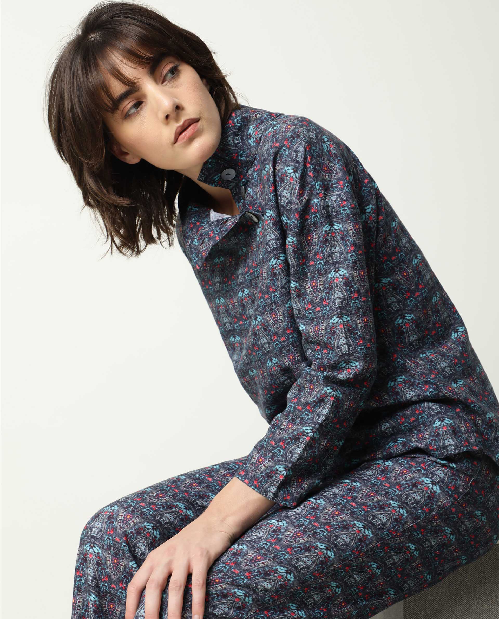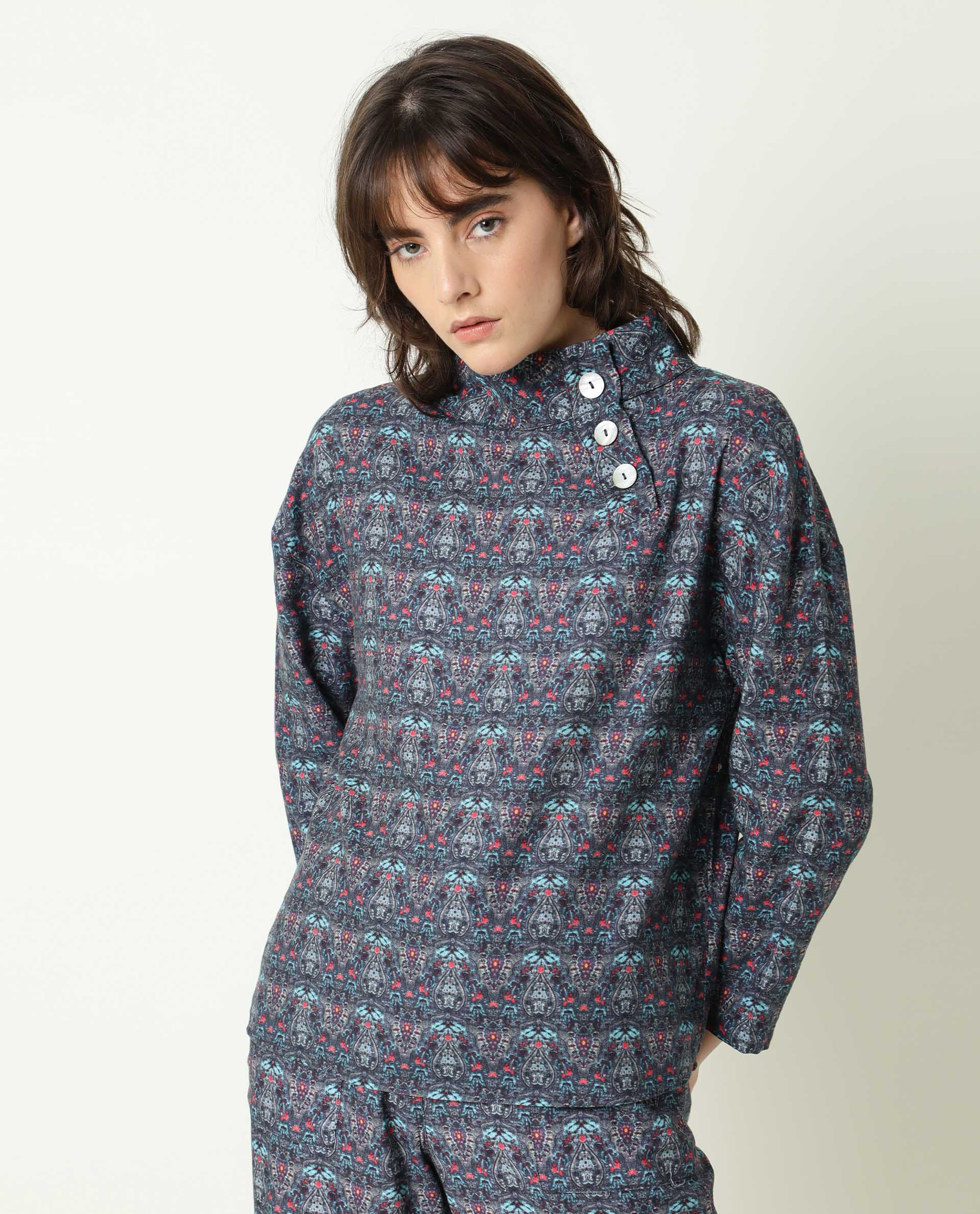 MOGHUL PRINT SIDE PLACKET LINEN TOP
