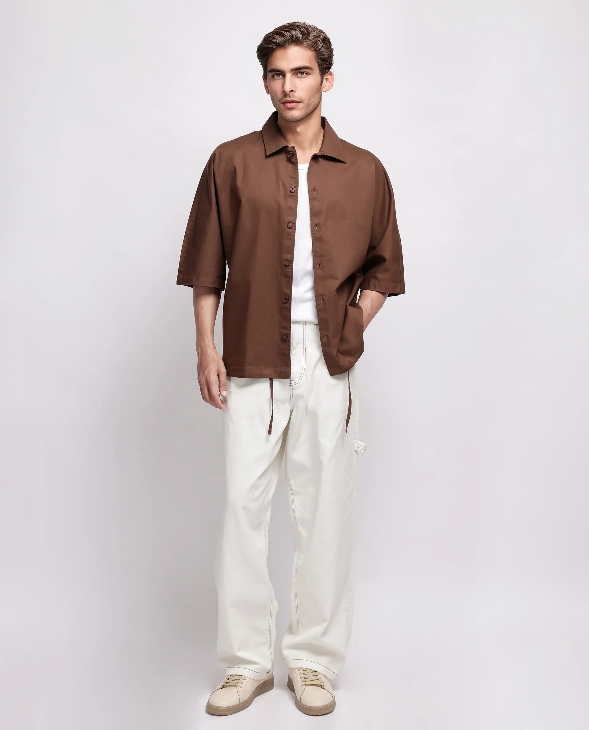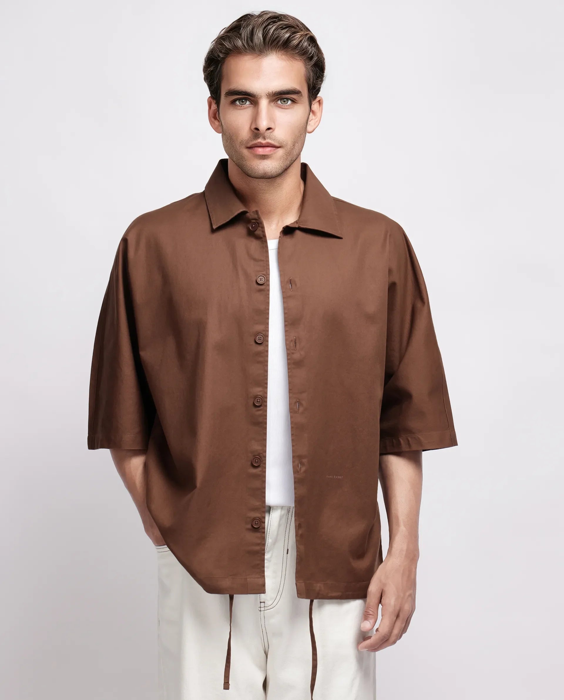 Rare Rabbit Men's Twillt Brown Cotton Fabric Full Sleeve Collared Neck Button Closure Plain Shirt