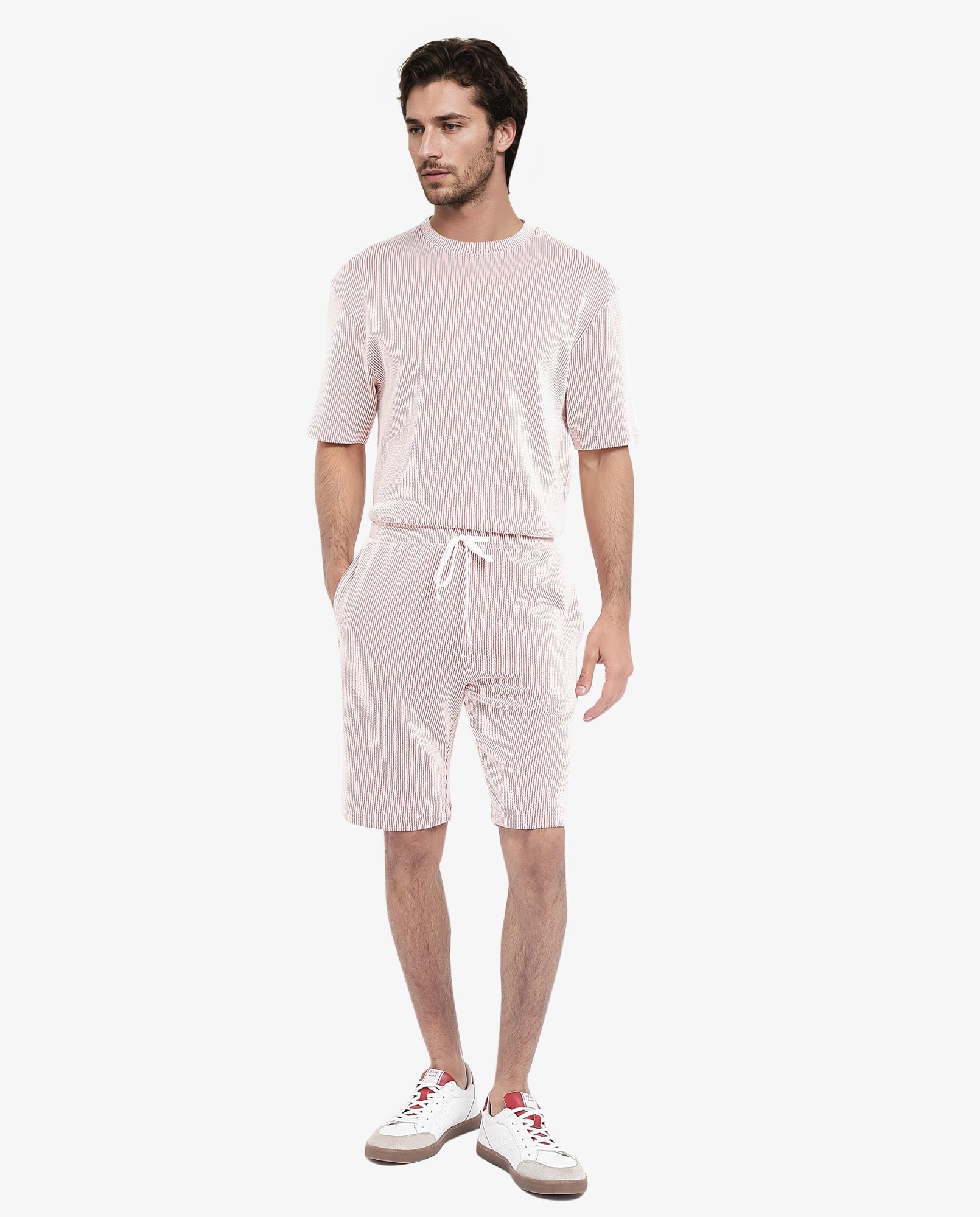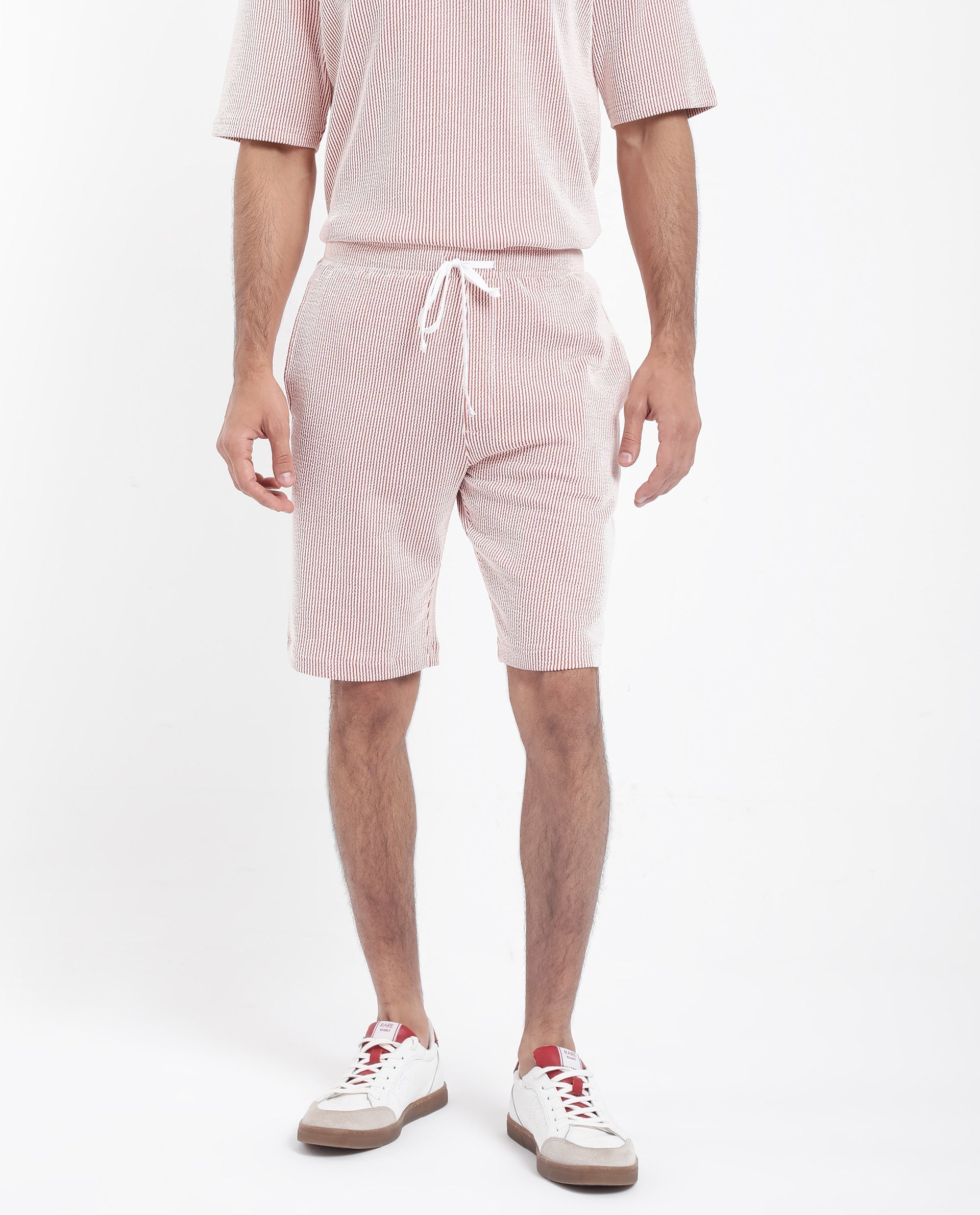 Discover the perfect blend of comfort and style with our self-stripe textured shorts. Crafted from a premium cotton blend, these casual shorts feature a convenient drawstring closure for a customizable fit. Designed for a regular fit, they offer a relaxed yet polished look, ideal for any casual outing. The subtle striped pattern adds a touch of sophistication, making them versatile for various occasions. Pair them with your favorite tee or shirt for an effortlessly stylish ensemble. Elevate your wardrobe with these must-have shorts that combine quality, comfort, and contemporary design.