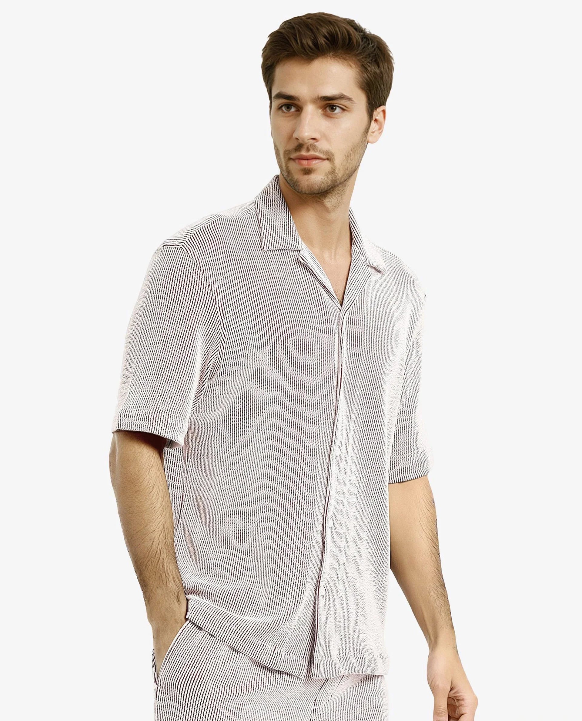 Discover the ultimate in casual style with our boxy fit self-stripe textured shirt. Crafted from premium cotton, this half-sleeve shirt features a classic Cuban collar and convenient button closure, making it a versatile addition to any wardrobe. Perfect for laid-back outings or casual gatherings, its unique striped design adds a touch of sophistication. The relaxed boxy fit ensures comfort and ease of movement, while the high-quality fabric promises durability and breathability. Elevate your everyday look with this stylish and comfortable shirt, ideal for pairing with your favorite jeans or shorts. Shop now to experience unmatched style and comfort in one perfect piece.